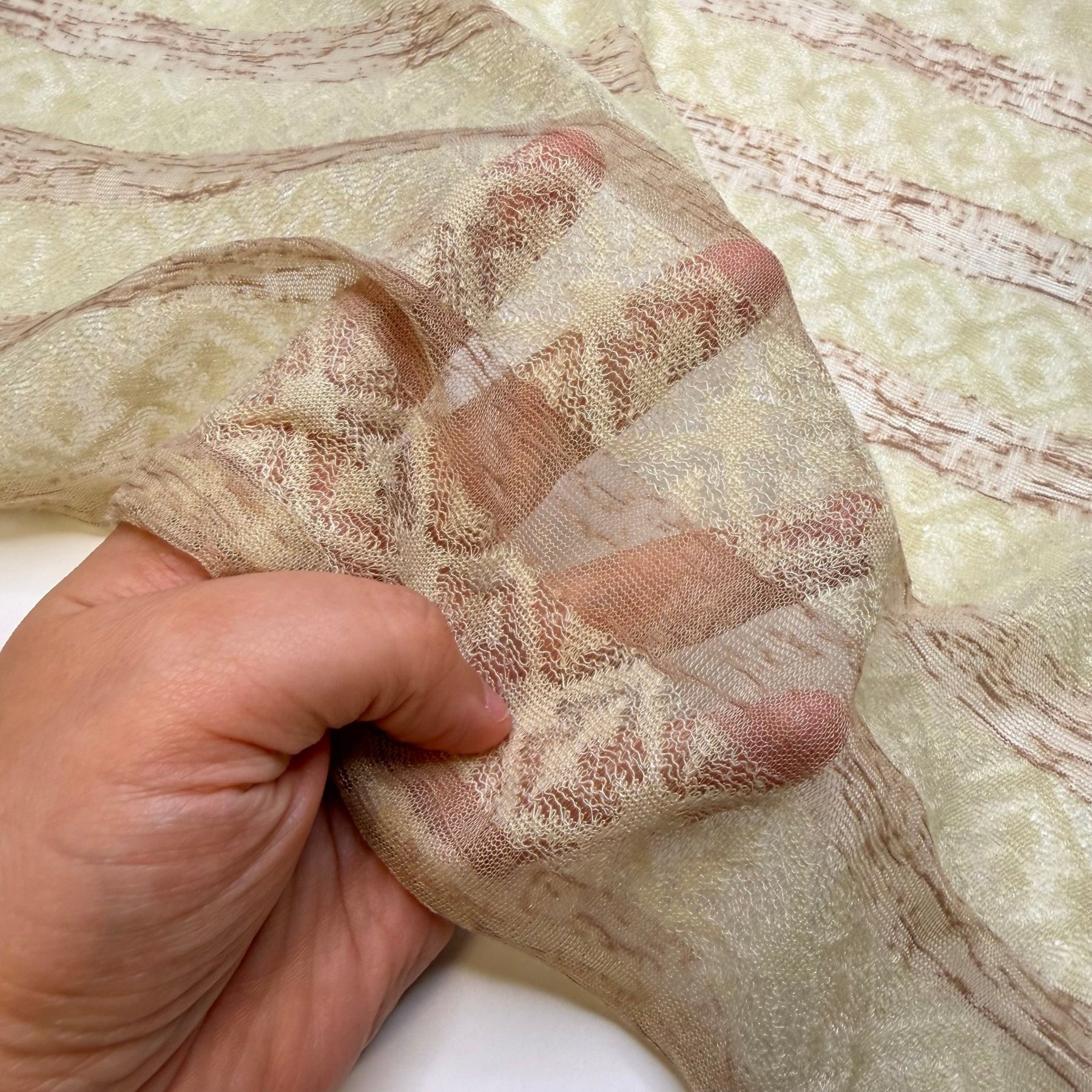 Making Eggnog - Lace Polyester Blend Knit - Beige/Cream Stripes - 1.9M Bundle