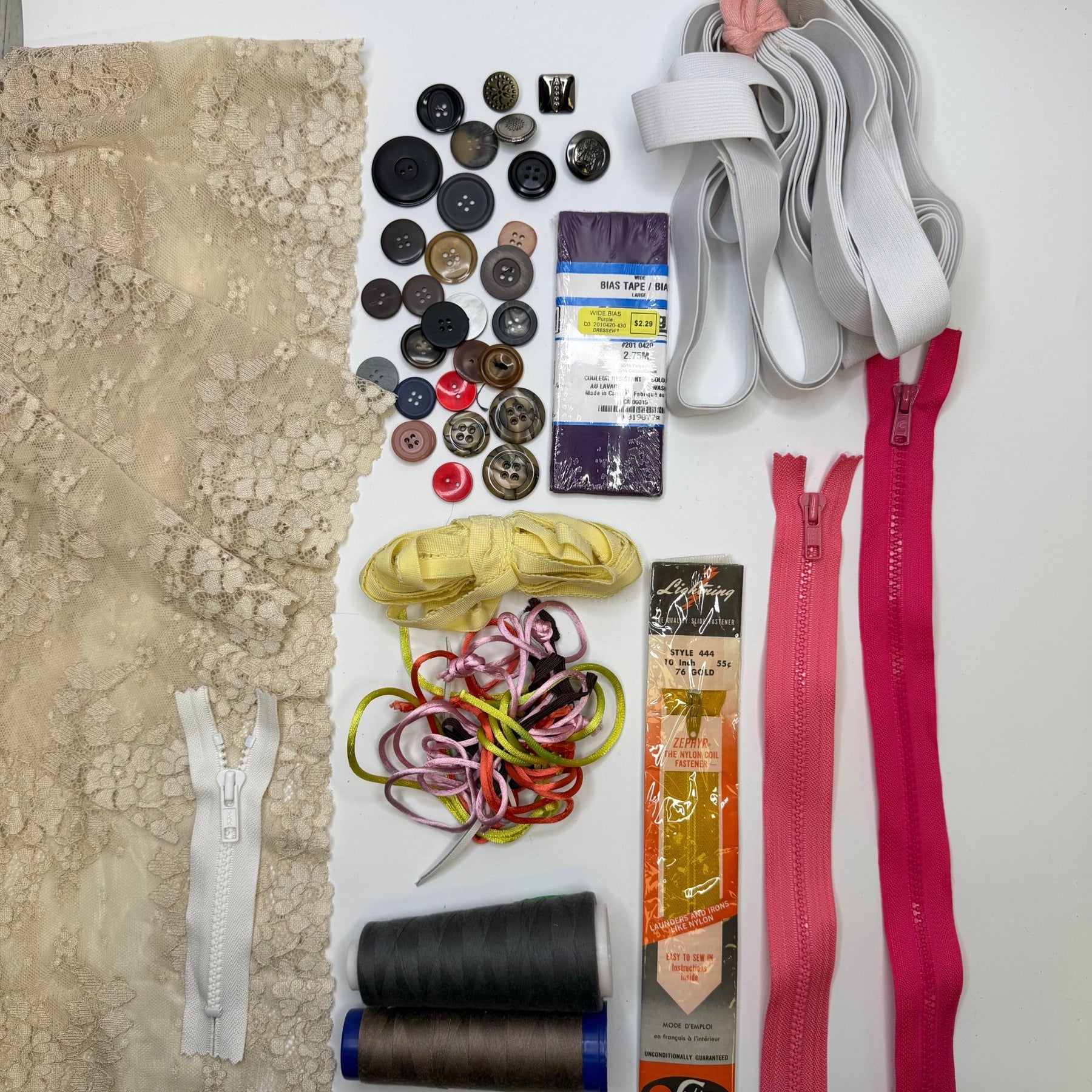 - x4 Zippers (varied types and lengths)