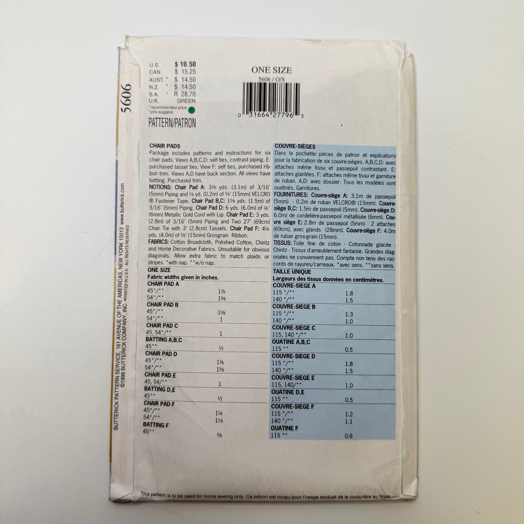 Sewing Pattern - Craft - Butterick 5606