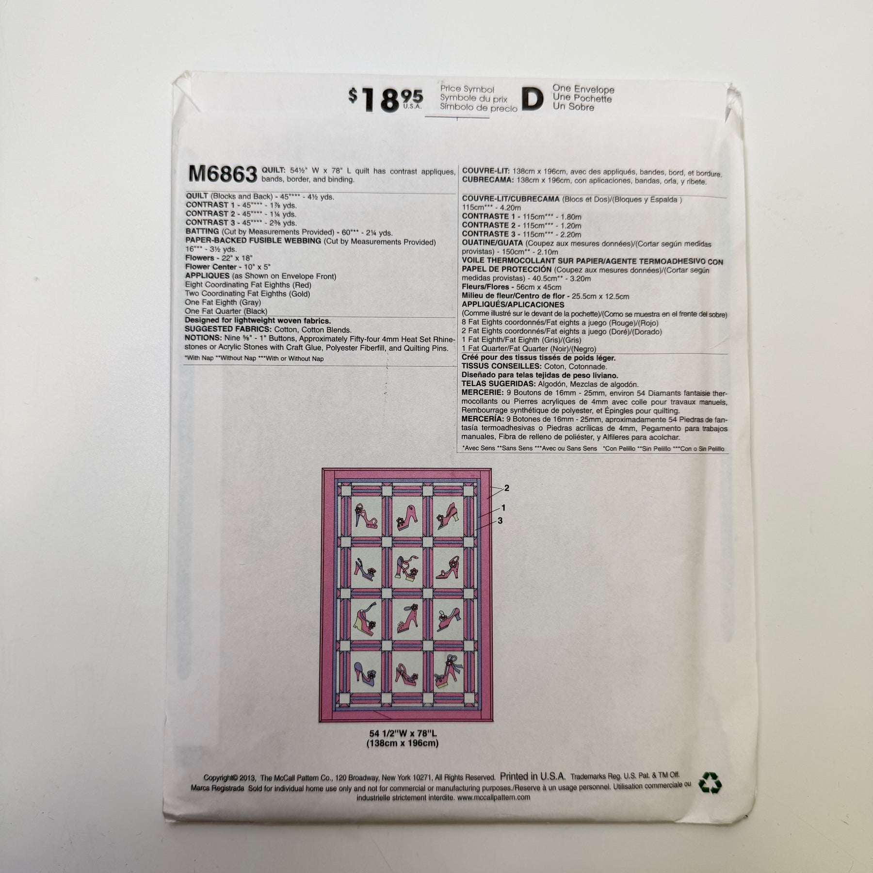 - Template and sewing instructions for pictured product(s)