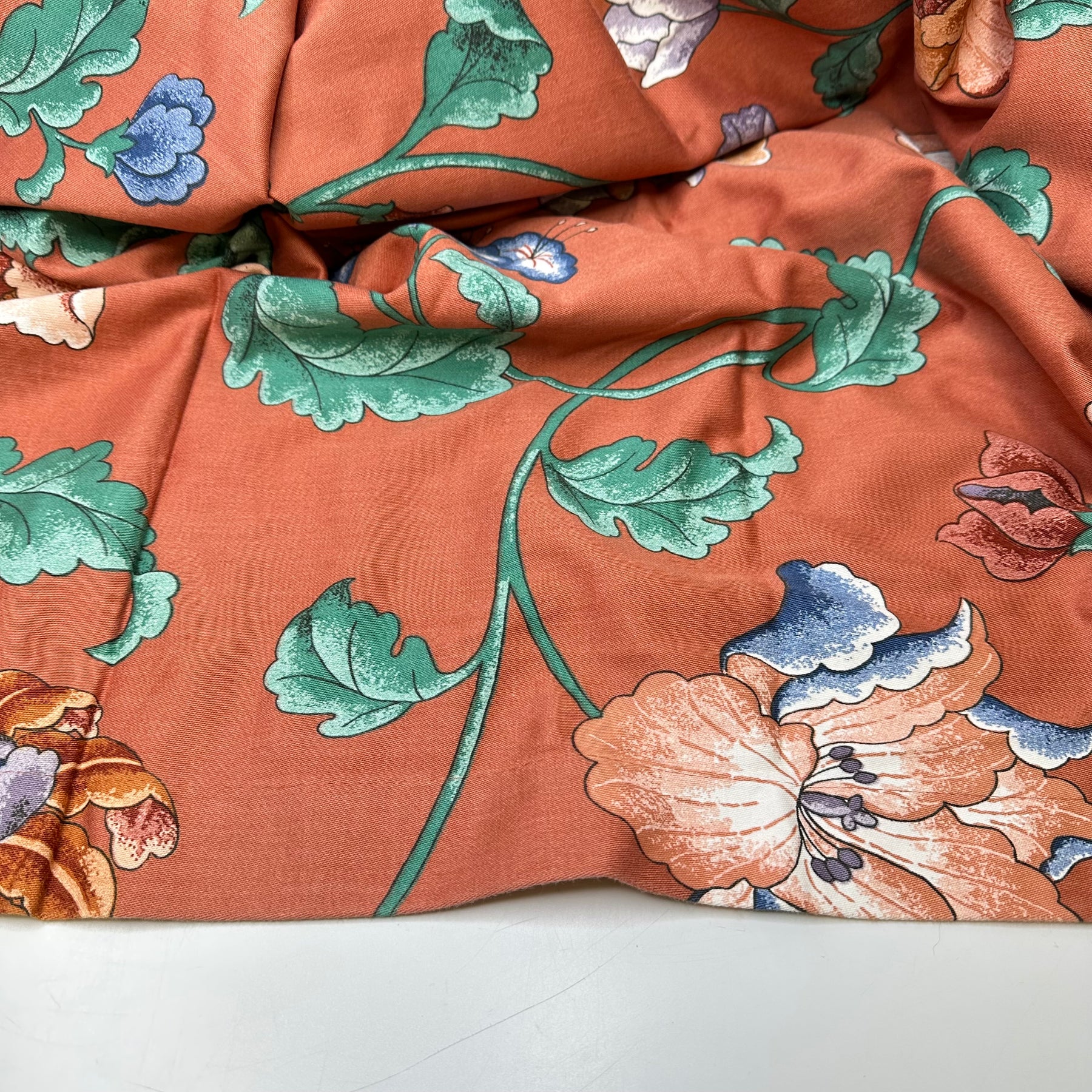 Since we don't know the exact fabric content of the textile, it would be safe to wash in cold and gentle wash. You can always wash a sample piece before using the final textile on your product. Hand or machine wash cold with similar colours, hang to dry, iron low temperature.