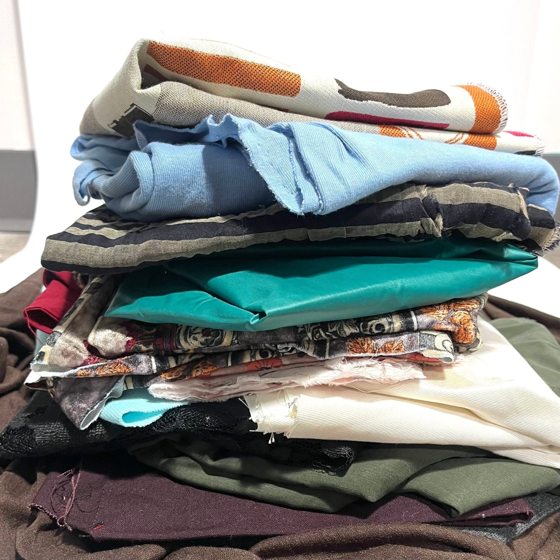 When we collect the fabric scraps and offcuts from our business partners (fashion designers and factories), we manually sort and choose which pieces we think can be reused by other creatives. It's slow and laborious work but it allows us to dream how these beautiful fabrics can be used by someone else, instead of becoming waste.