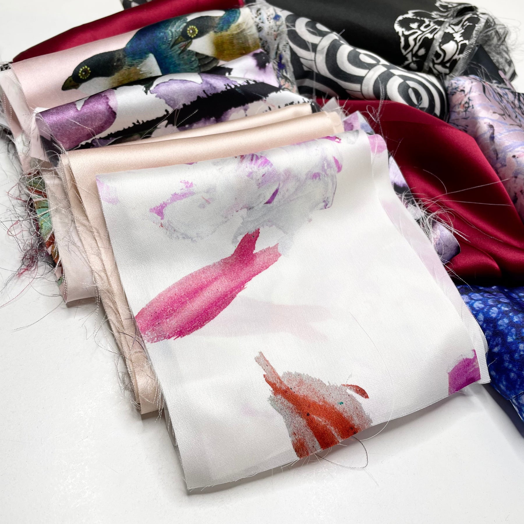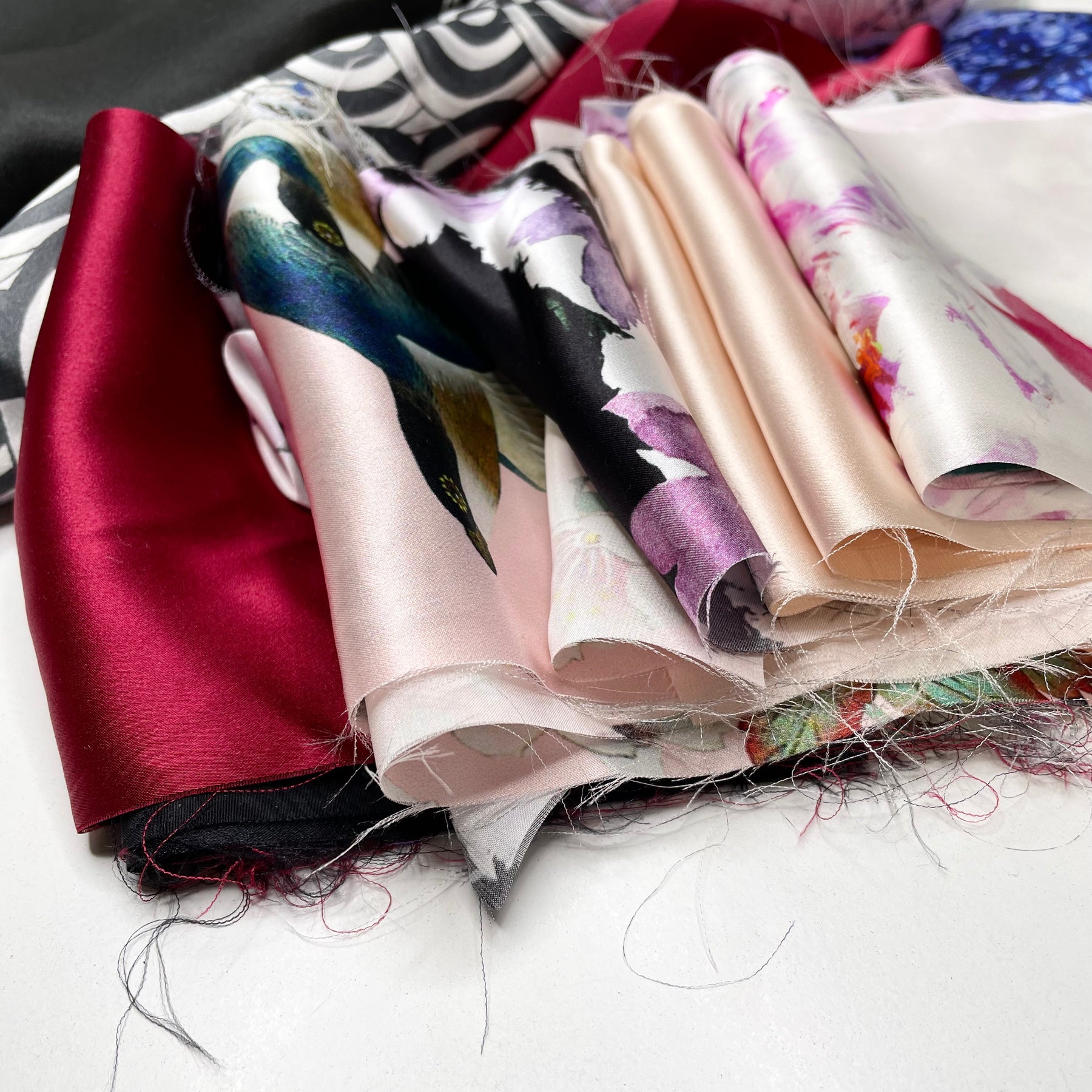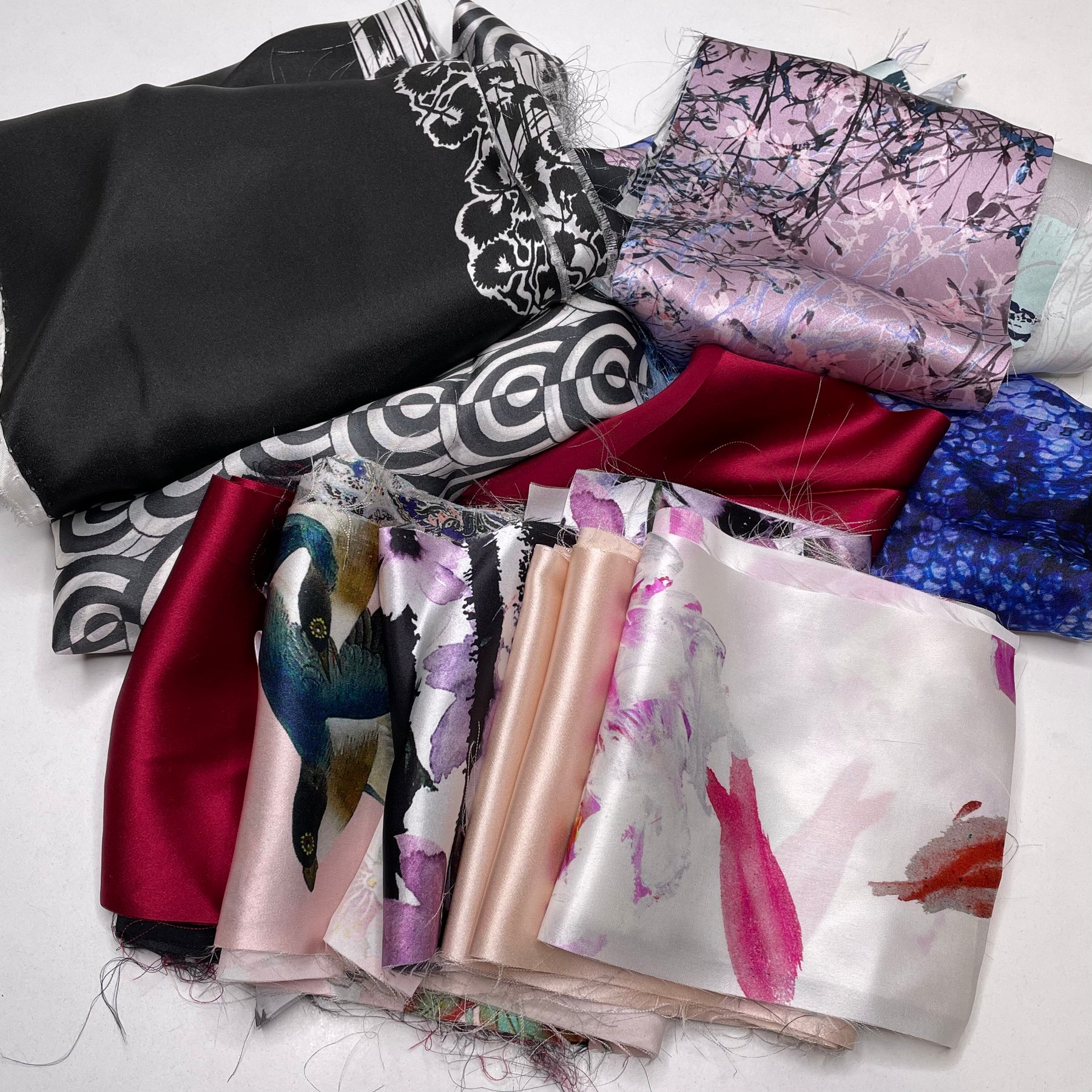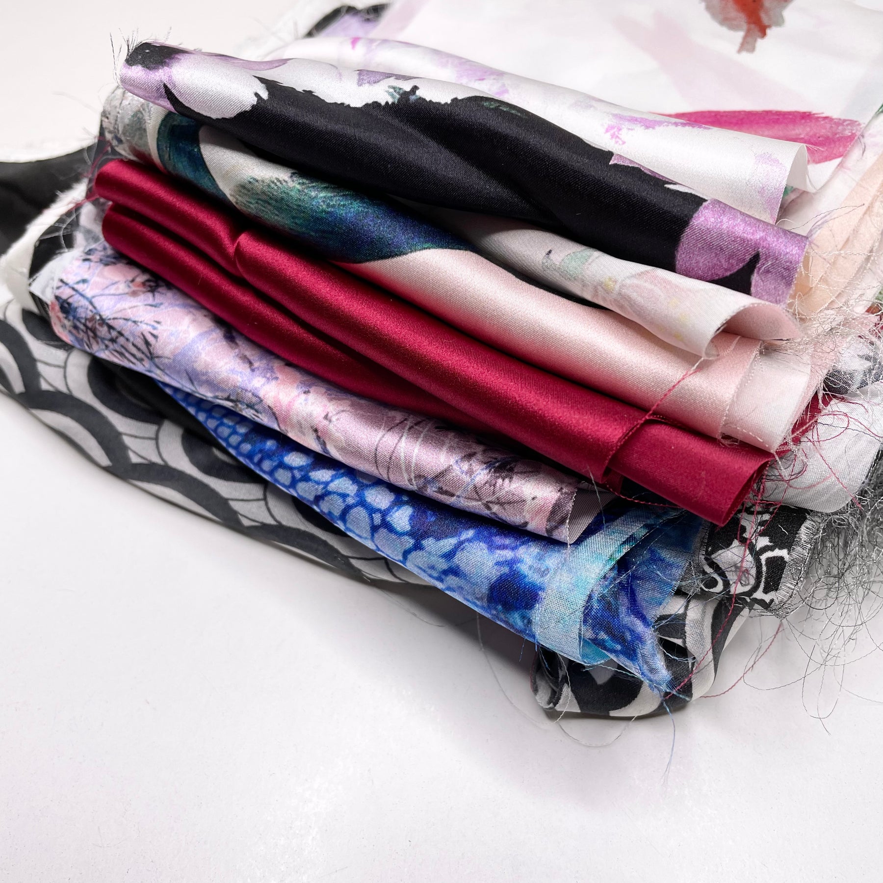 Our silk satin packs are bundles of 1lb of silk satin pieces. A lot of the silk scraps have prints.