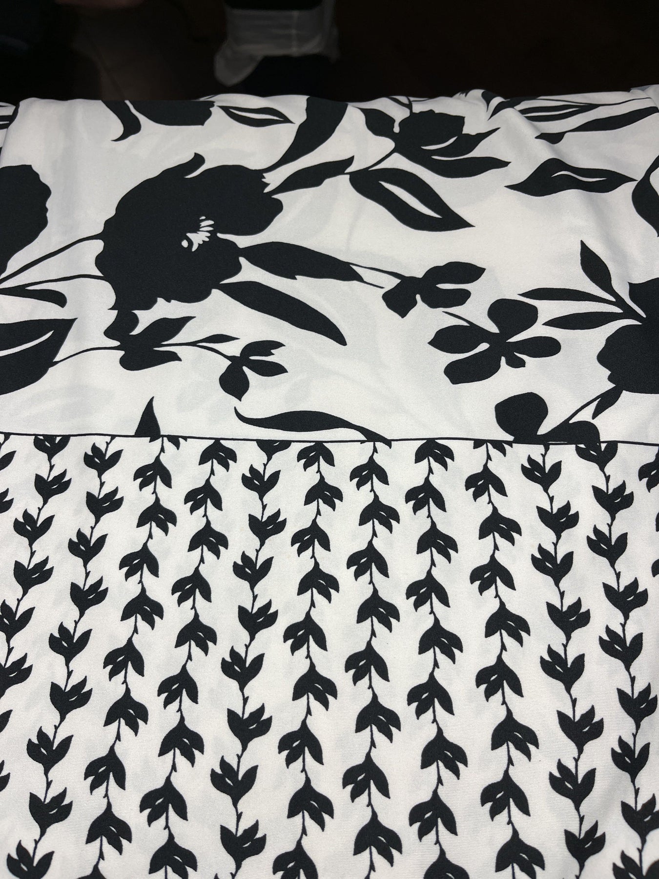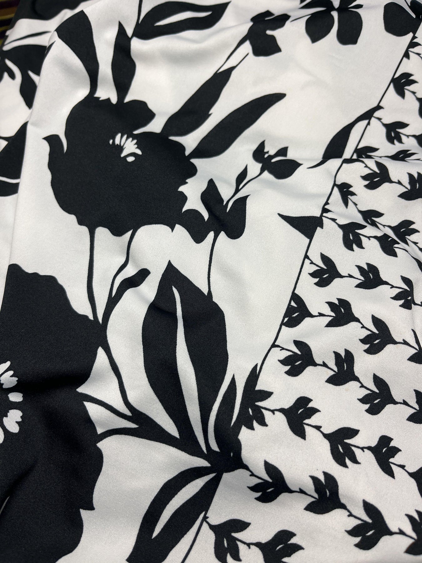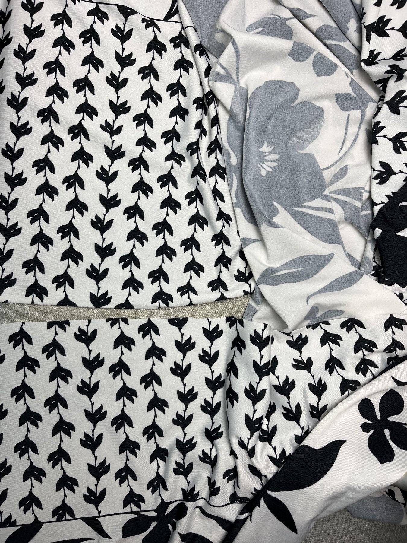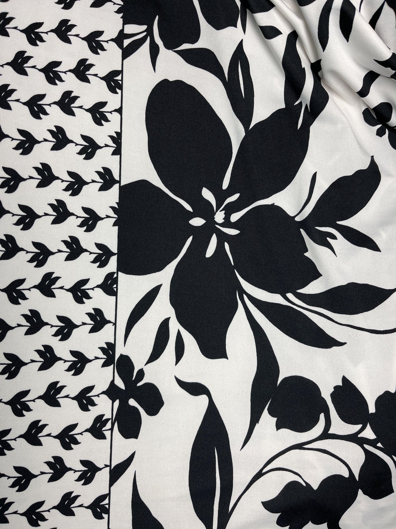 Black & White Floral Border Poly Spandex Knit – 1.4m – Stash Bash