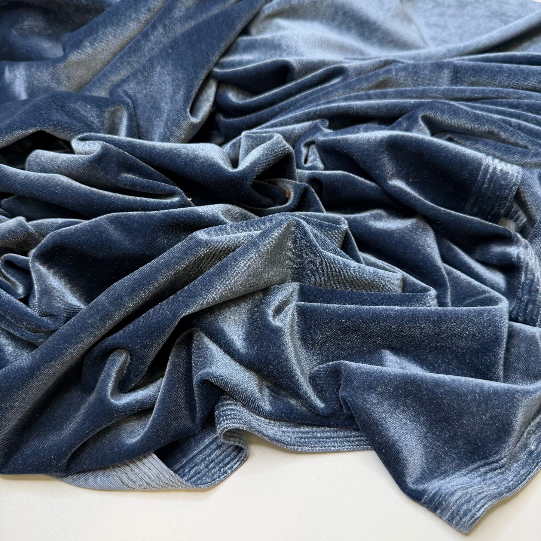 Making A Holiday Dinner Playlist - Knitted Velour Polyester Blend Knit - Blue - 2M Bundle
