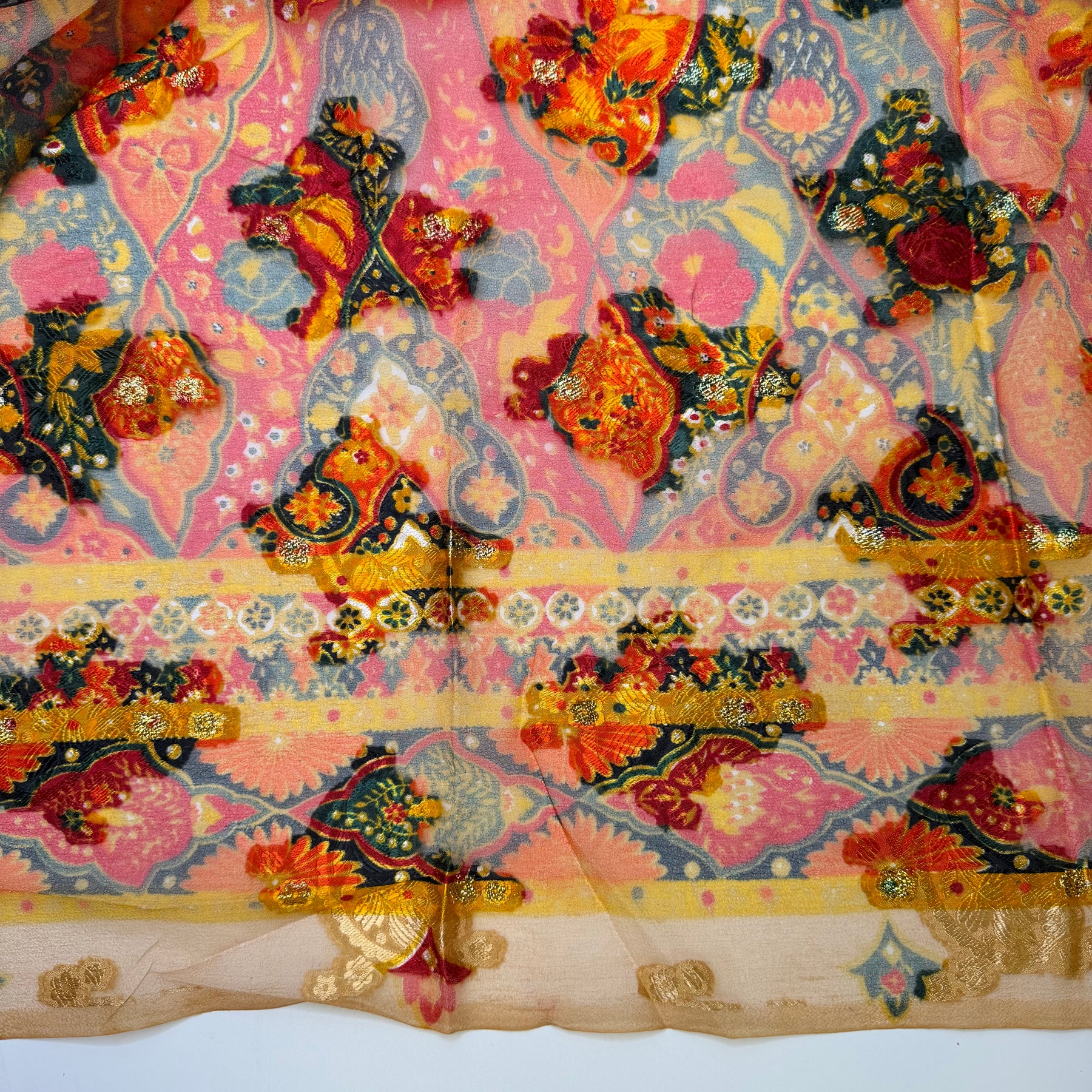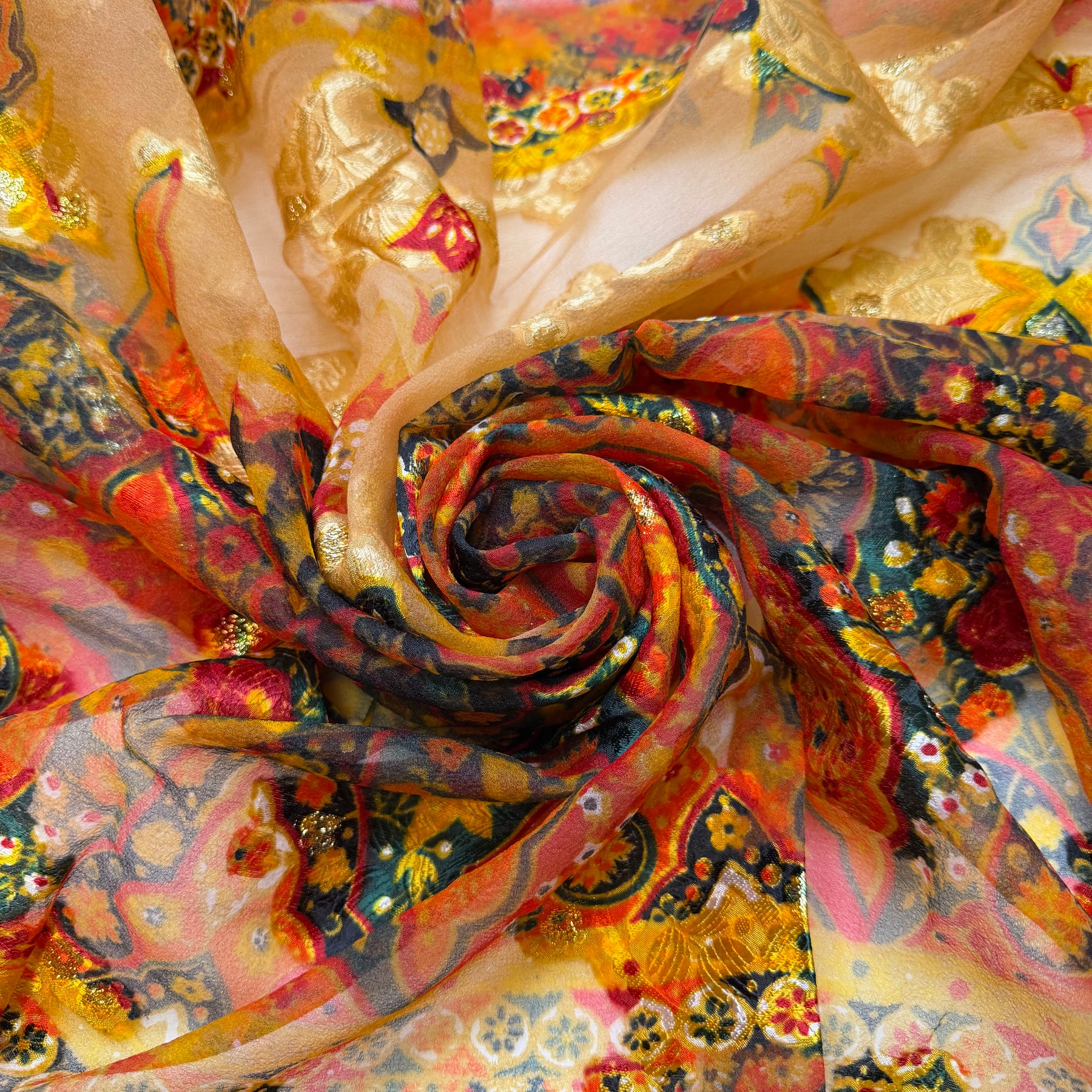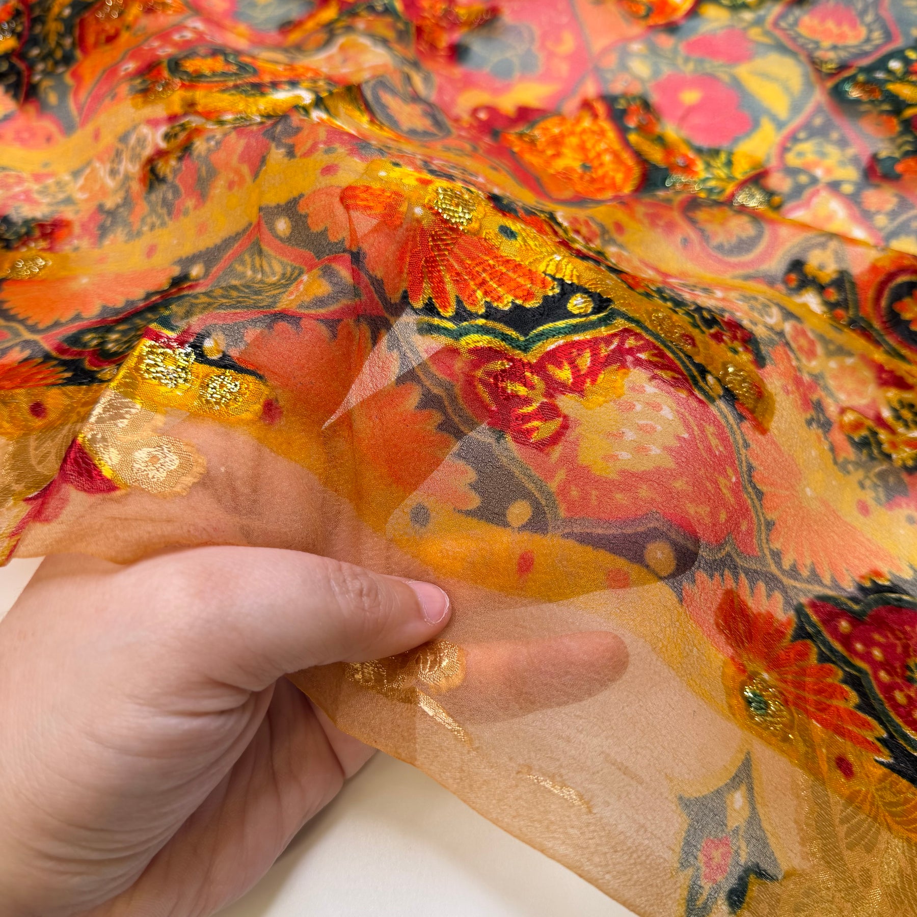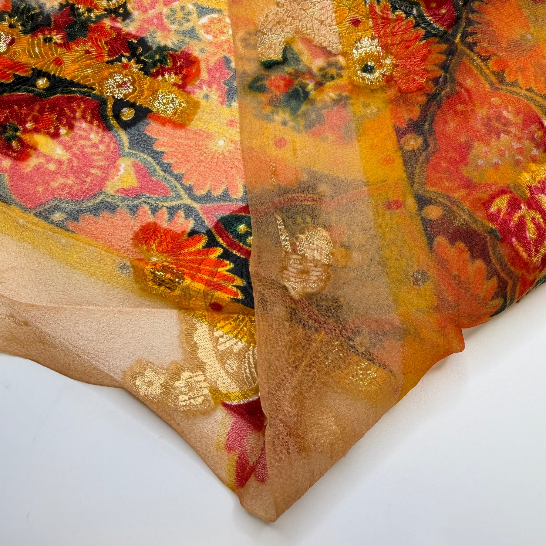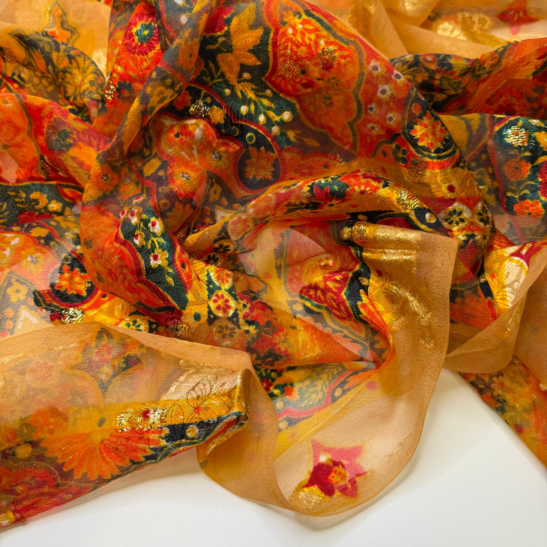 A Full Table - Metallic Polyester Blend Woven - Orange/Red Floral - 1.4M Bundle
