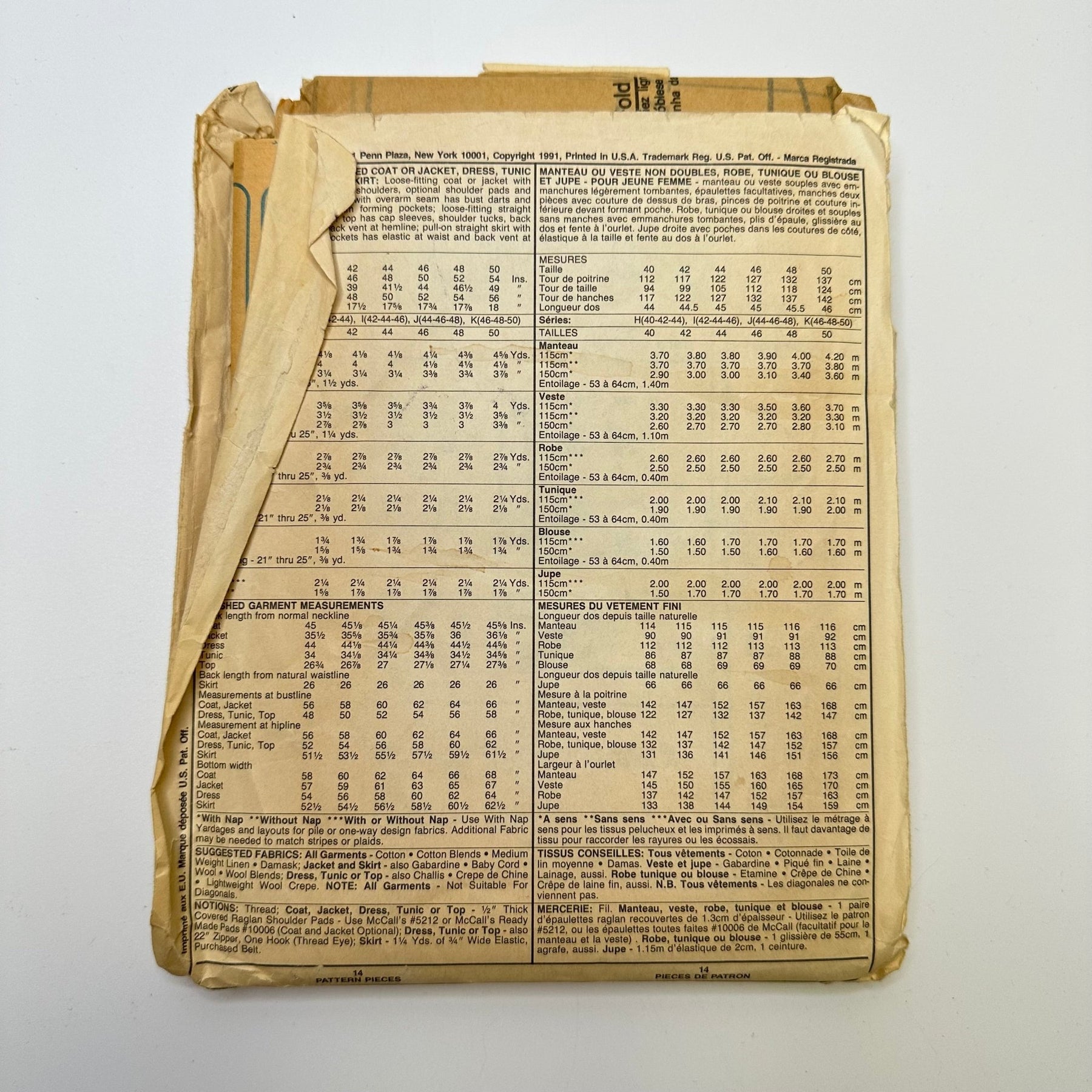 - Please note your size and measurements, as well as the required notions on the package.