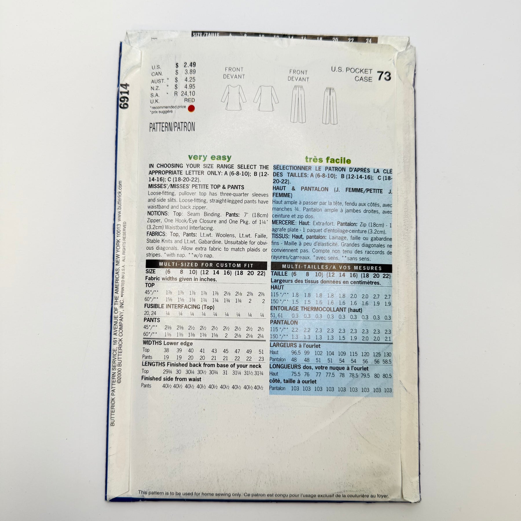 - Please note your size and measurements, as well as the required notions on the package.