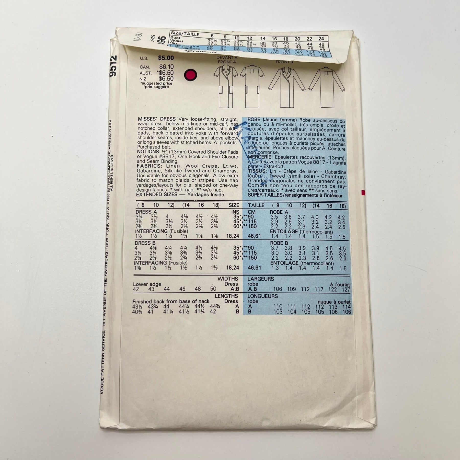Sewing Pattern - Womenswear - Vogue 9512