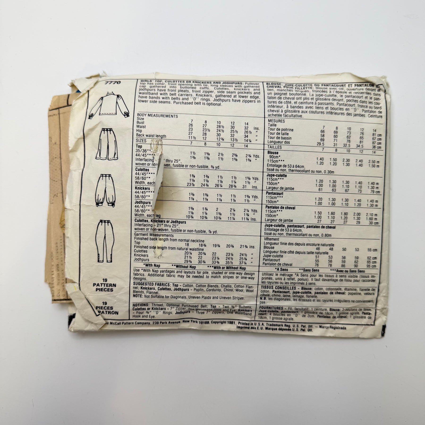 - Please note your size and measurements, as well as the required notions on the package.