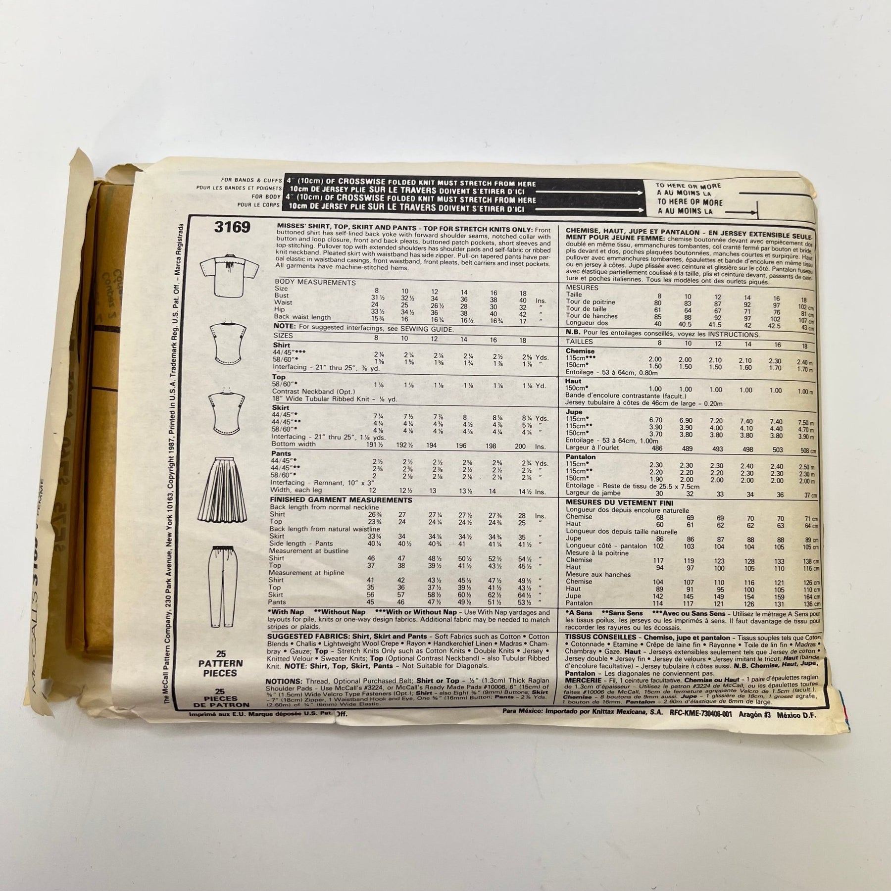 - Please note your size and measurements, as well as the required notions on the package.