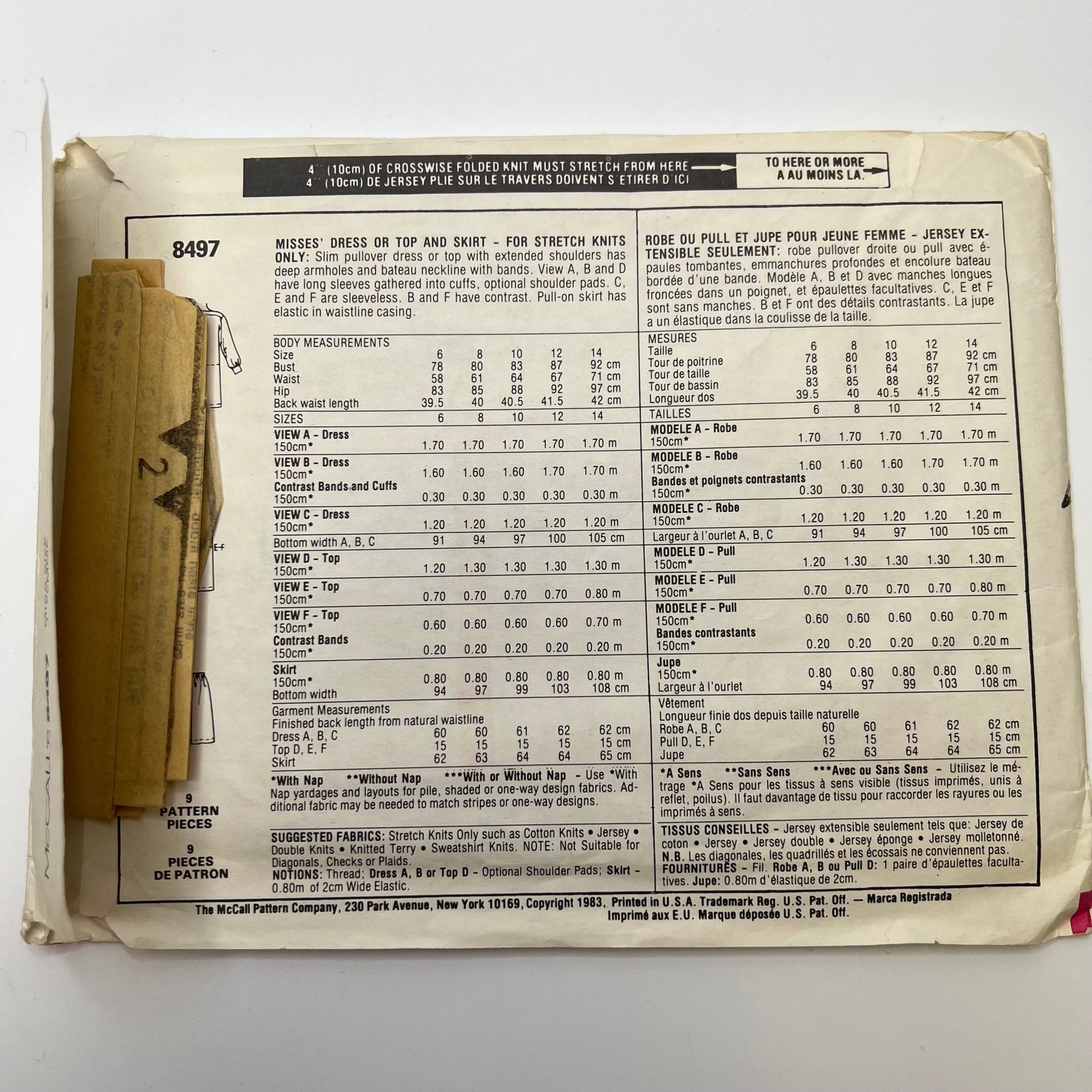 - Please note your size and measurements, as well as the required notions on the package.