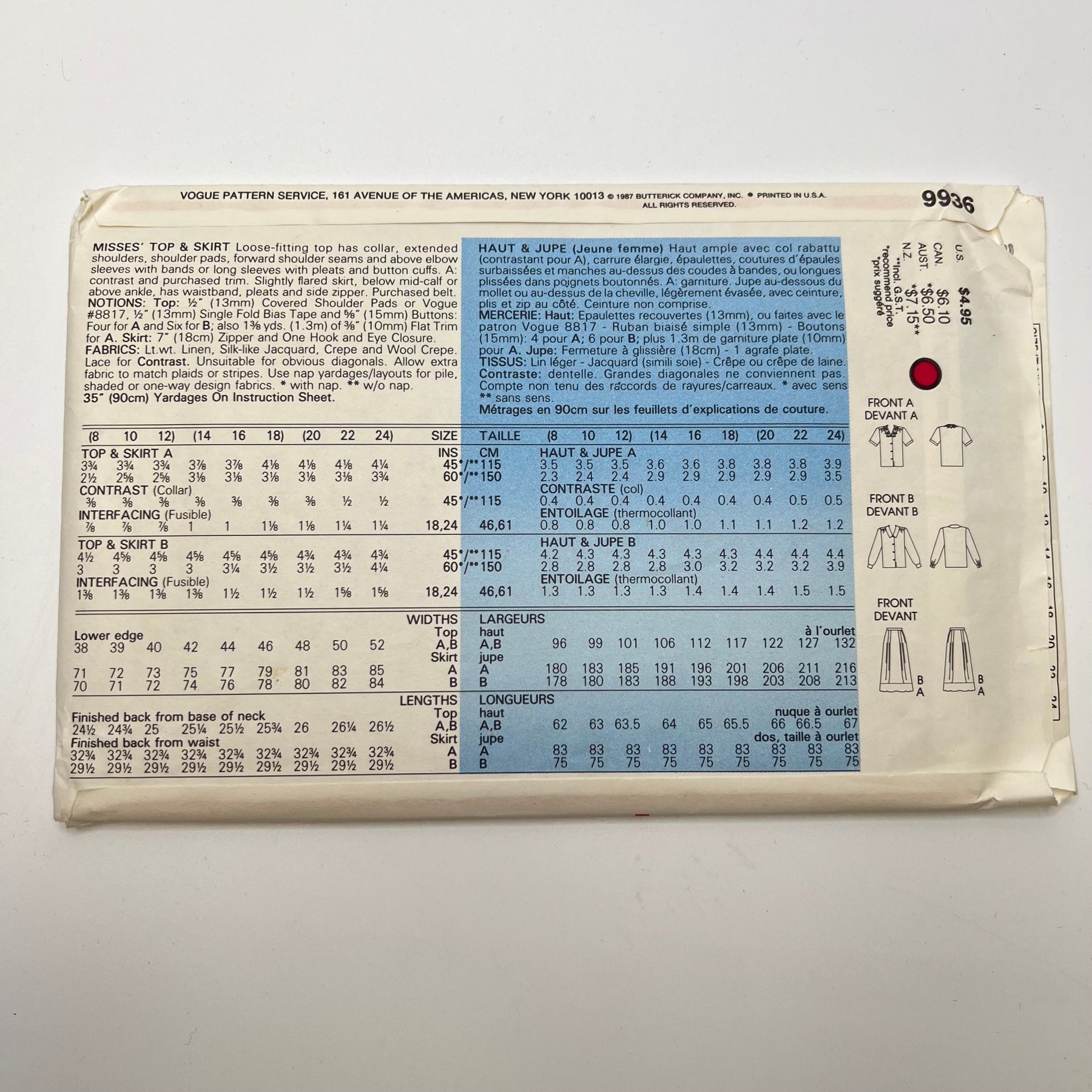 Sewing Pattern - Womenswear - Vogue 9936