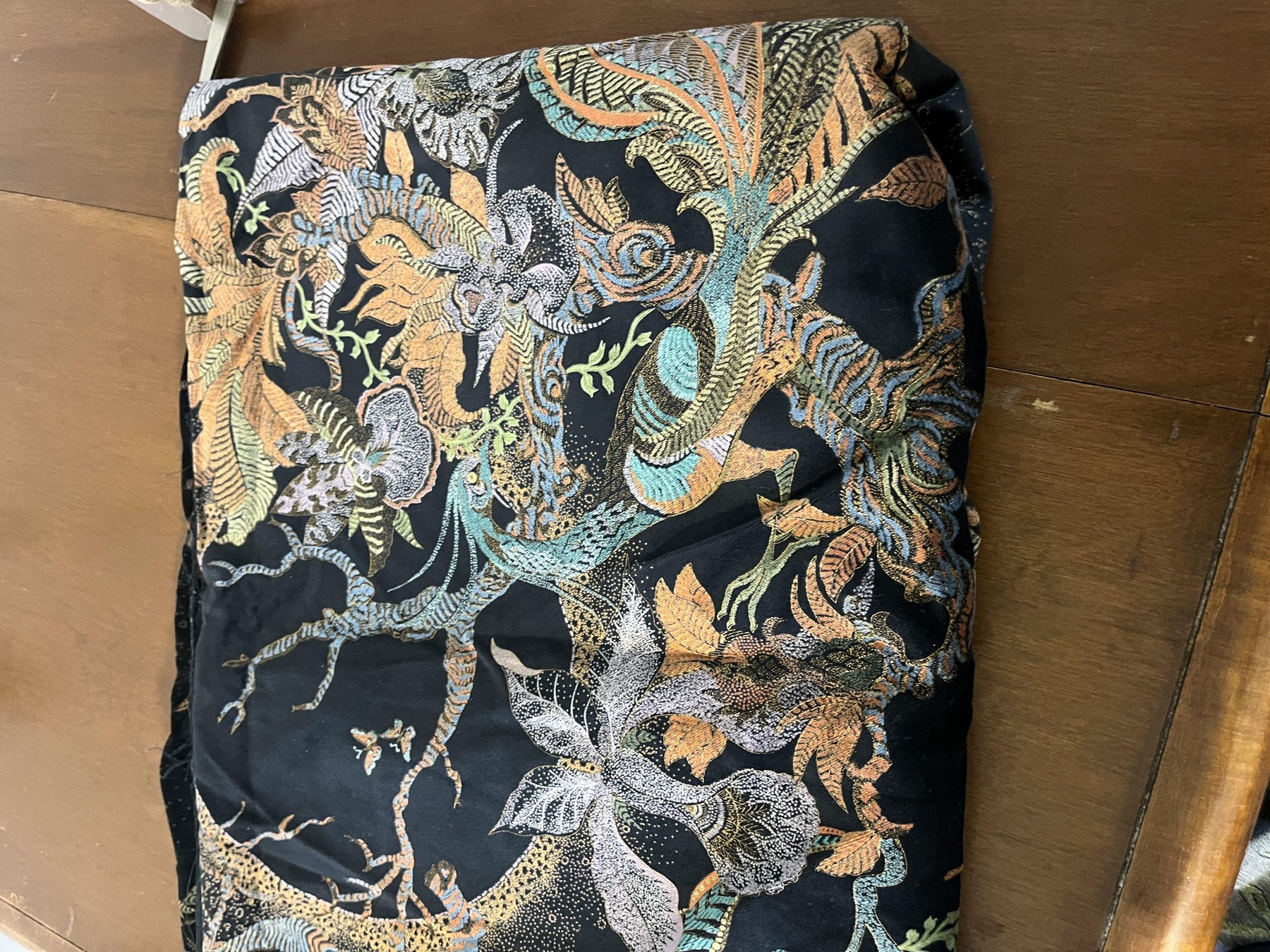 Since we don't know the exact fabric content of the textile, it would be safe to wash in cold and gentle wash. You can always wash a sample piece before using the final textile on your product. Hand or machine wash cold with similar colours, hang to dry, iron low temperature.