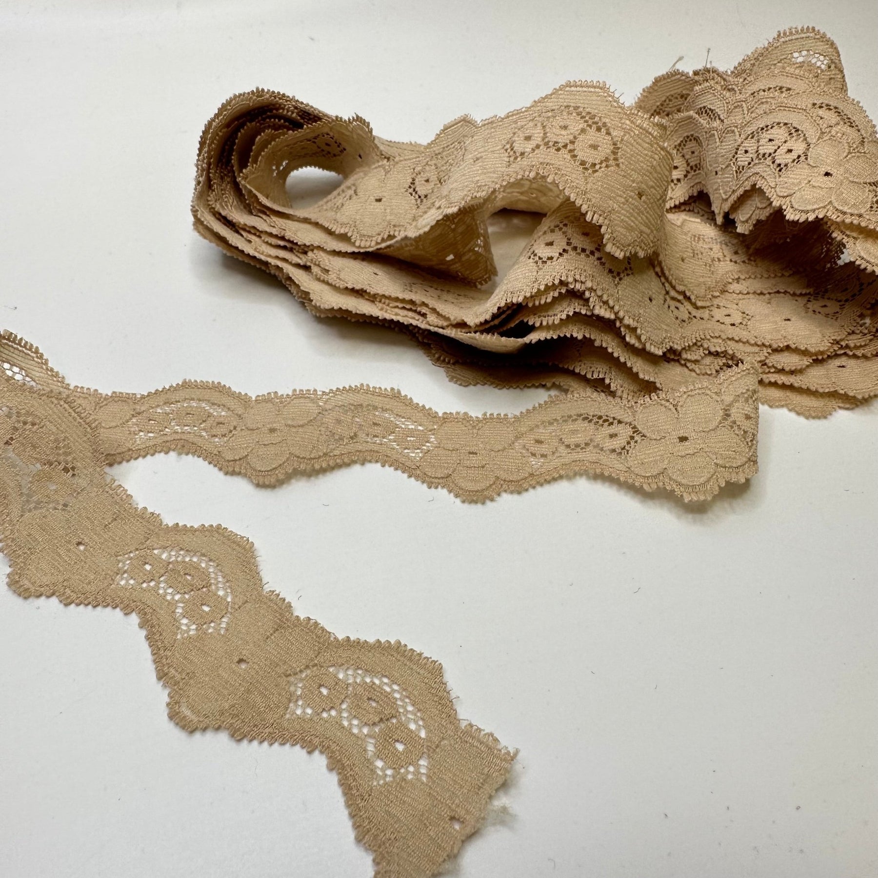 1" (25mm) Scalloped Mesh Lace Trim - Light Beige - 6.3M Bundle - True Deadstock supplies Fabric by private - Sustainable Textile | FABCYCLE