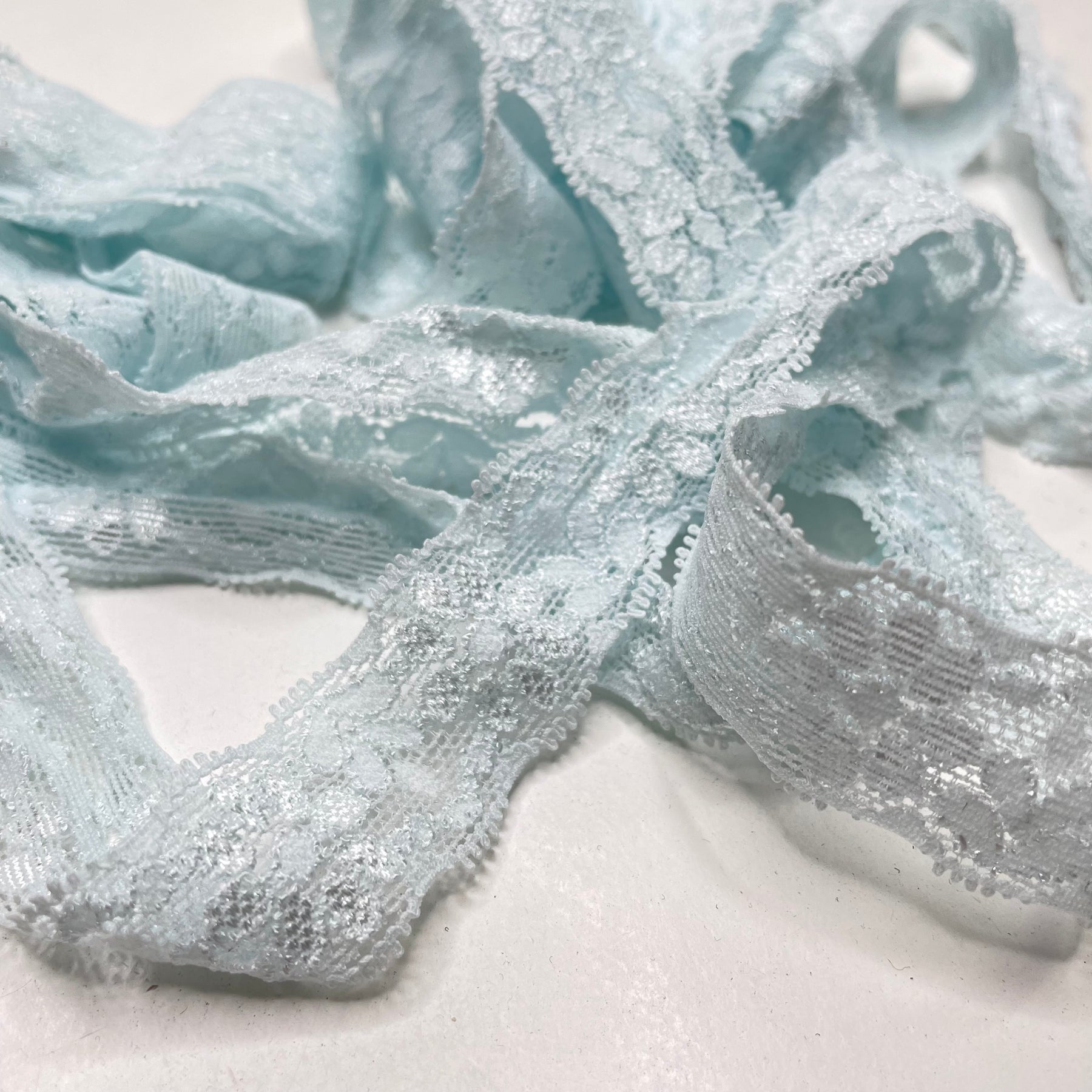 1" (25mm) Stretchy Scalloped Mesh Lace Trim - Light Blue - 4M Bundle