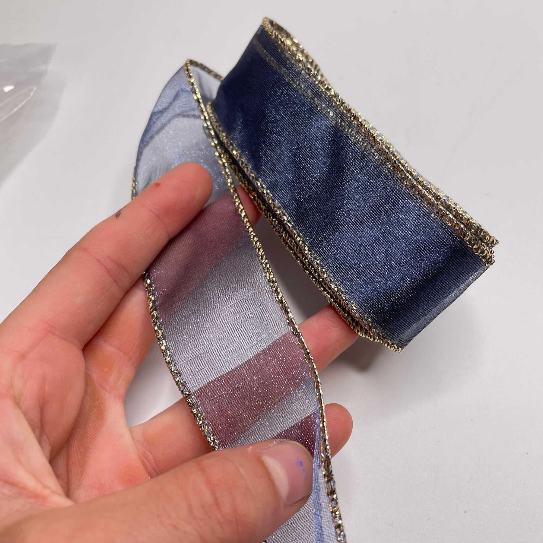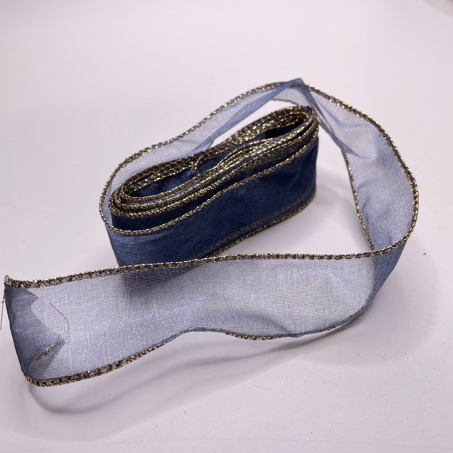 1 ¼" (32mm) Wire Ribbon Trim - Blue/Gold - 2.6M Bundle