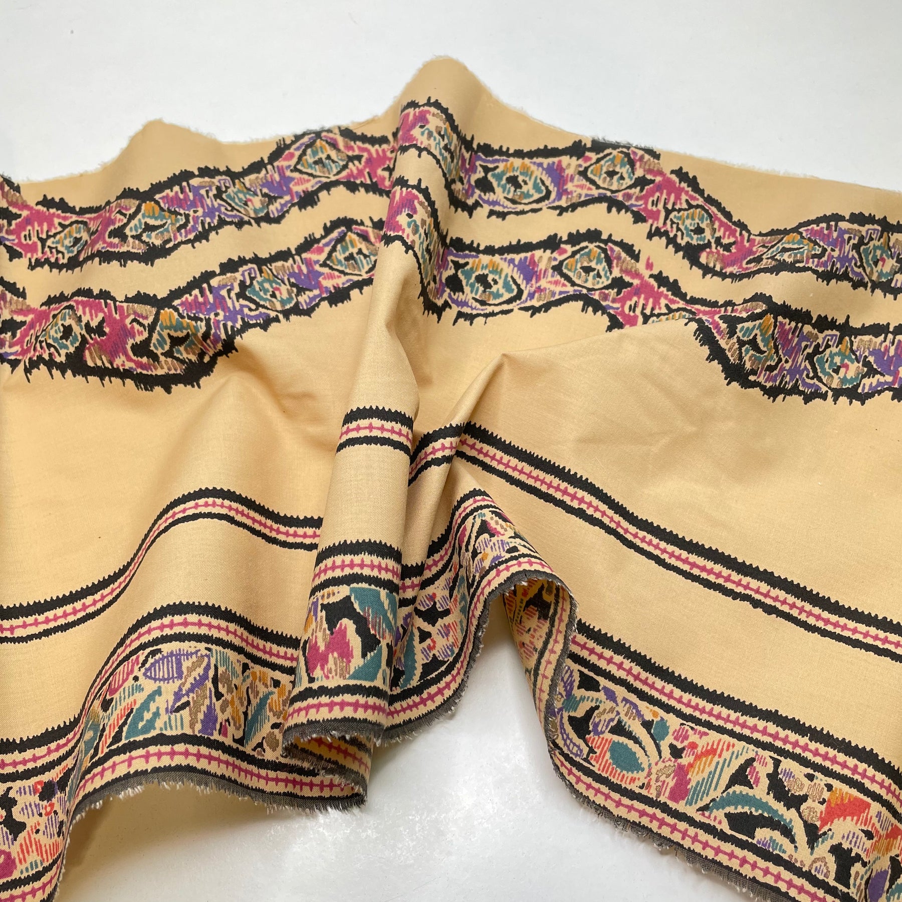 Since we don't know the exact fabric content of the textile, it would be safe to wash in cold and gentle wash. You can always wash a sample piece before using the final textile on your product. Hand or machine wash cold with similar colours, hang to dry, iron low temperature.