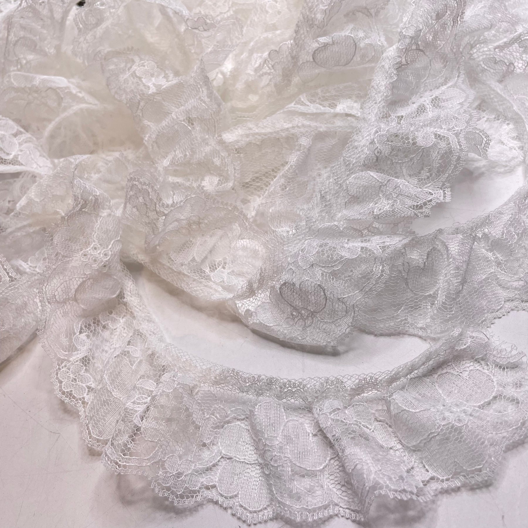 2" (51mm) Ruffled Lace Trim - White - 5M Bundle