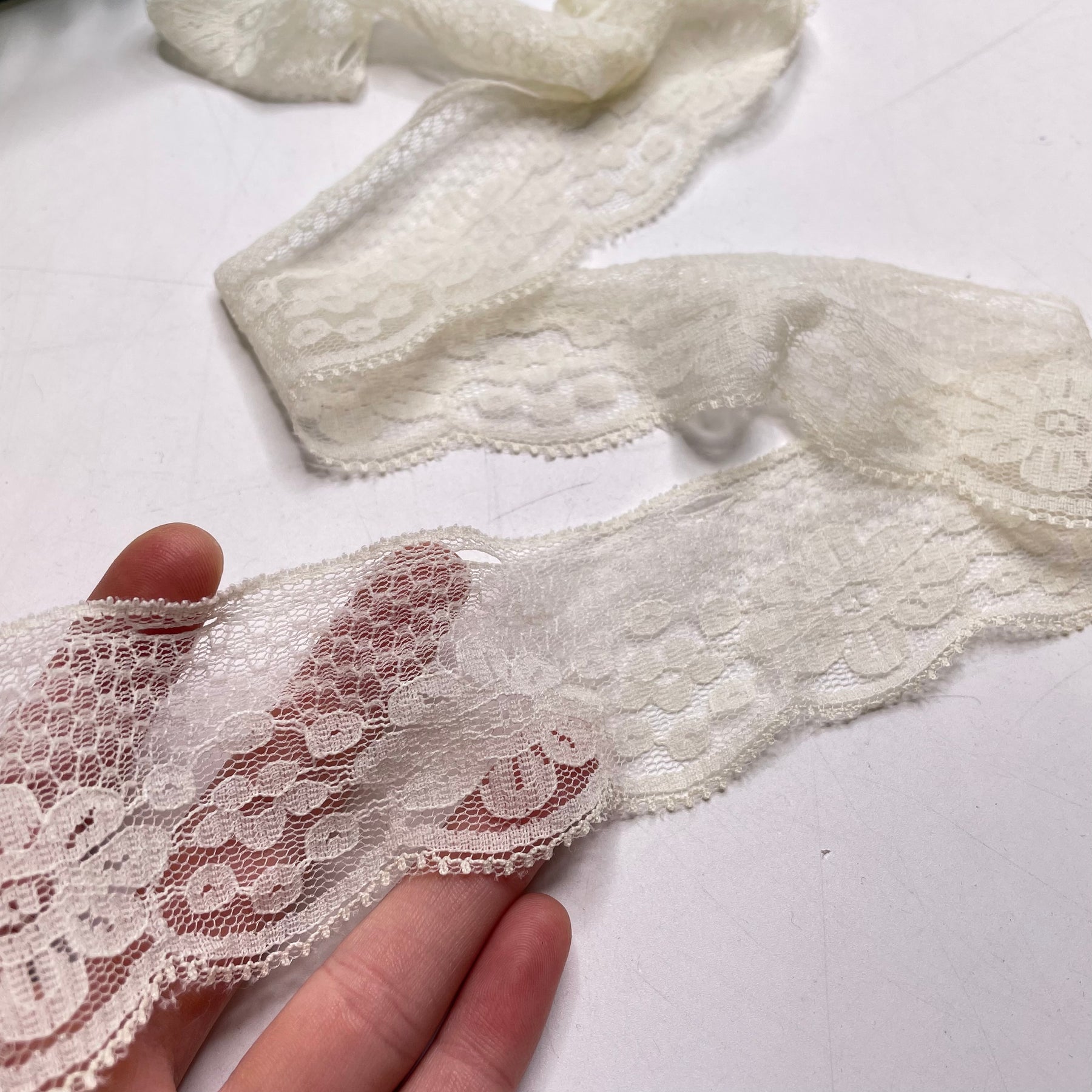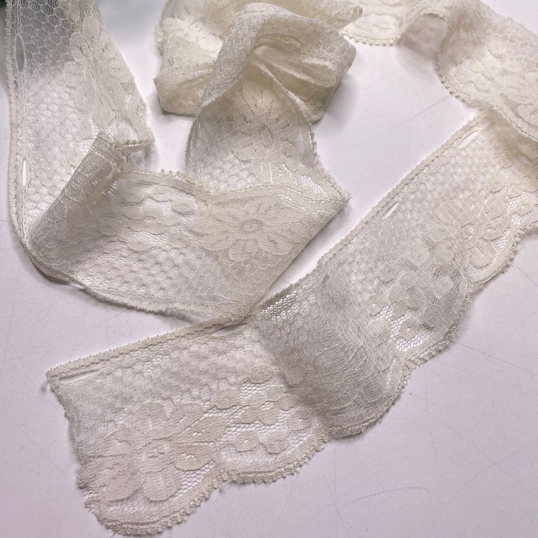 2" (51mm) Stretchy/Slight Scalloped Lace Trim - Cream - 1M