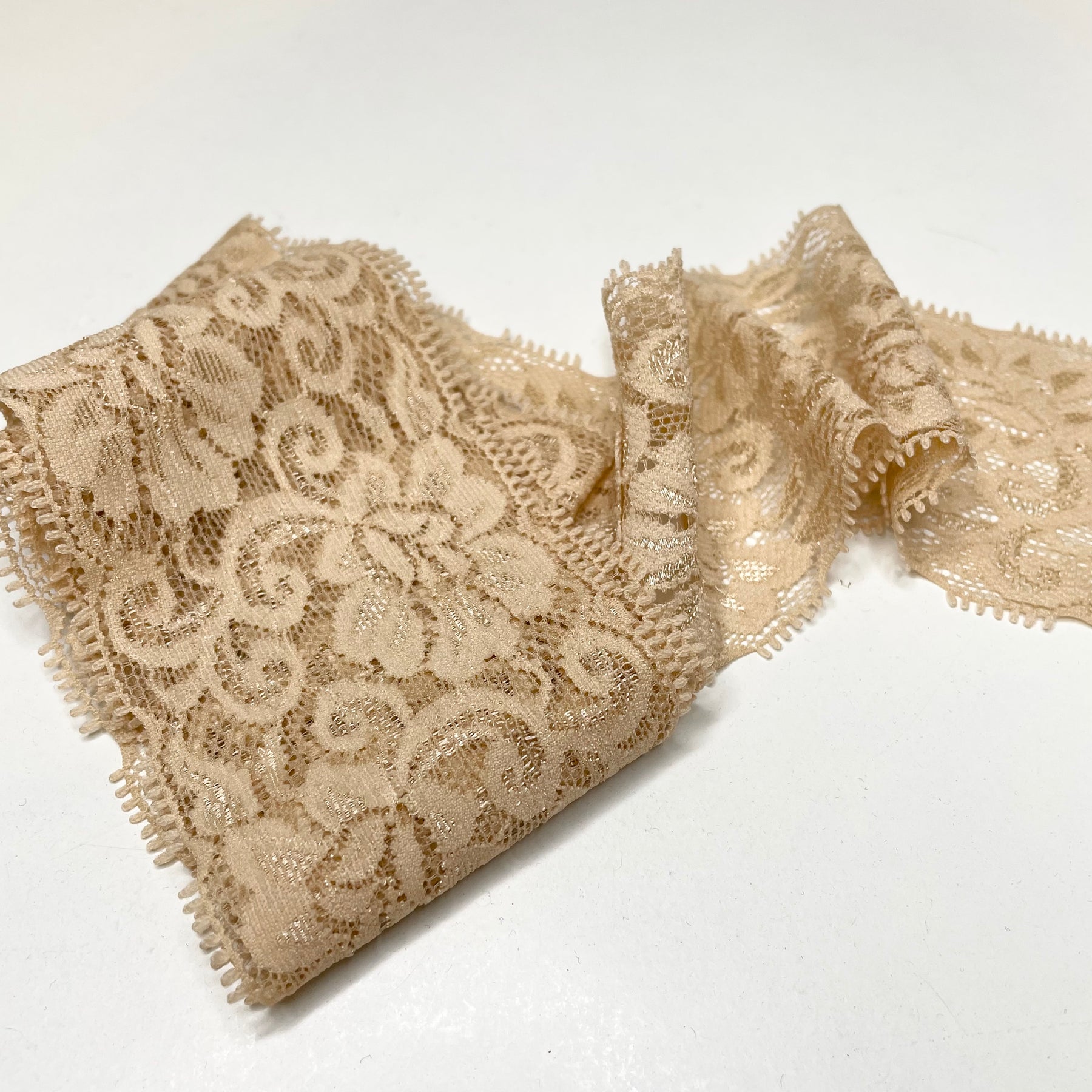 2 ½" (64mm) Mesh Lace Trim - Light Beige - 1.3M Bundle