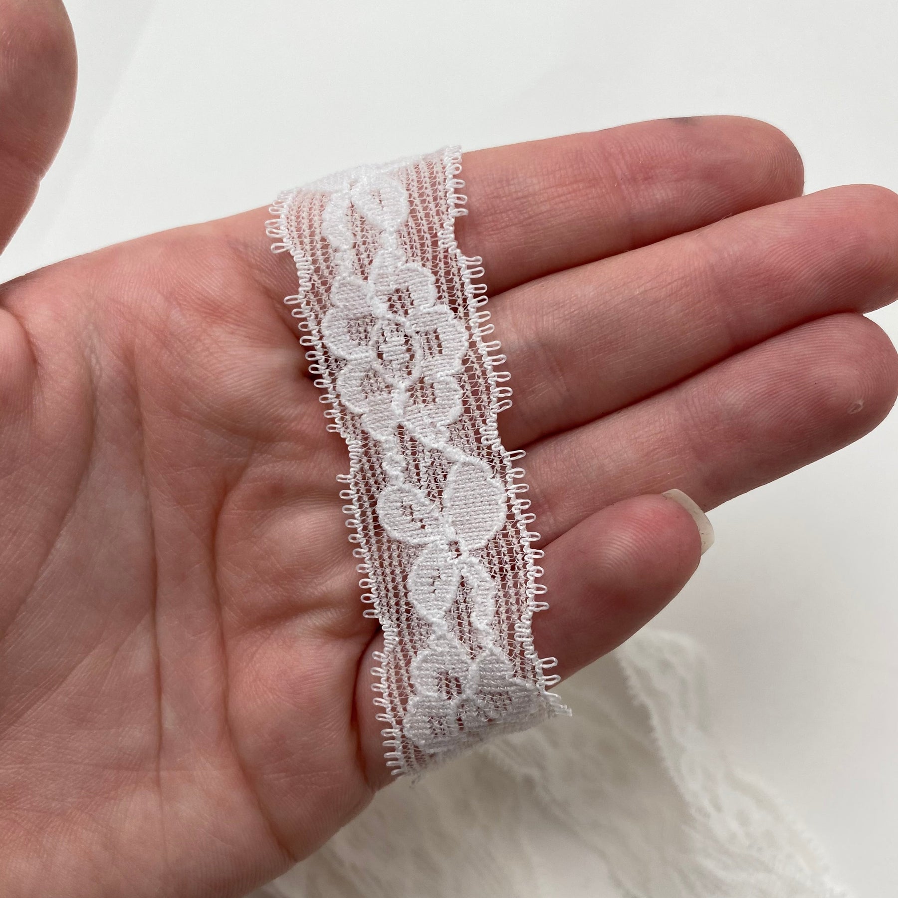 3/4” Lightweight Lace Trim - Stretch - White - 2M Bundle