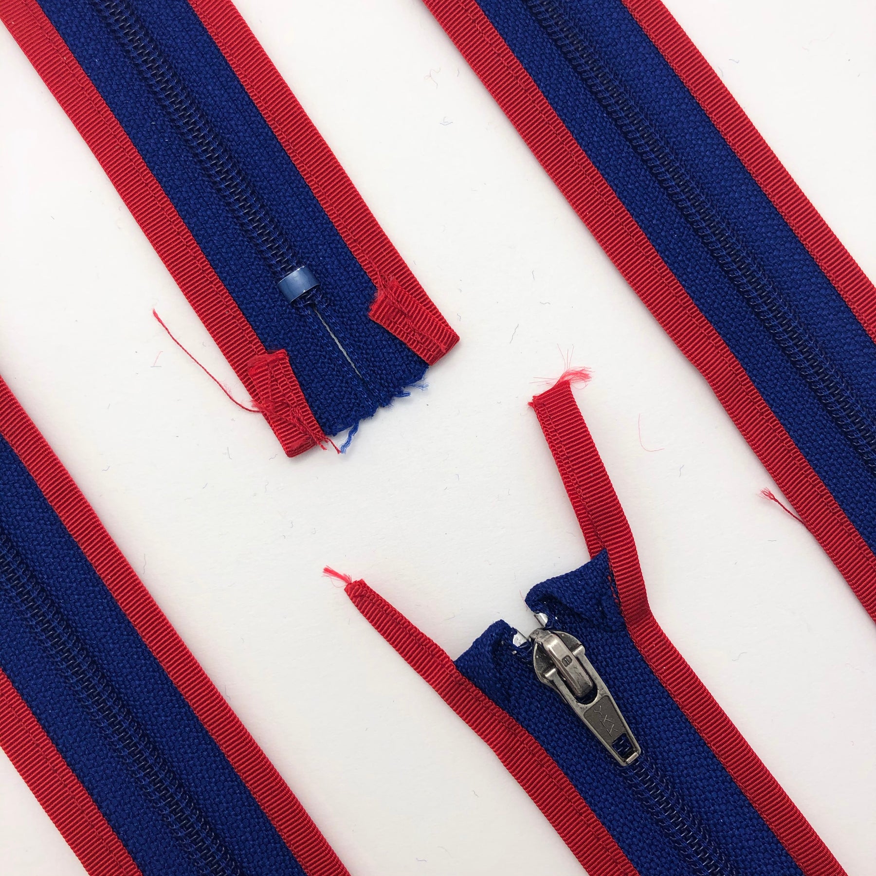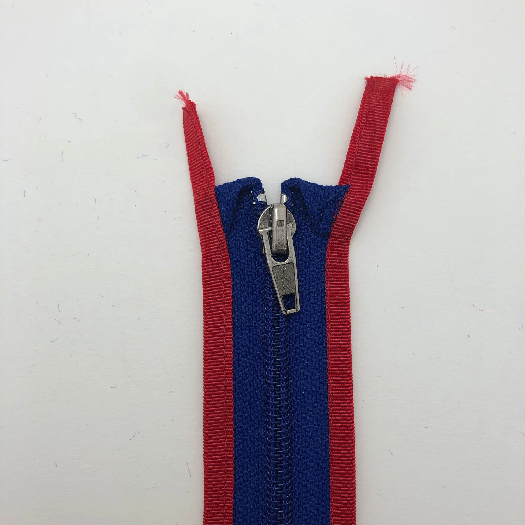 6” Coil Zipper with Bounded Edge -  Seperating - Blue / Red - Individual - FABCYCLE Deadstock and Sustainble Fabrics and Sewing Supplies (4599990091889)
