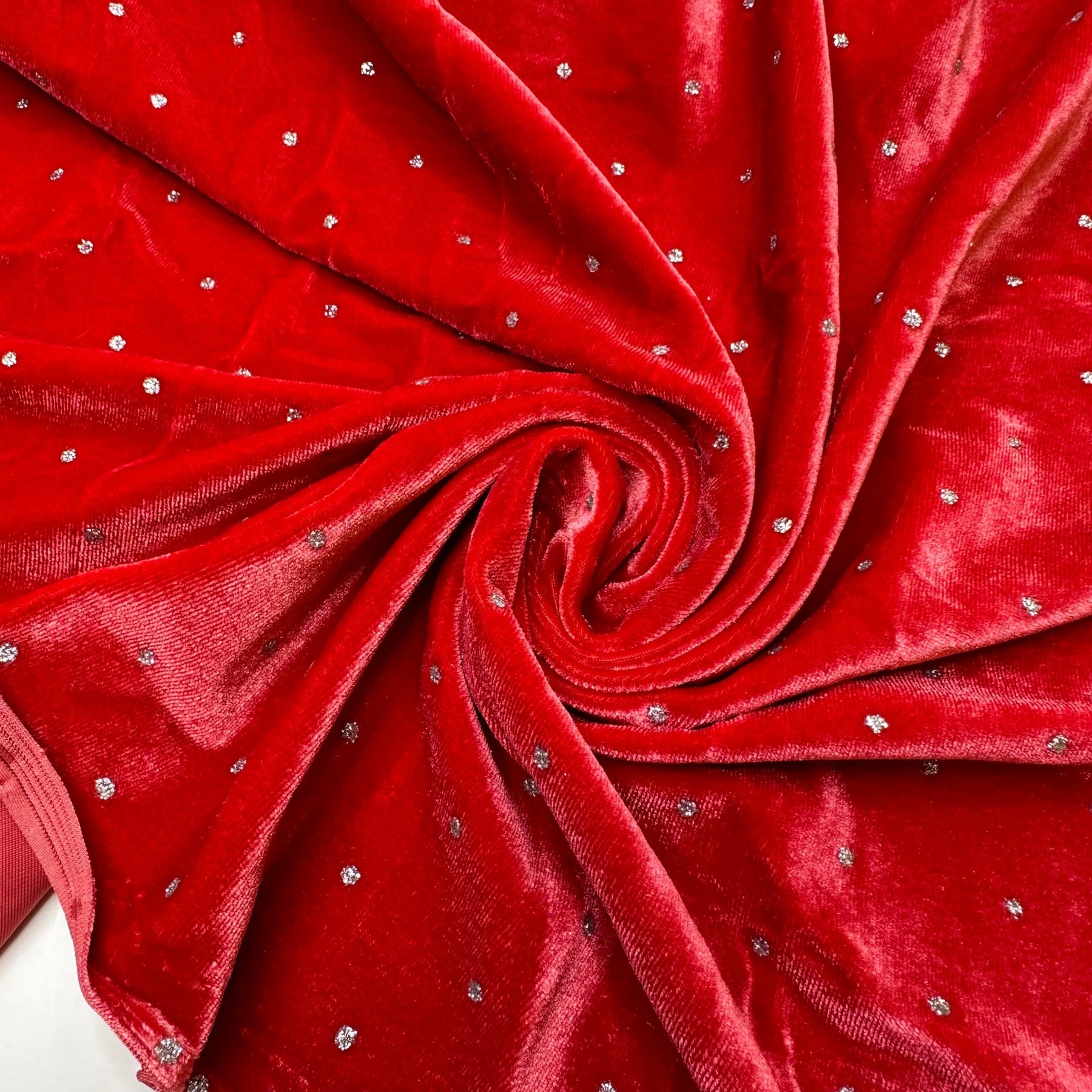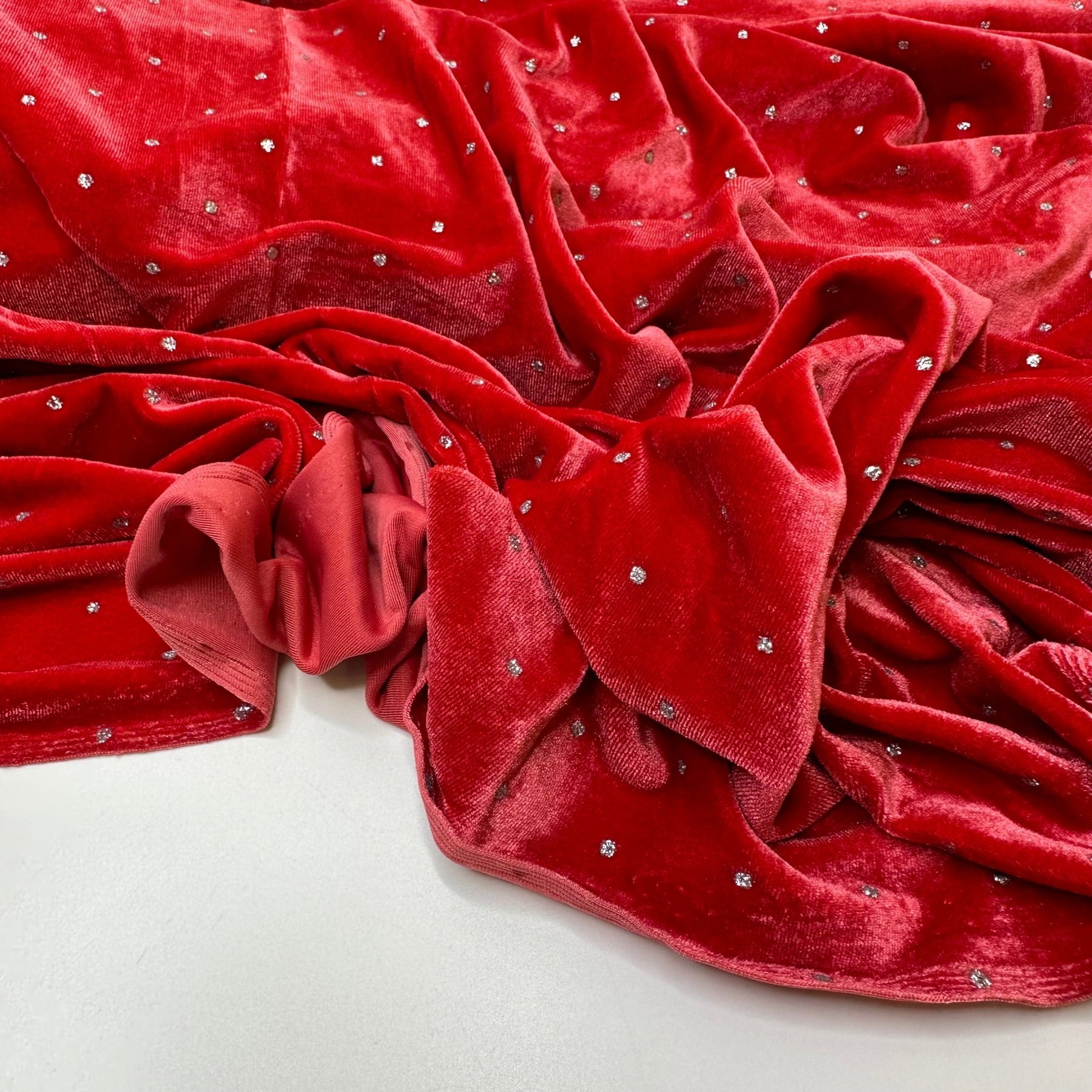 And For My Next Trick - Glitter Knitted Velour Poly Knit - Dark Silver/Peach Pink Polka Dots - 1.45M Bundle