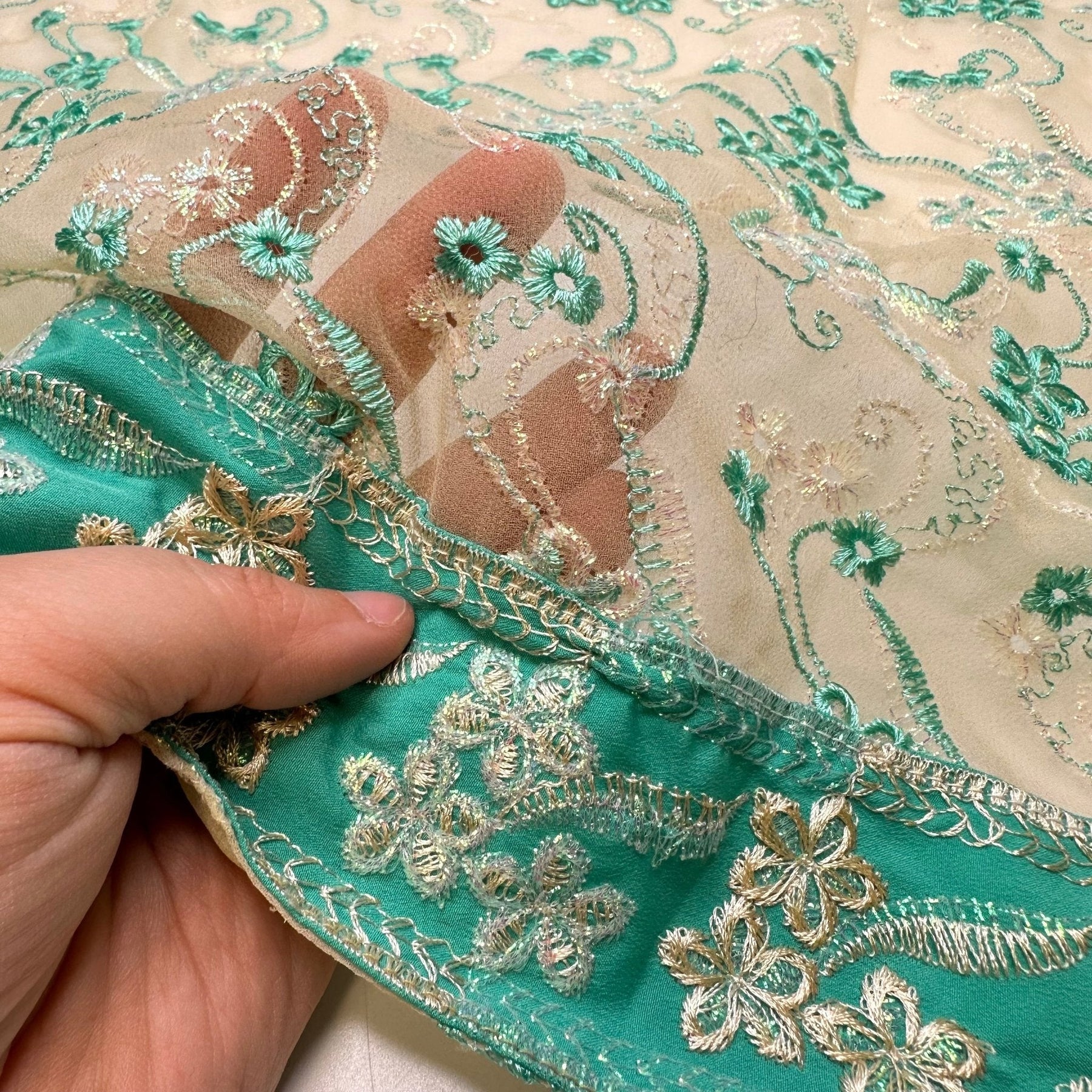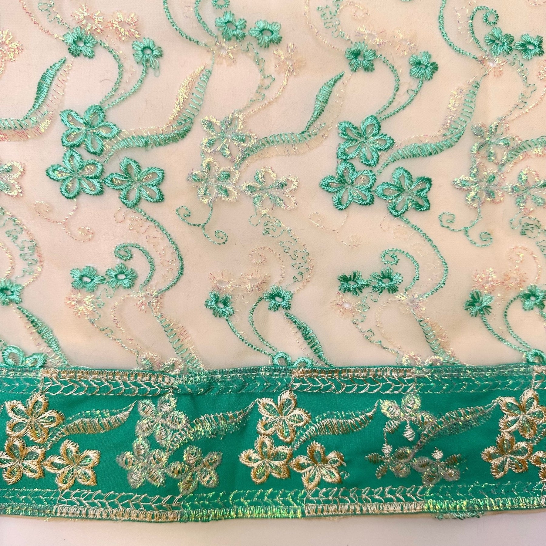 Because I Said So - Metallic Polyester Blend Woven - Light Beige/Teal Floral Border - 2.2M Bundle