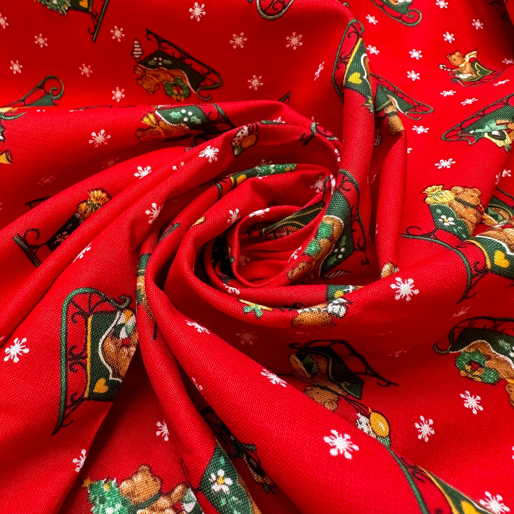 Best In Snow - Cotton Woven - Red Multi Christmas Teddy Bears - 1.3M Bundle