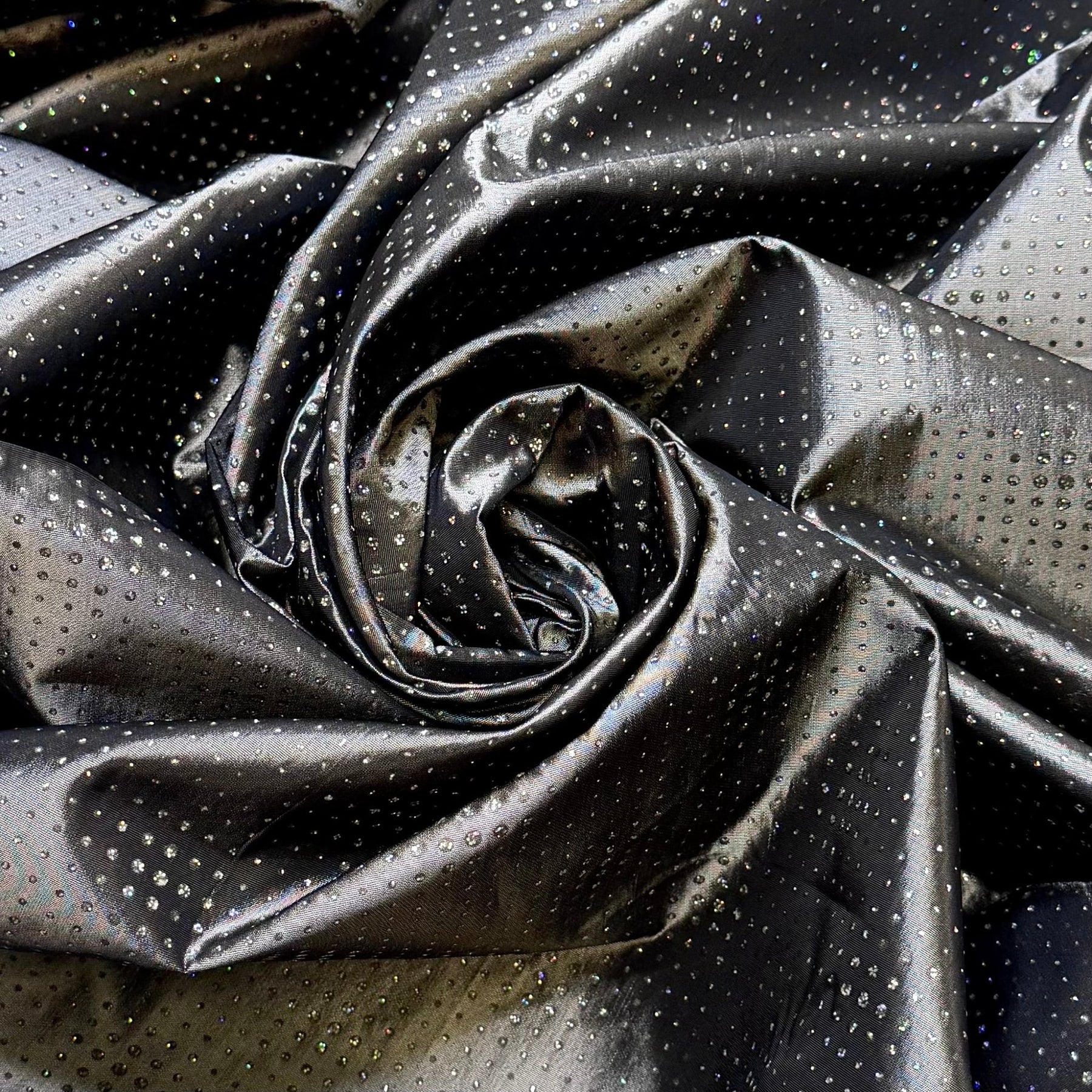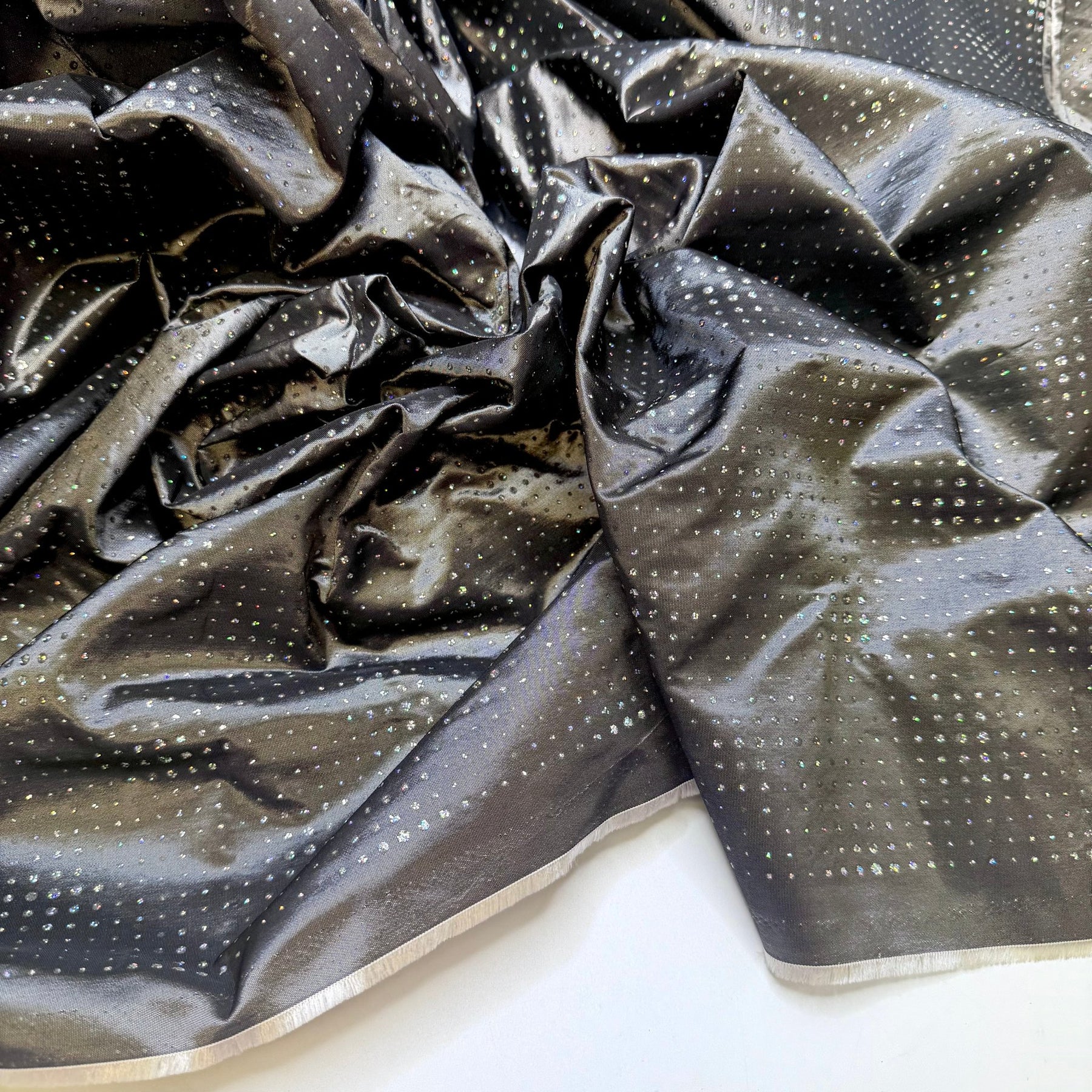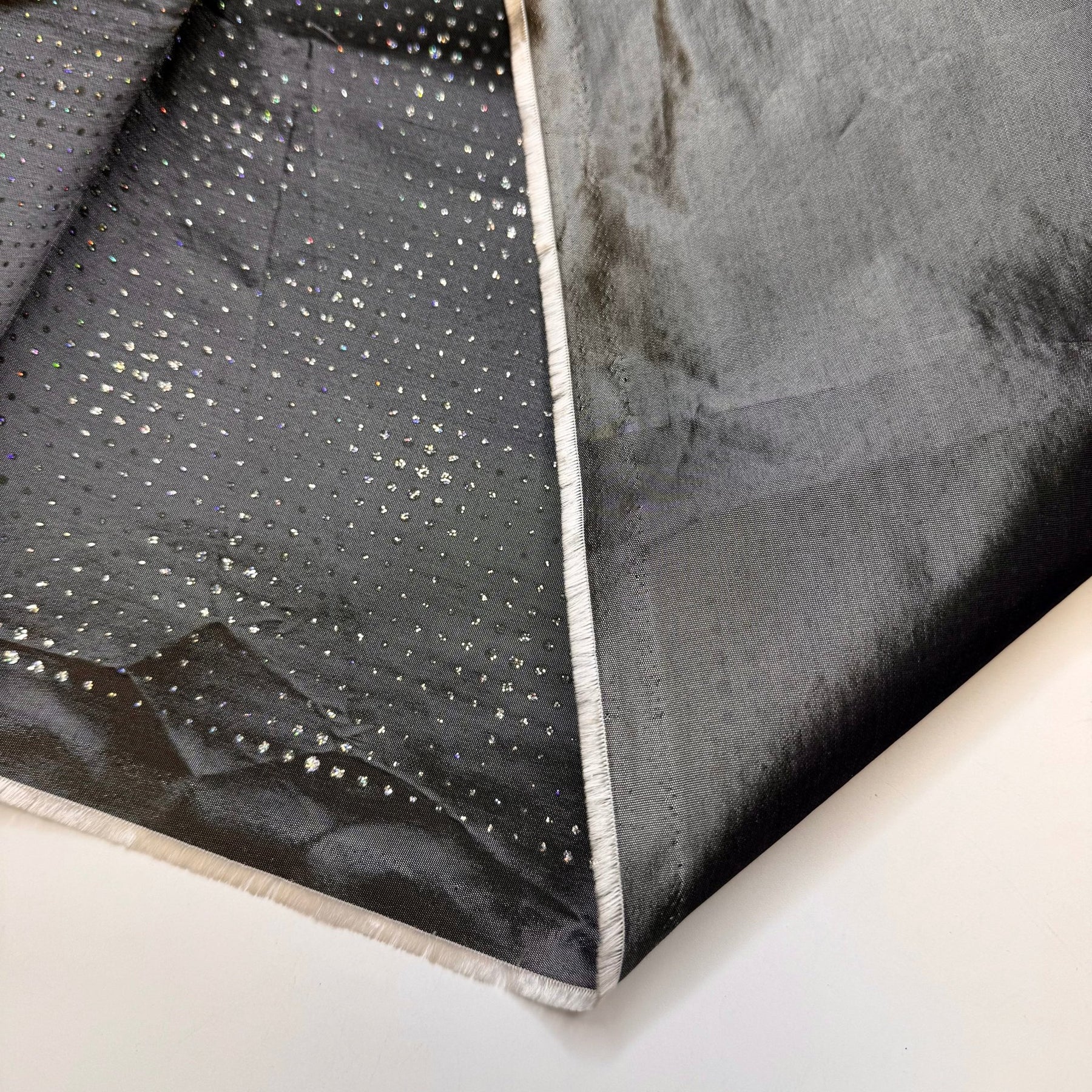 Best Party In The Galaxy - Glitter Taffeta Poly Woven - Dark Grey Multi Polka Dots - 2.7M Bundle