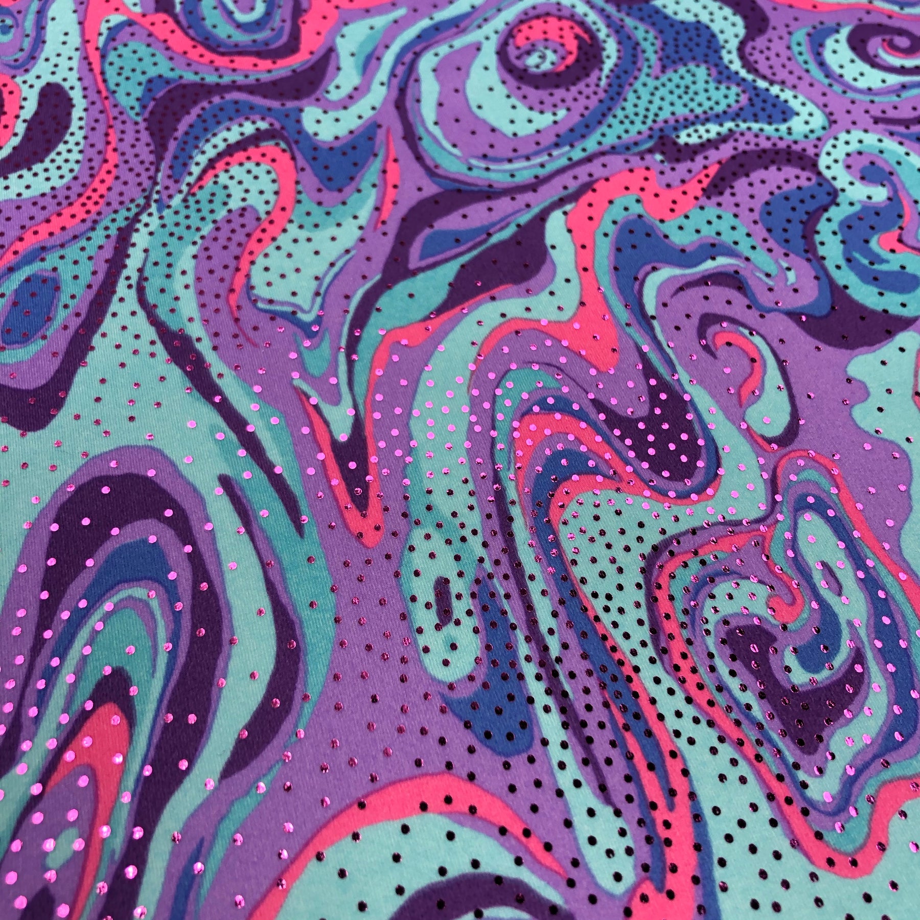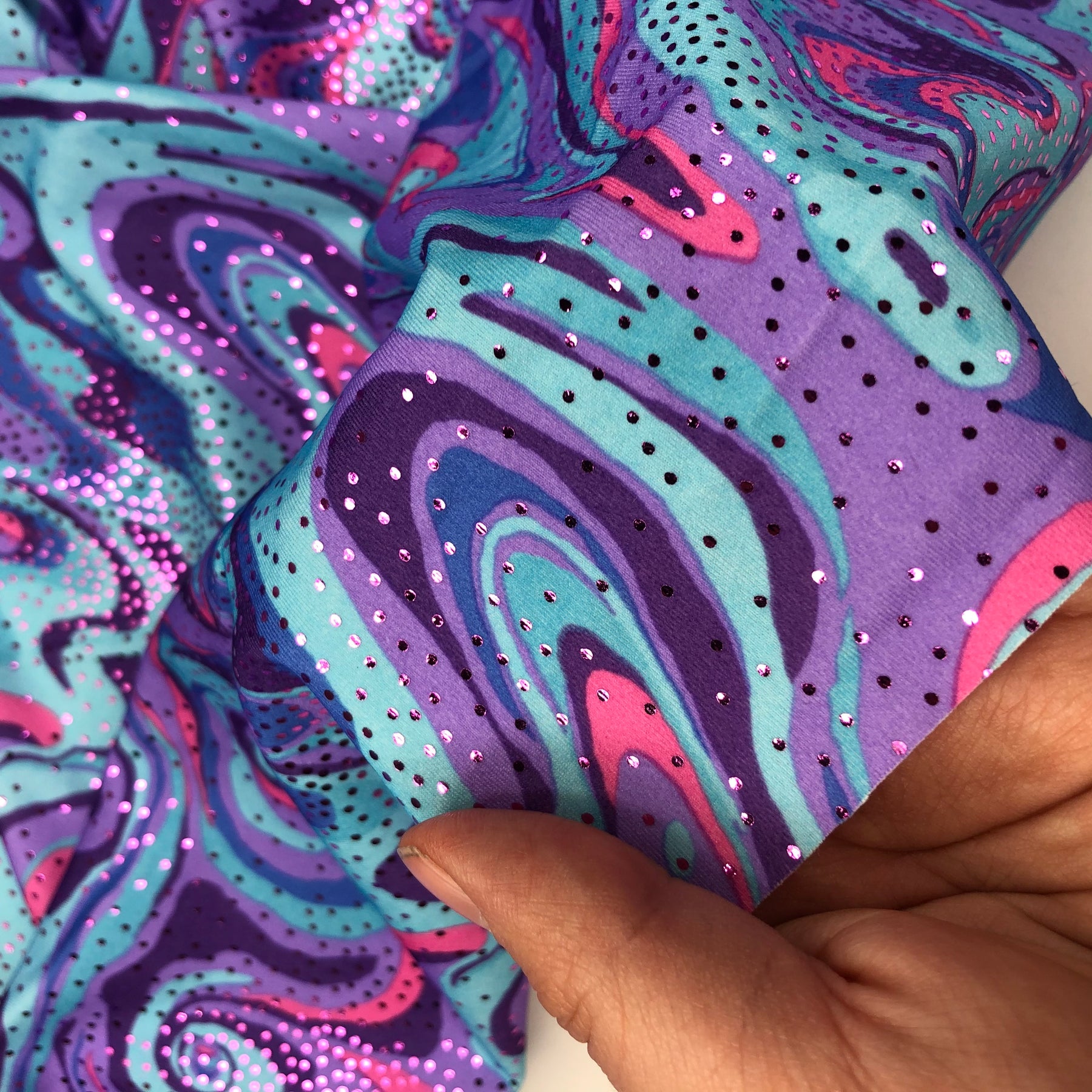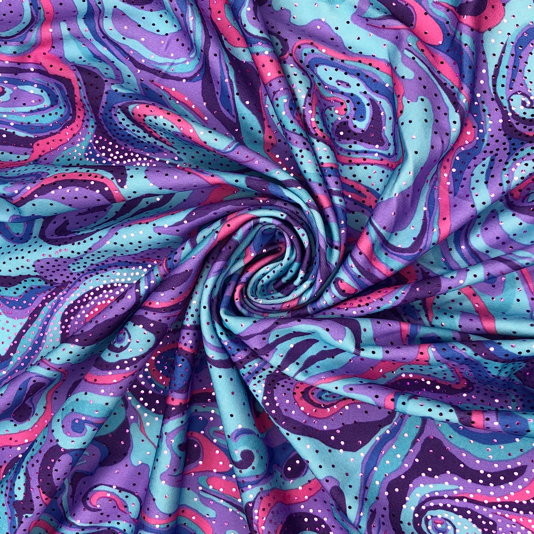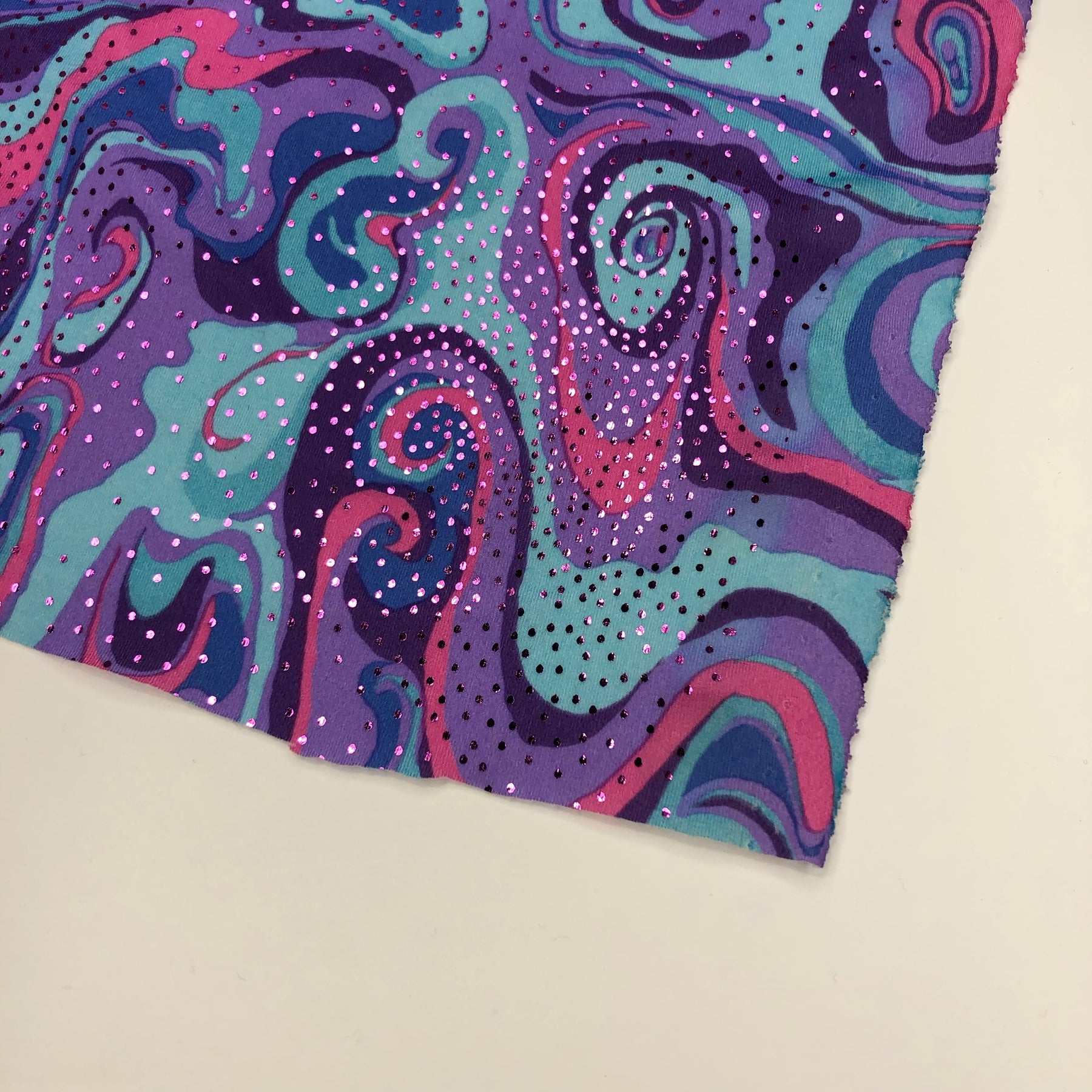 Blades of Glory - Polyester Spandex Knit - Blue / Pink / Purple - 1/2 Meter