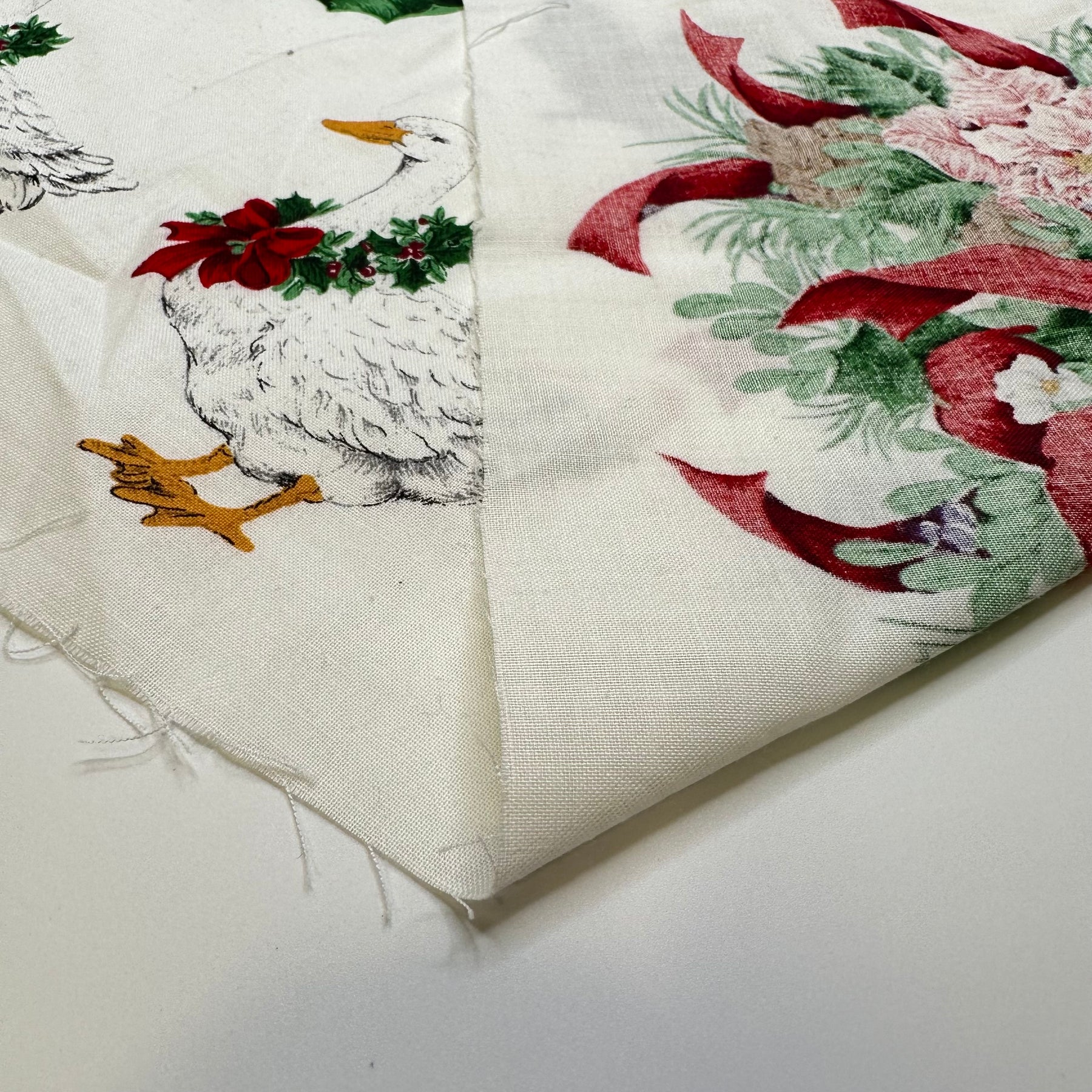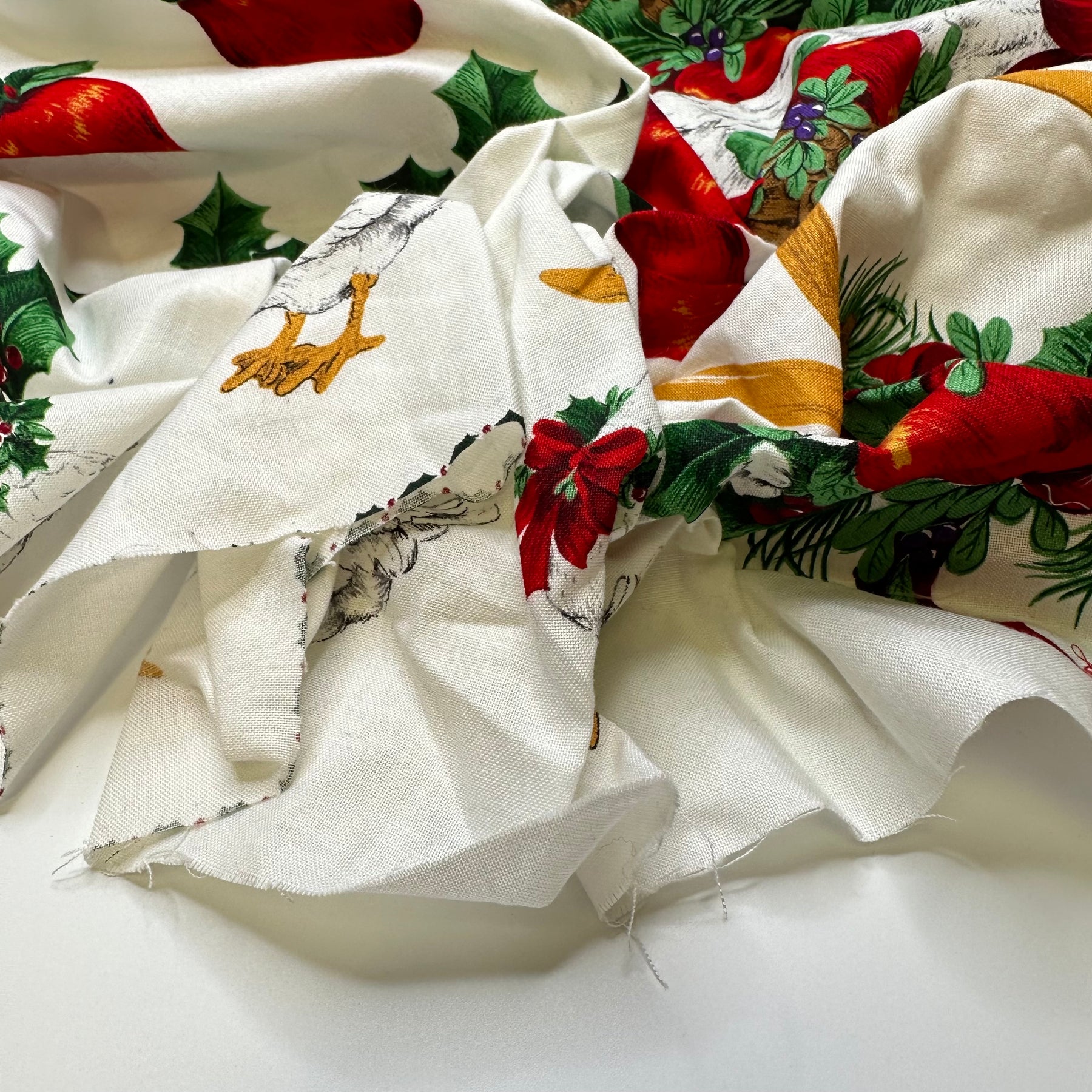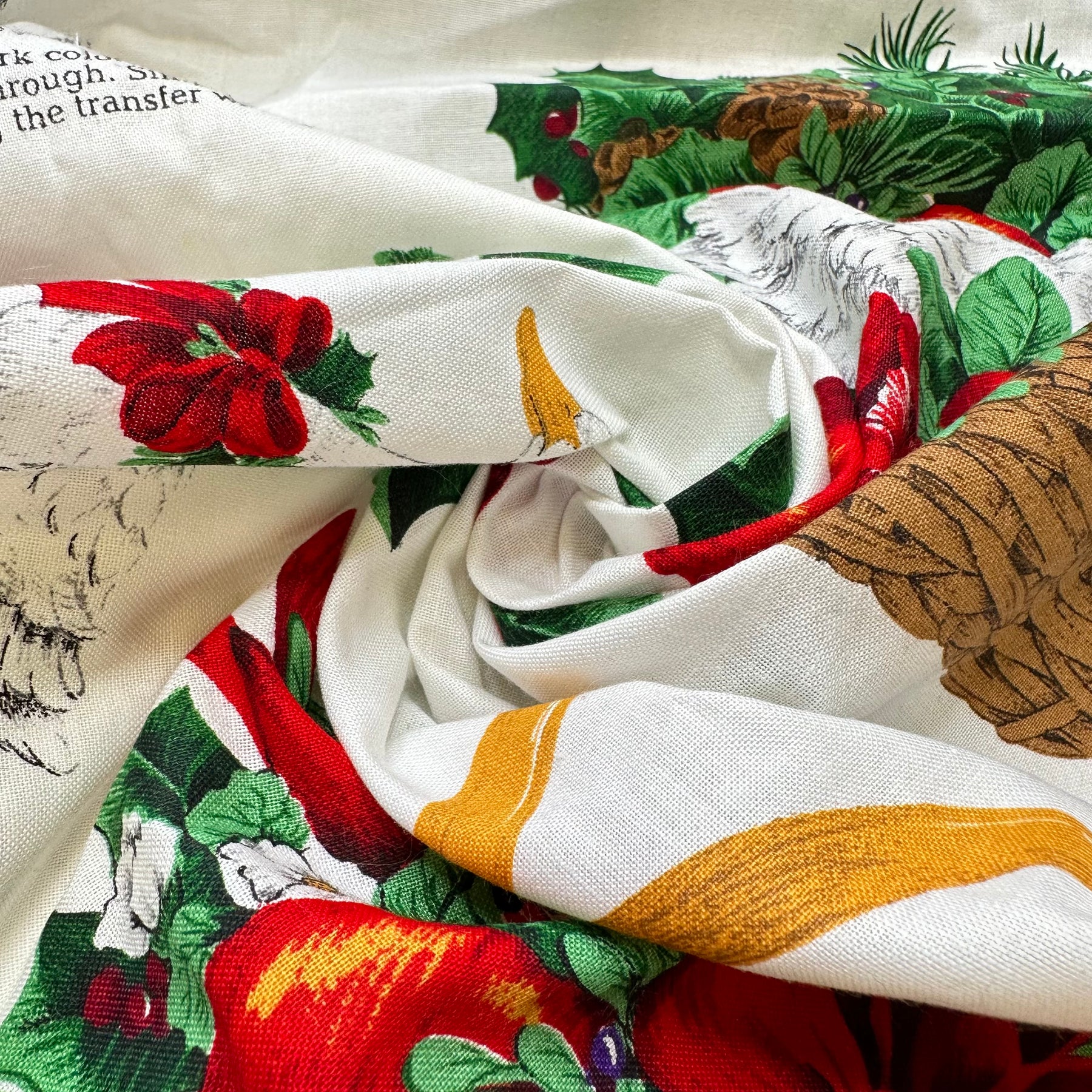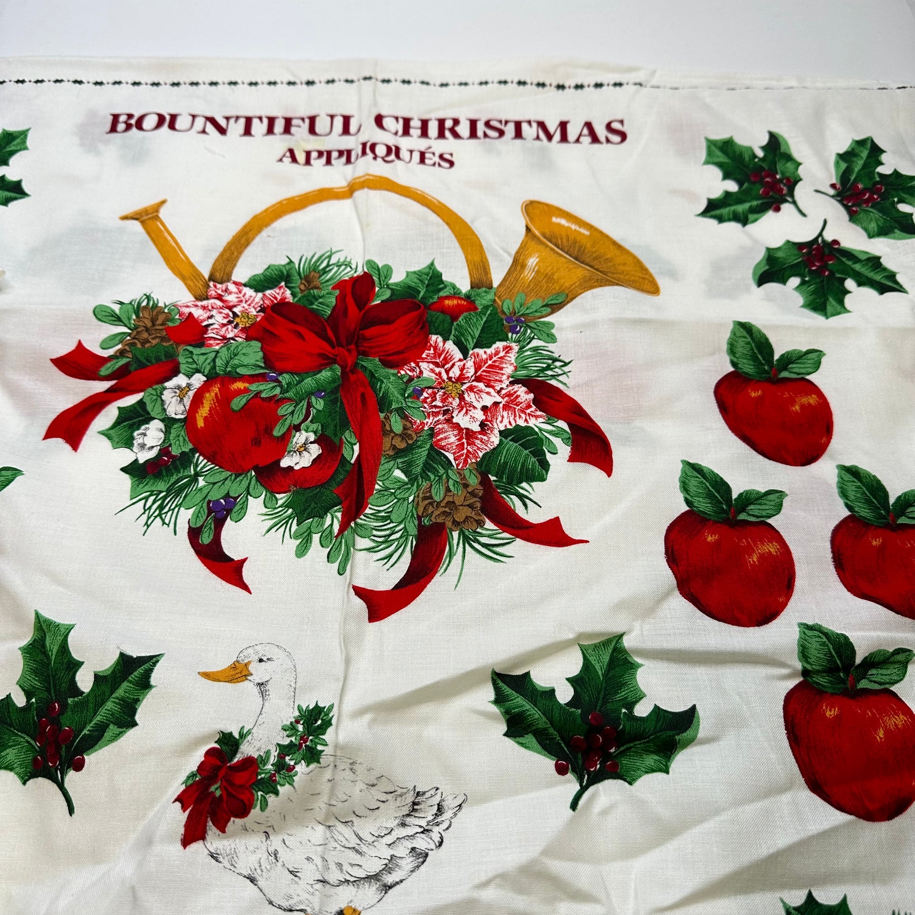 Bountiful Xmas Appliques - Vintage Cotton Woven - White Multi Floral - 1.8M Bundle