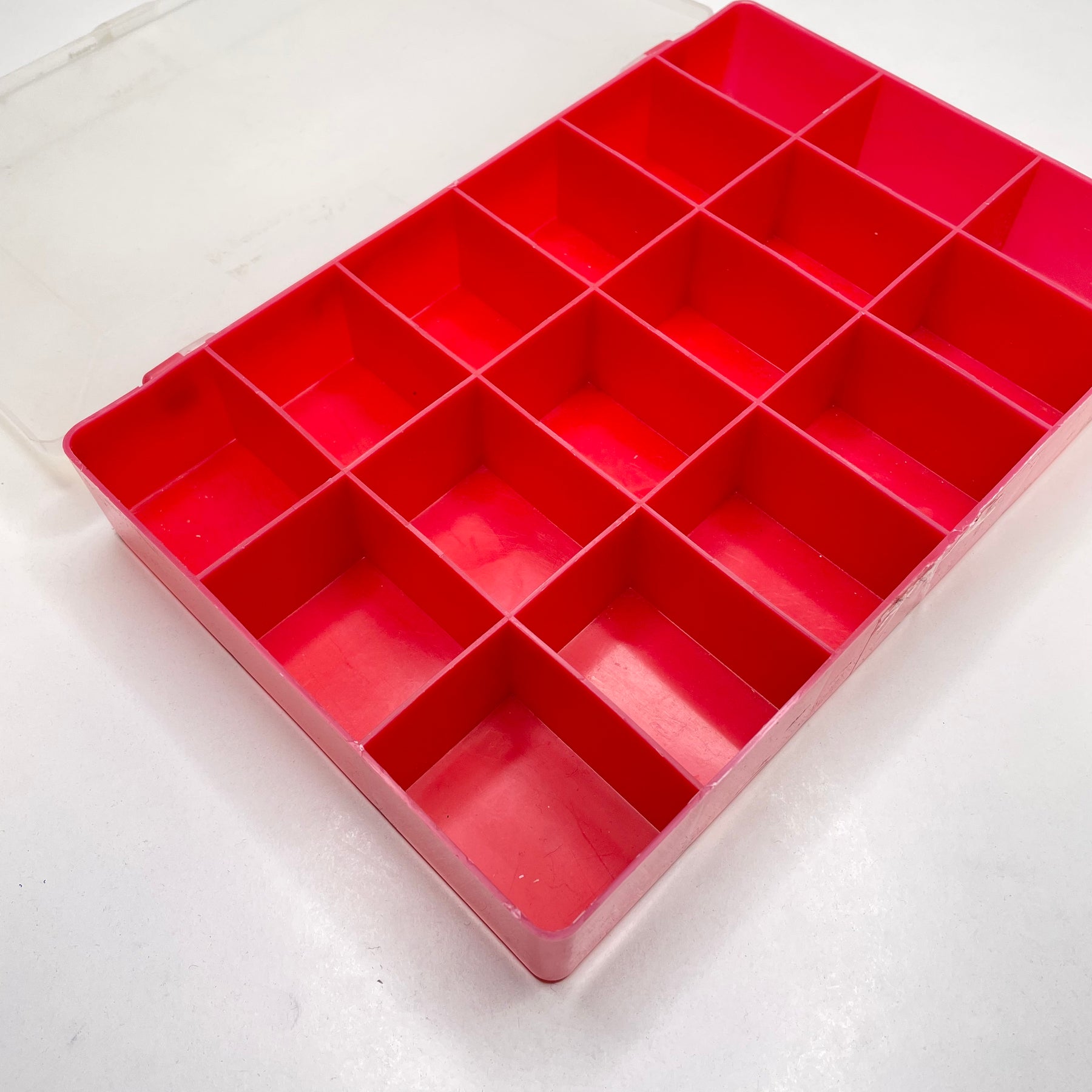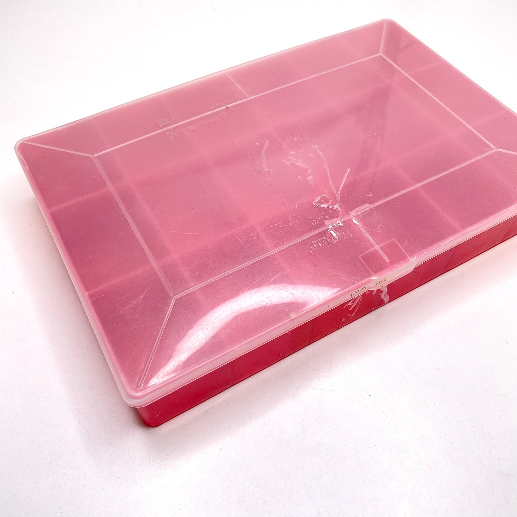 • Plastic case. Tape residue on lid.