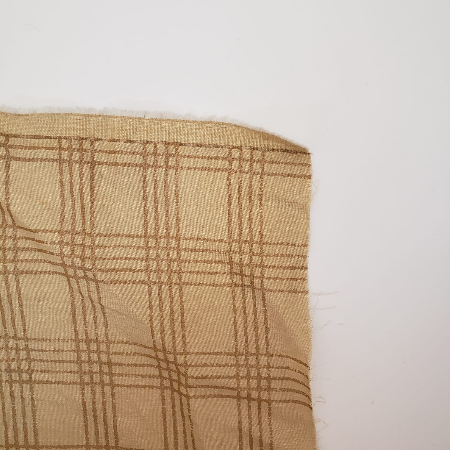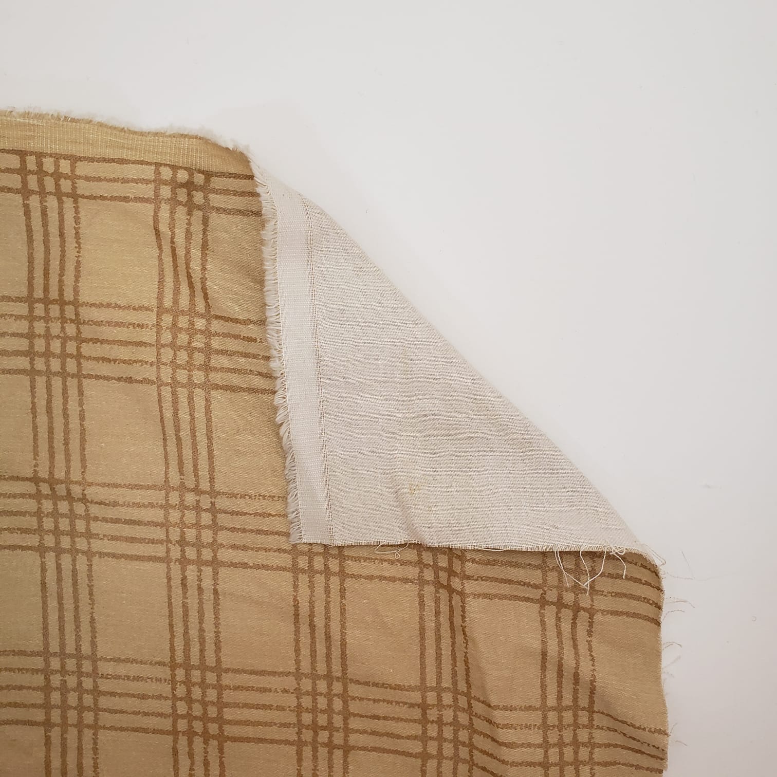 Regular price $5.00 CADThis upholstery woven features a plaid pattern in a beige-yellow hue. It is opaque, soft, medium weight, and has no stretch. *True colour best depicted in 2nd and 3rd photos