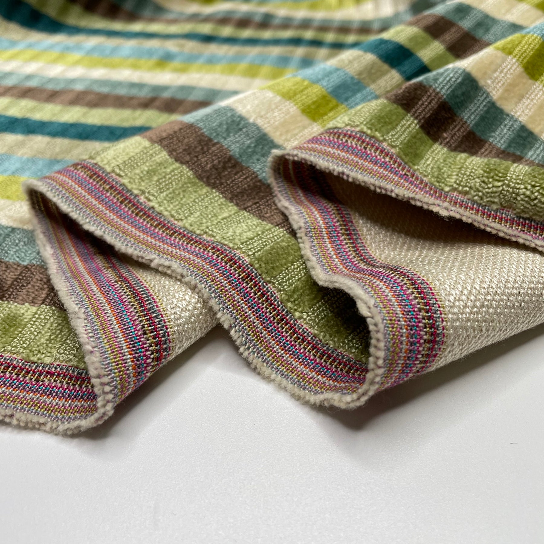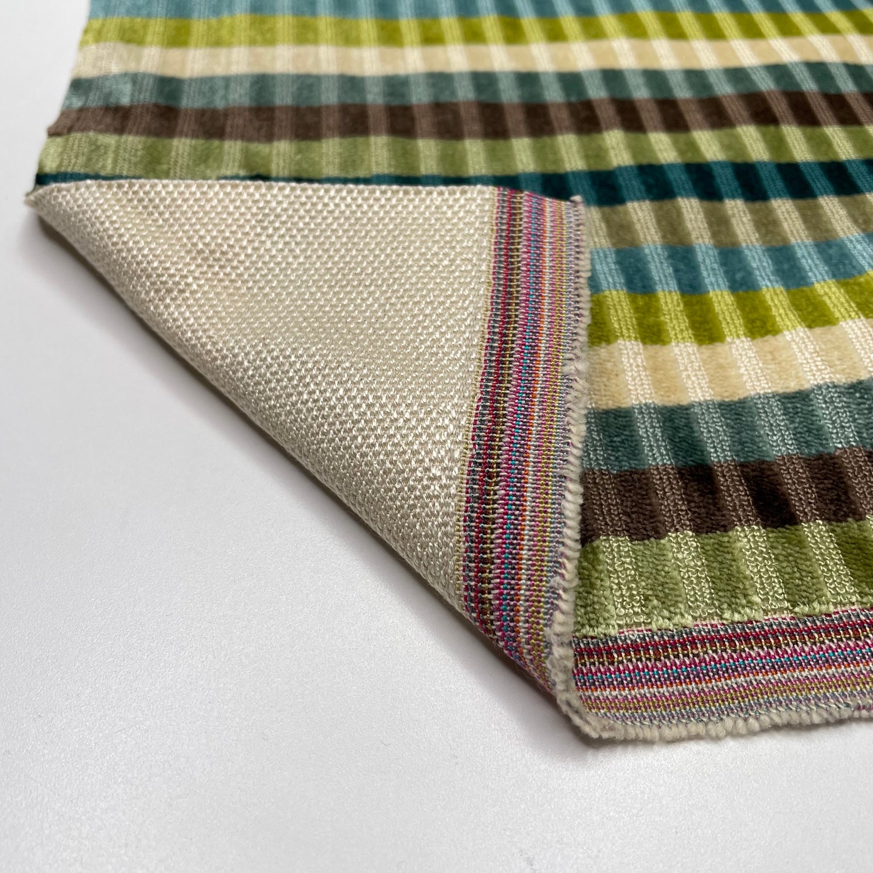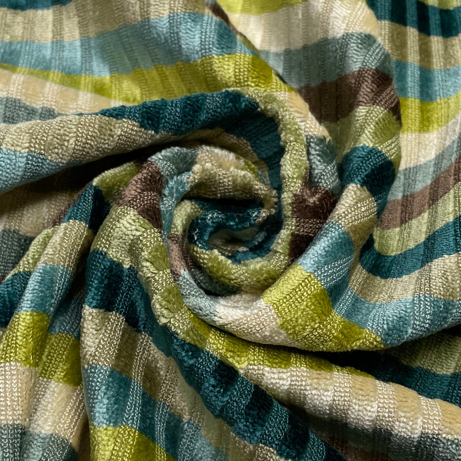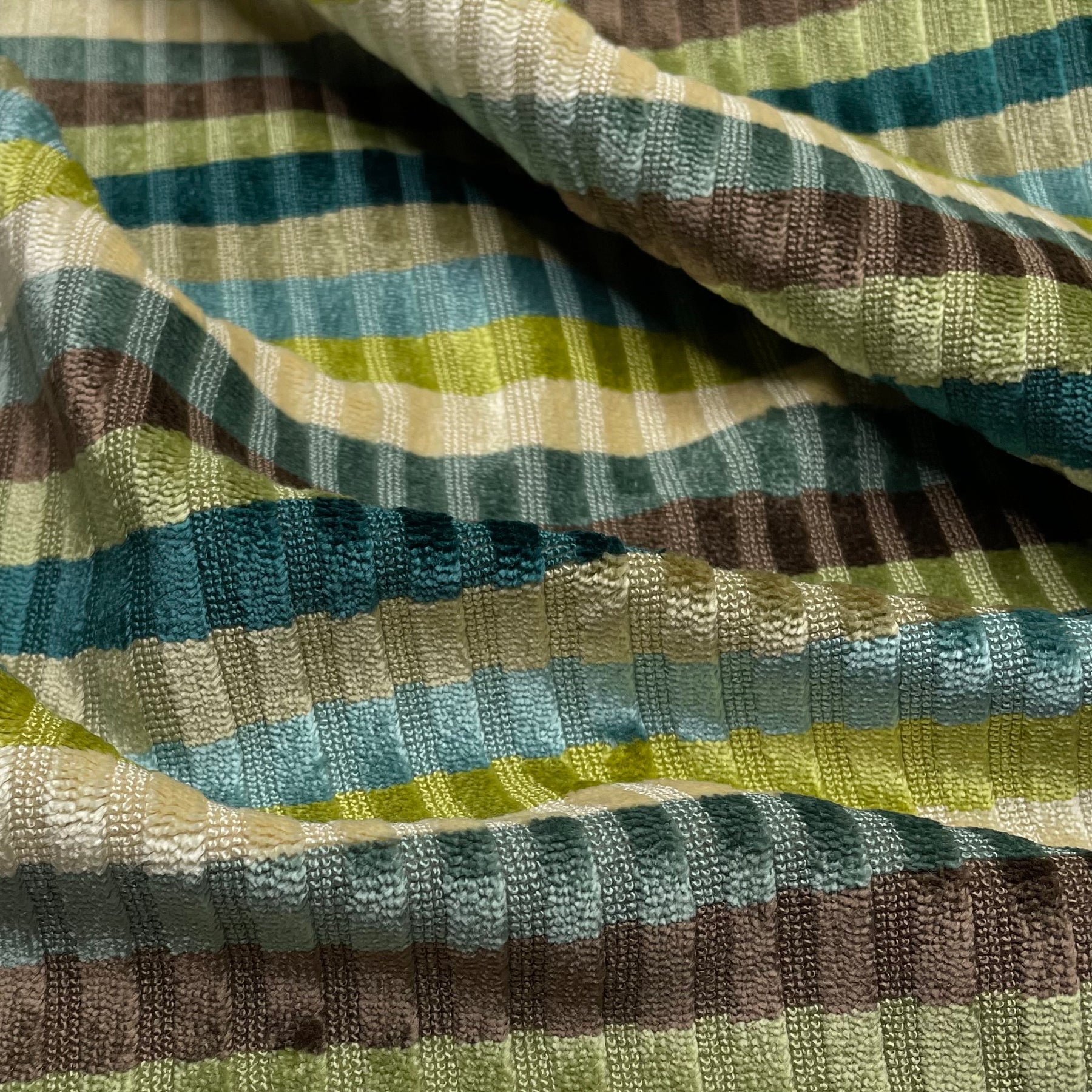 Cozy Couch Time - Velvet Polyester Blend Woven - Green Multi Stripes - 1.4M Bundle