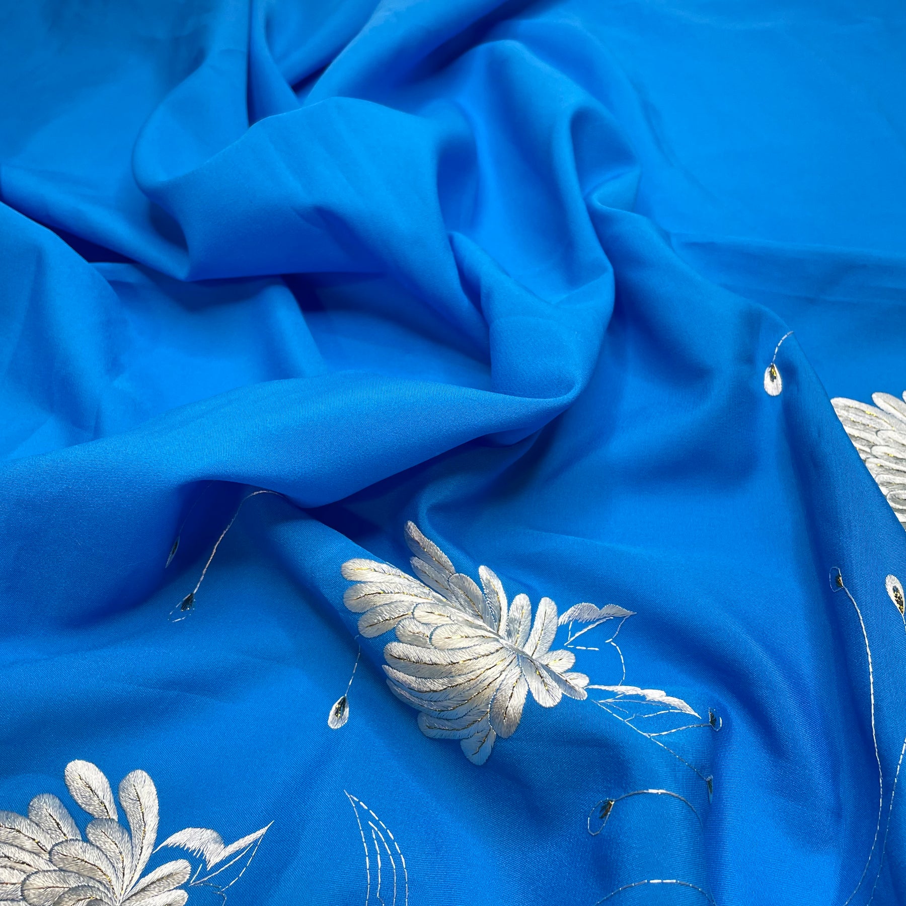 Daytime Moon - Embroidered Poly Woven - Blue - 2M Bundle