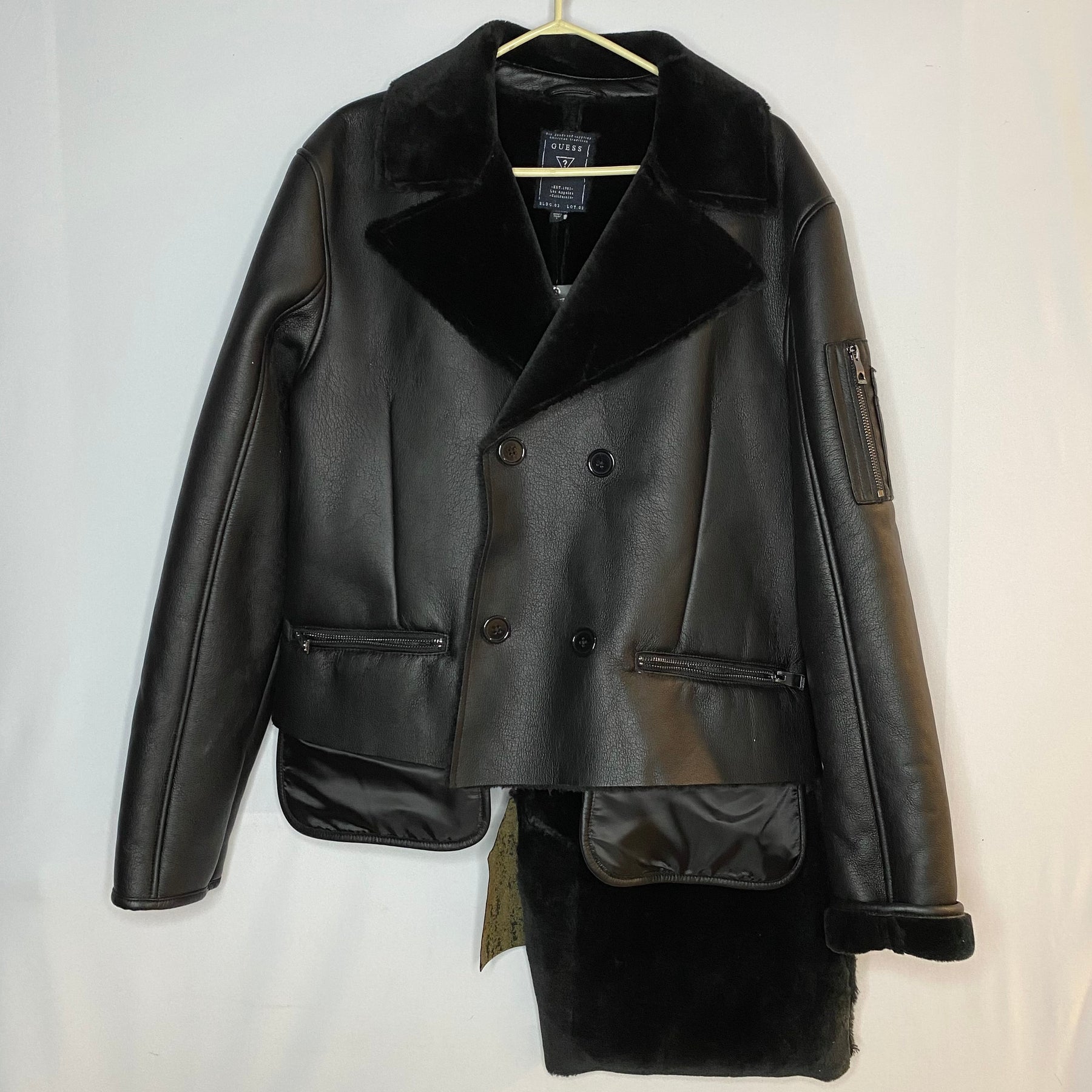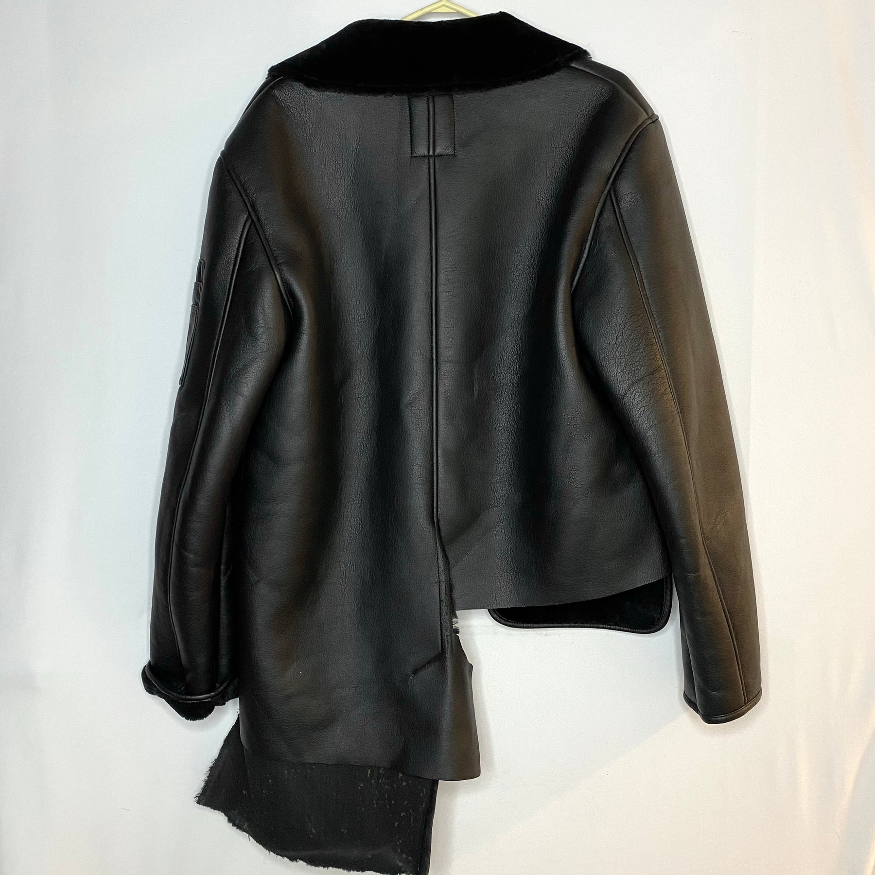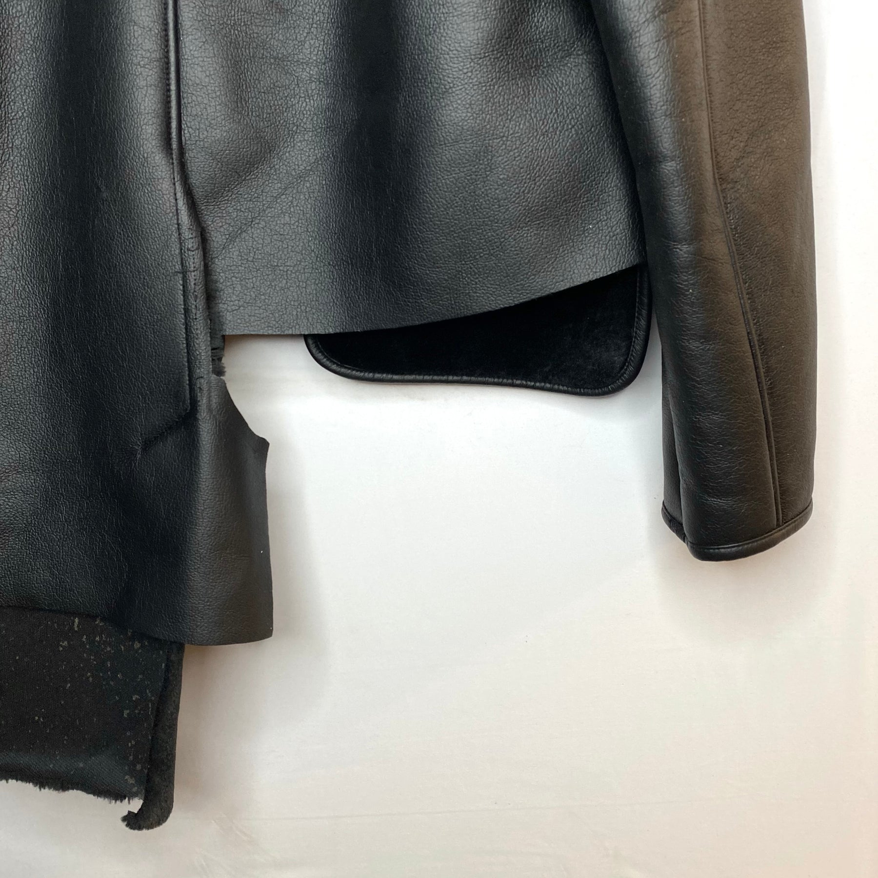 Faux Fur Lined Leather Jacket - Black - Large