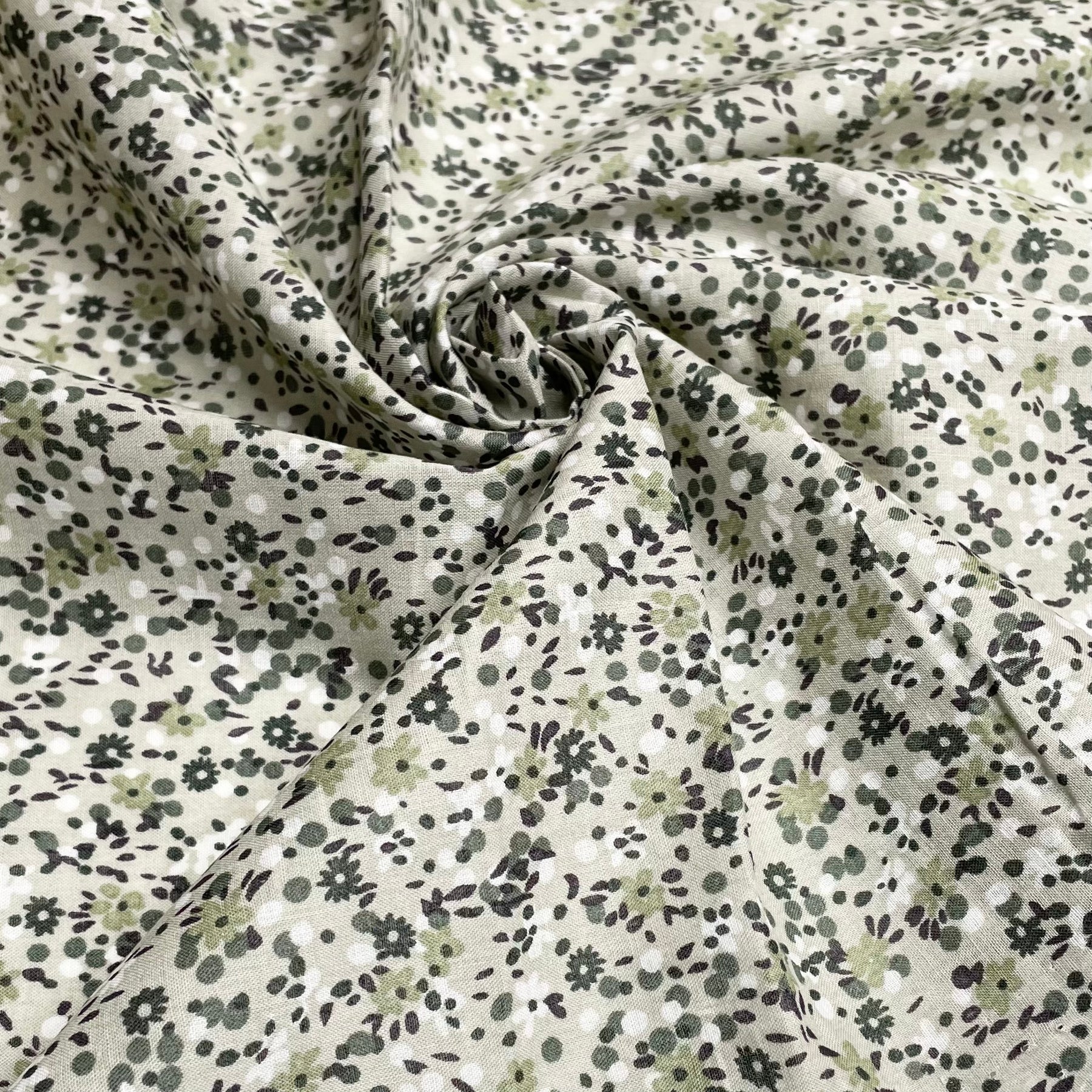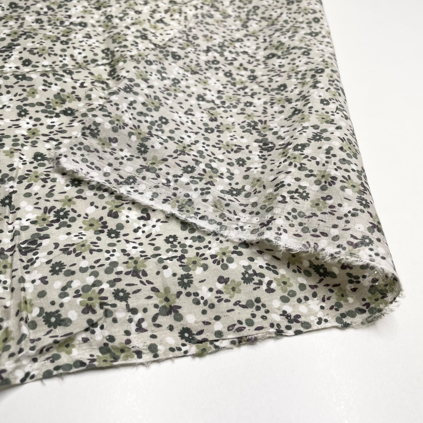 Frost On The Hedges - Natural Blend Woven - Green Multi Floral - 1.4M Bundle