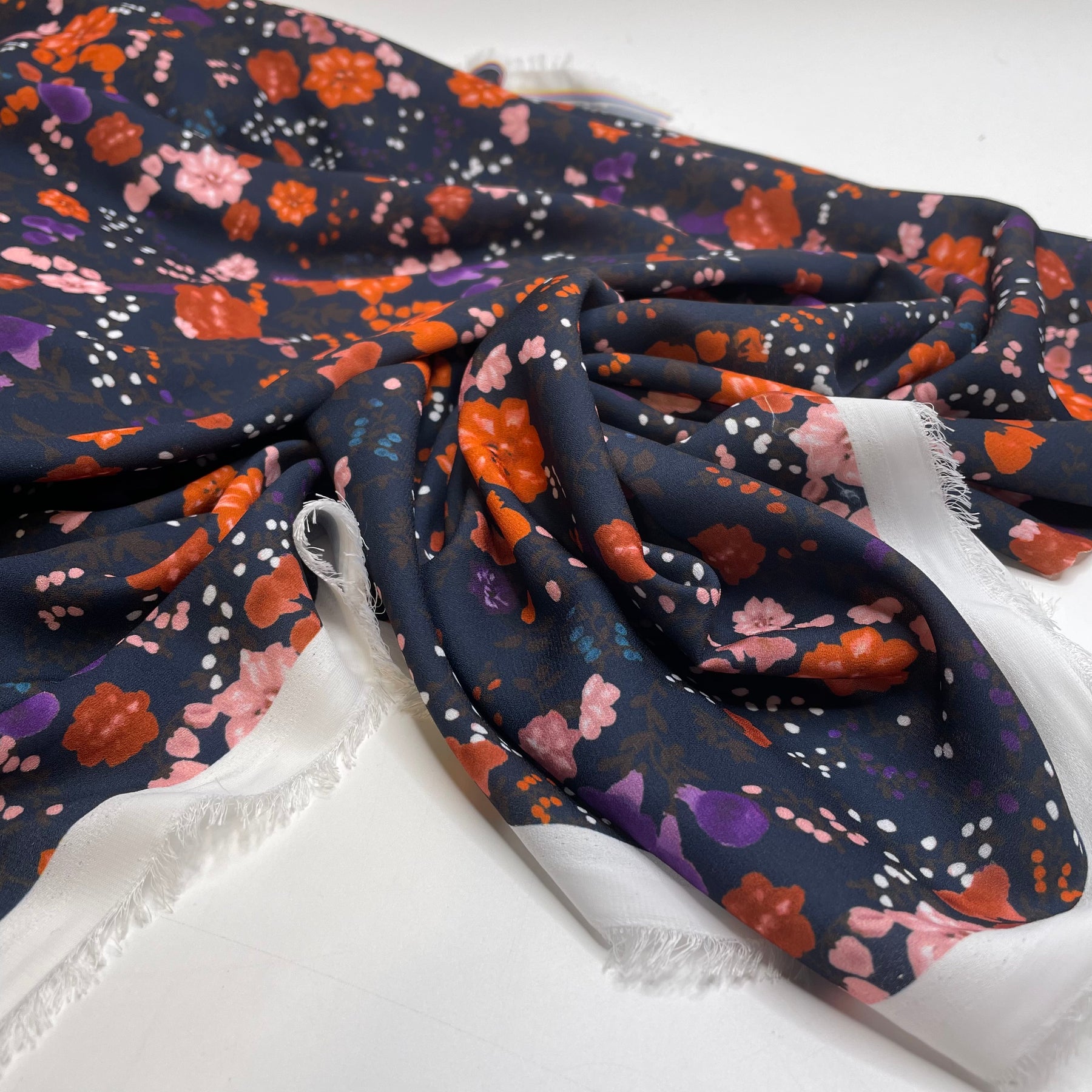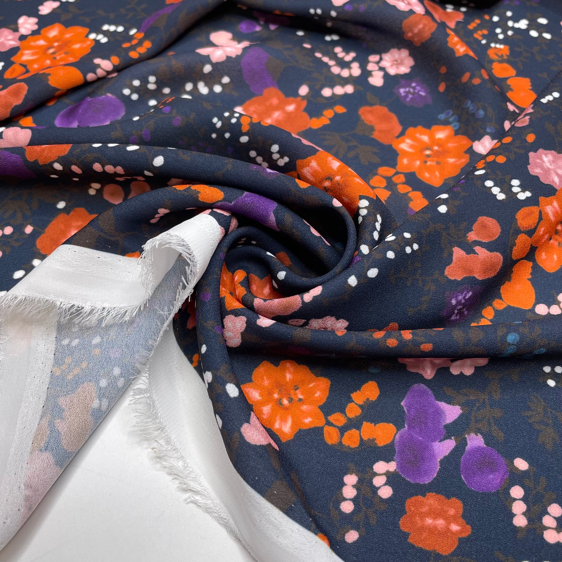 Fruity Bouquet - Chiffon Poly Woven - Black/Orange Floral - Bundles