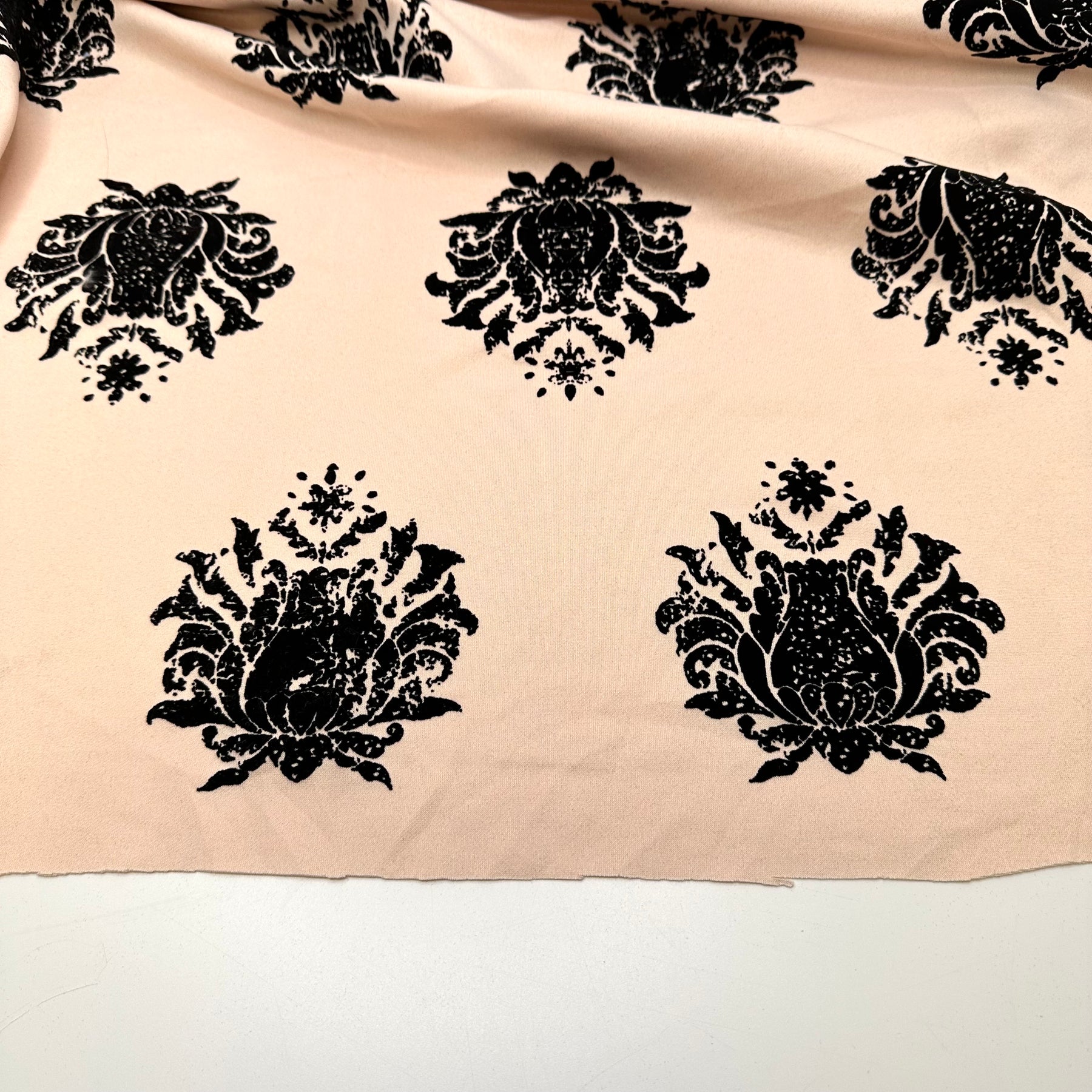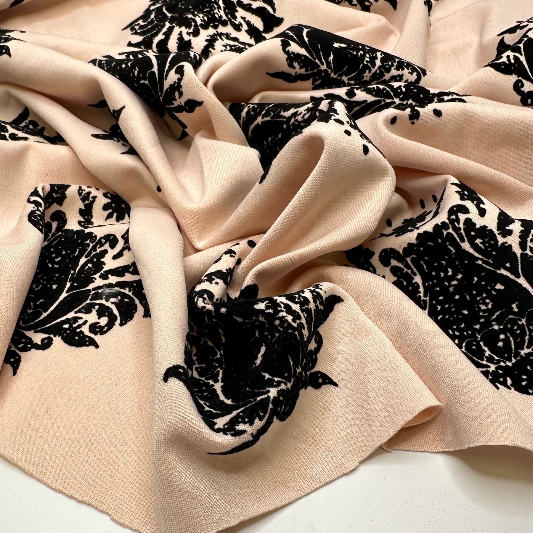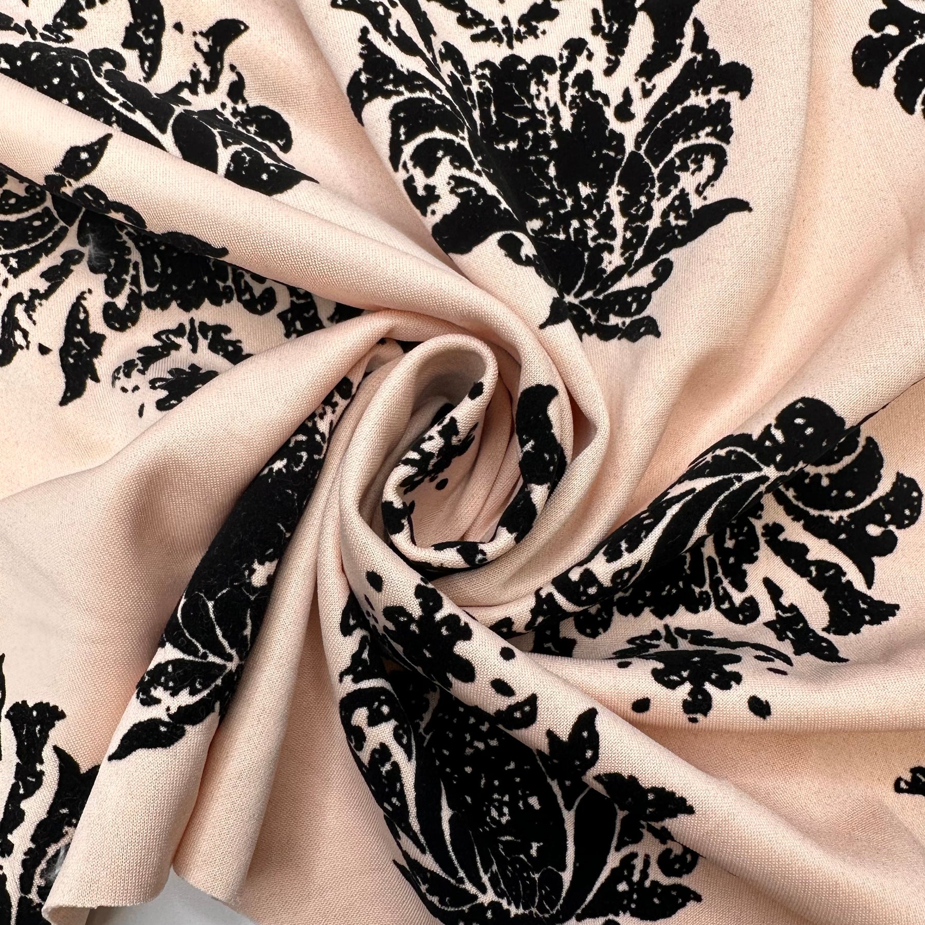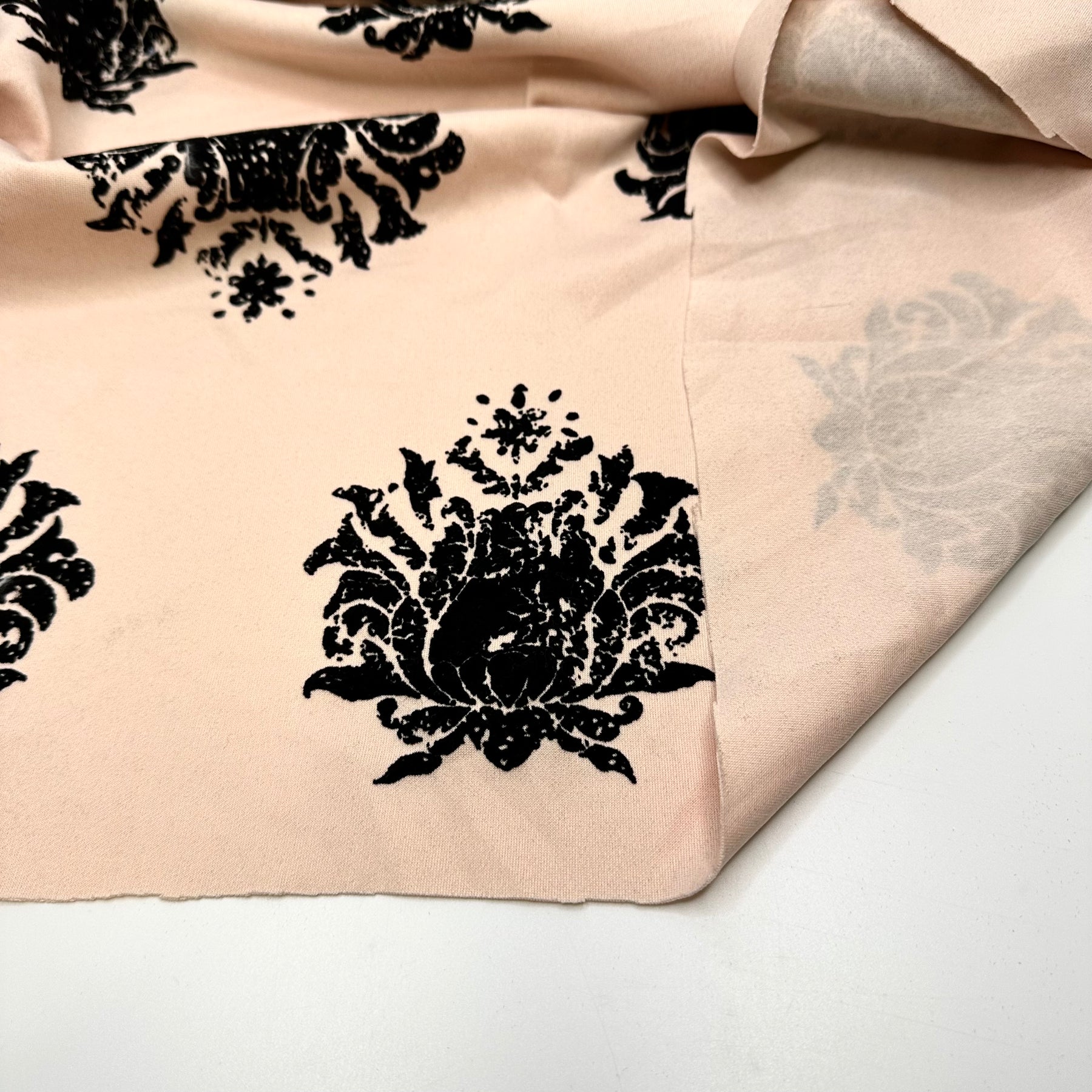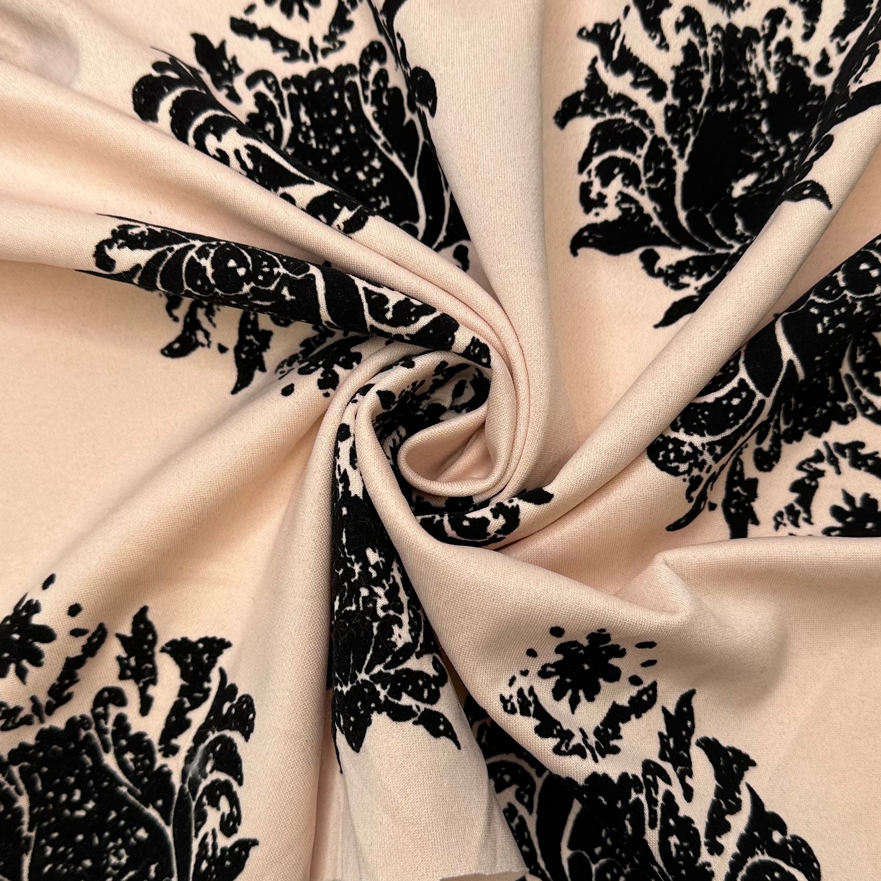 Heading To Coruscant Fashion Week - Velveteen Motif Jersey Poly Knit - Black/Peach Paisley - 0.9M Bundle