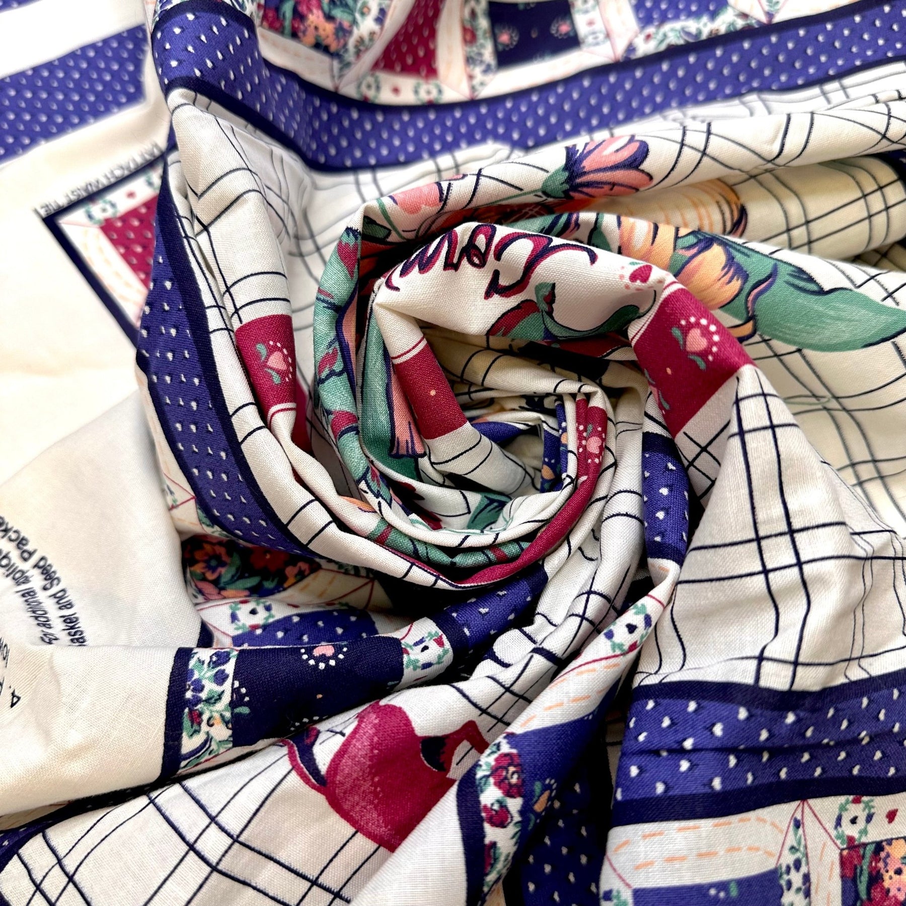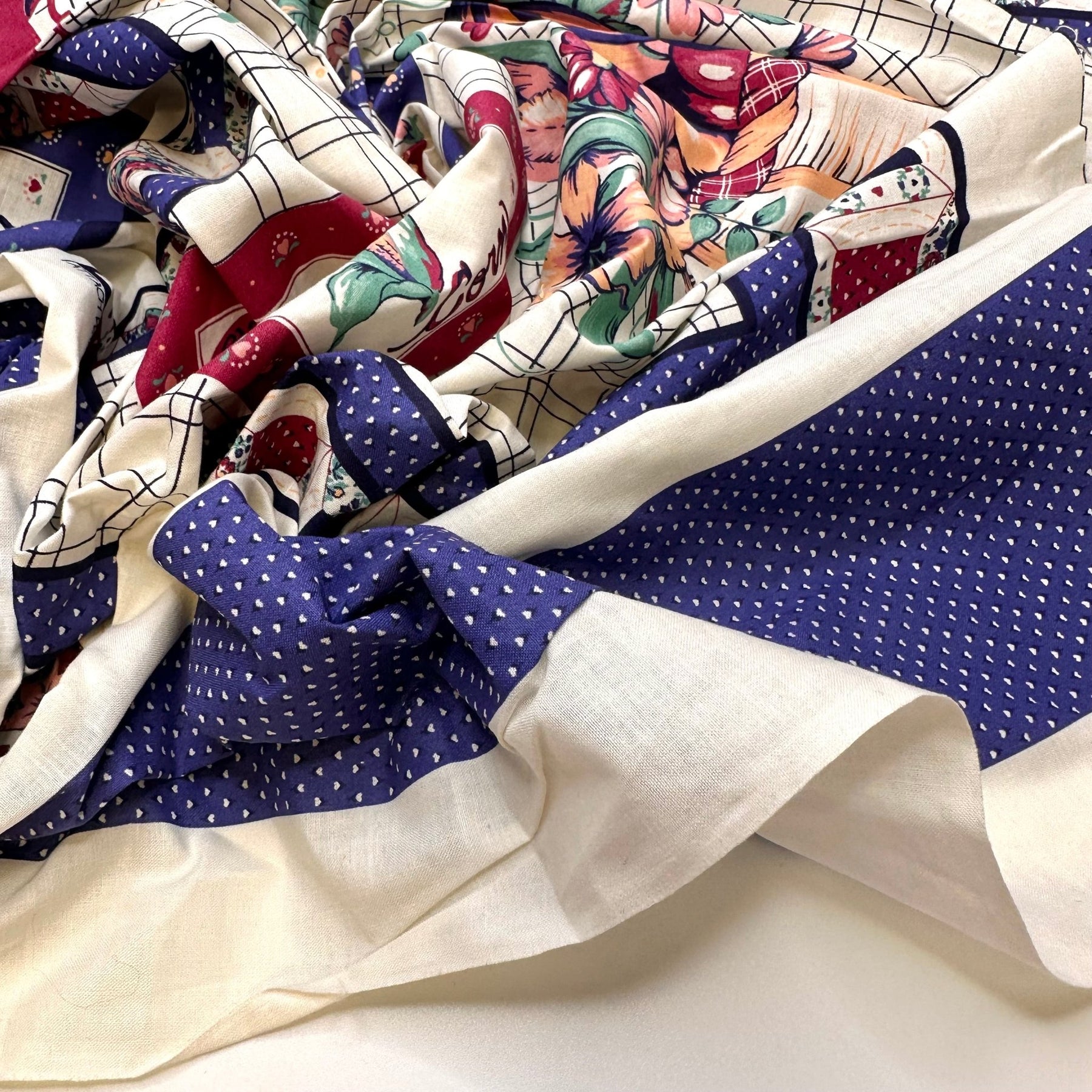 In Mamas Garden - Vintage Cotton Woven - White Multi Apron Pattern - 0.9M Bundle
