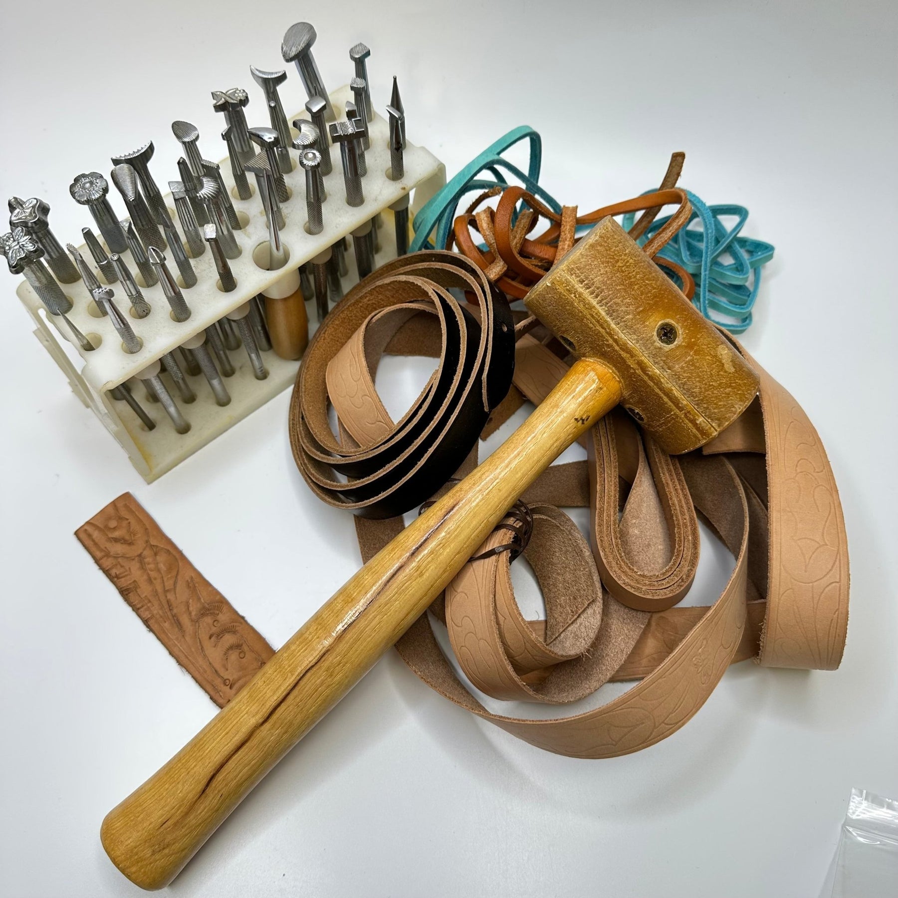 • Kit includes 37 stamp set hammer leather belting and lacing