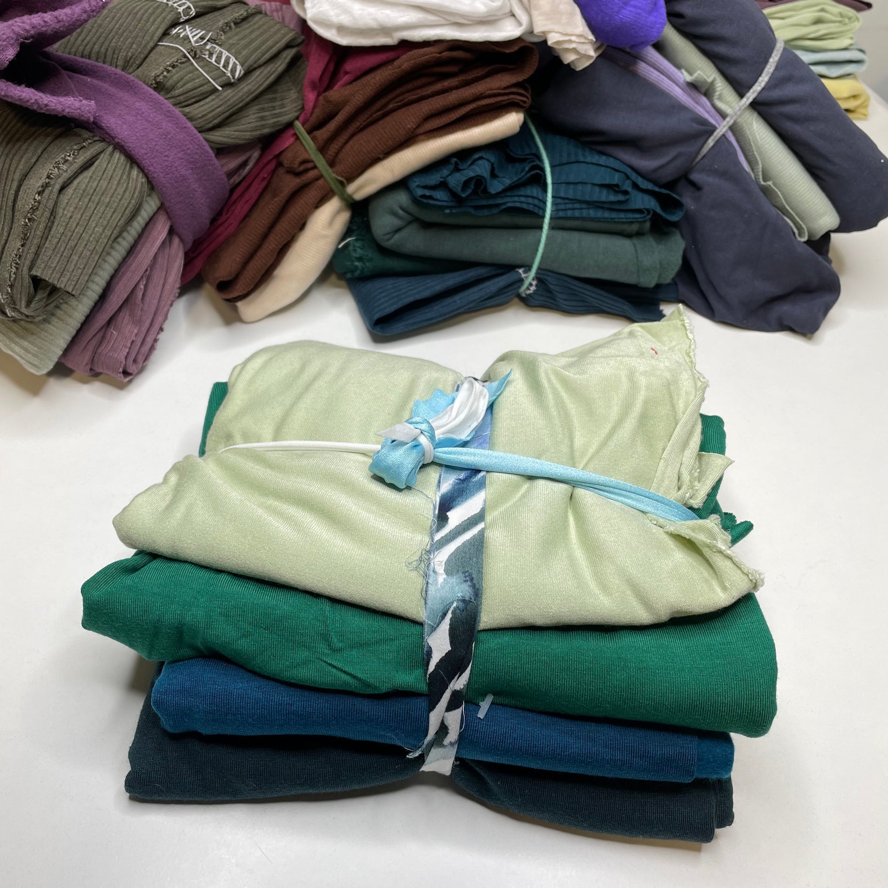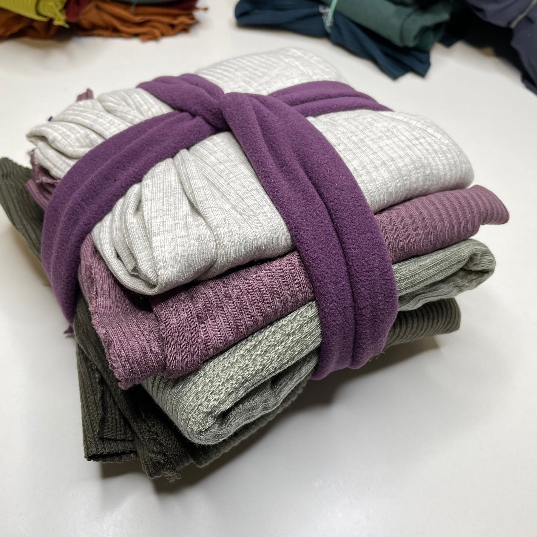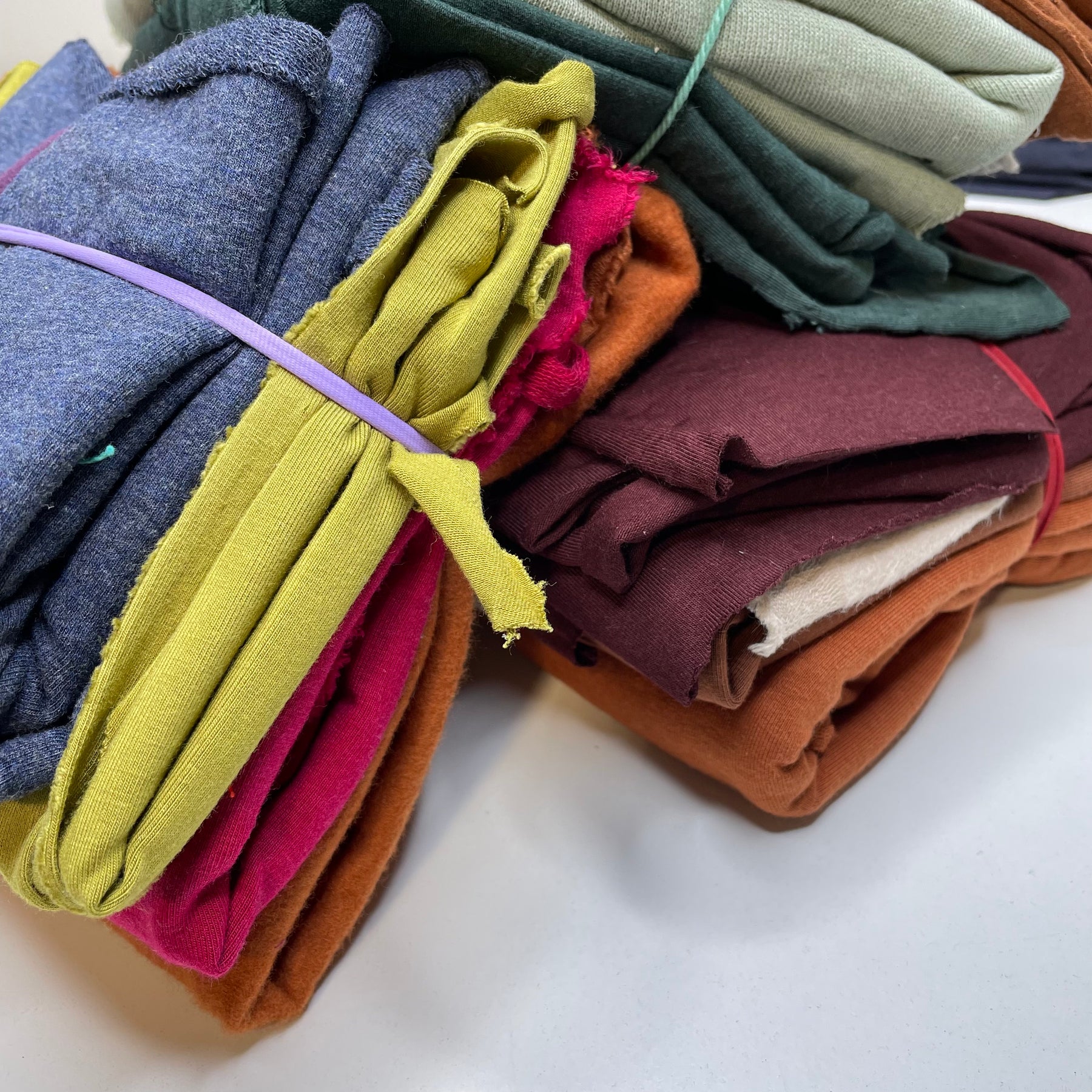Type of Fabric:Â Â Assorted Knits - jersey, french terry, jersey fleece, rib knit