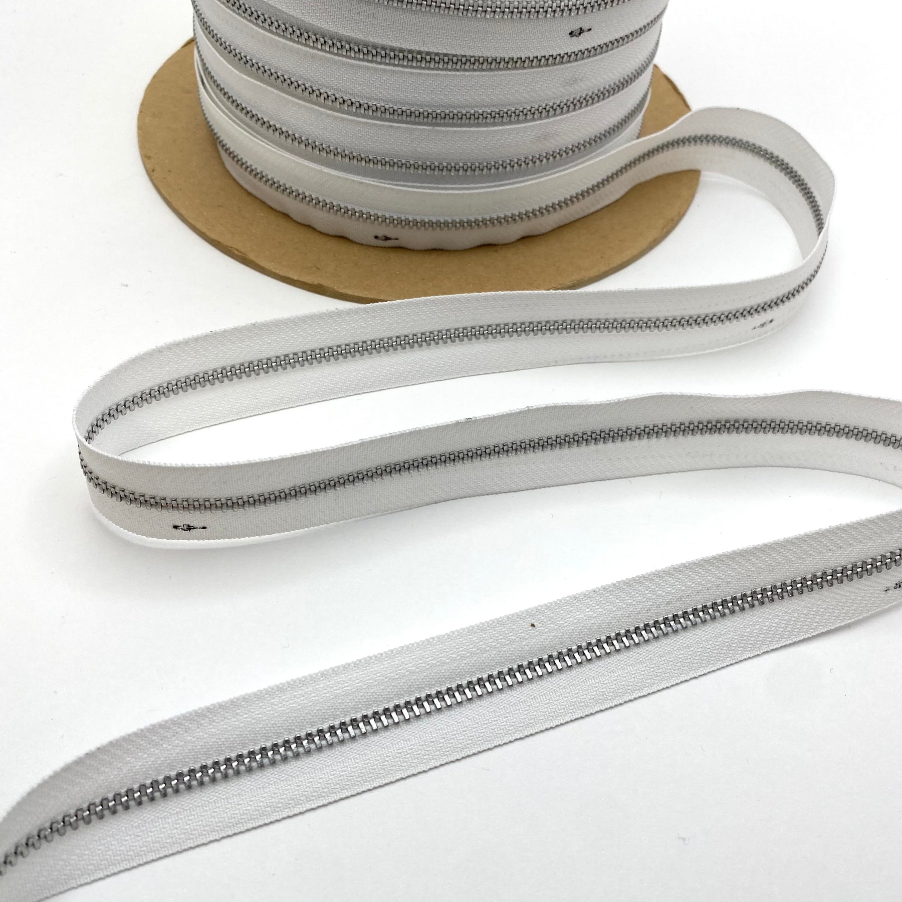 Metal Zipper Tape - White - Per Metre