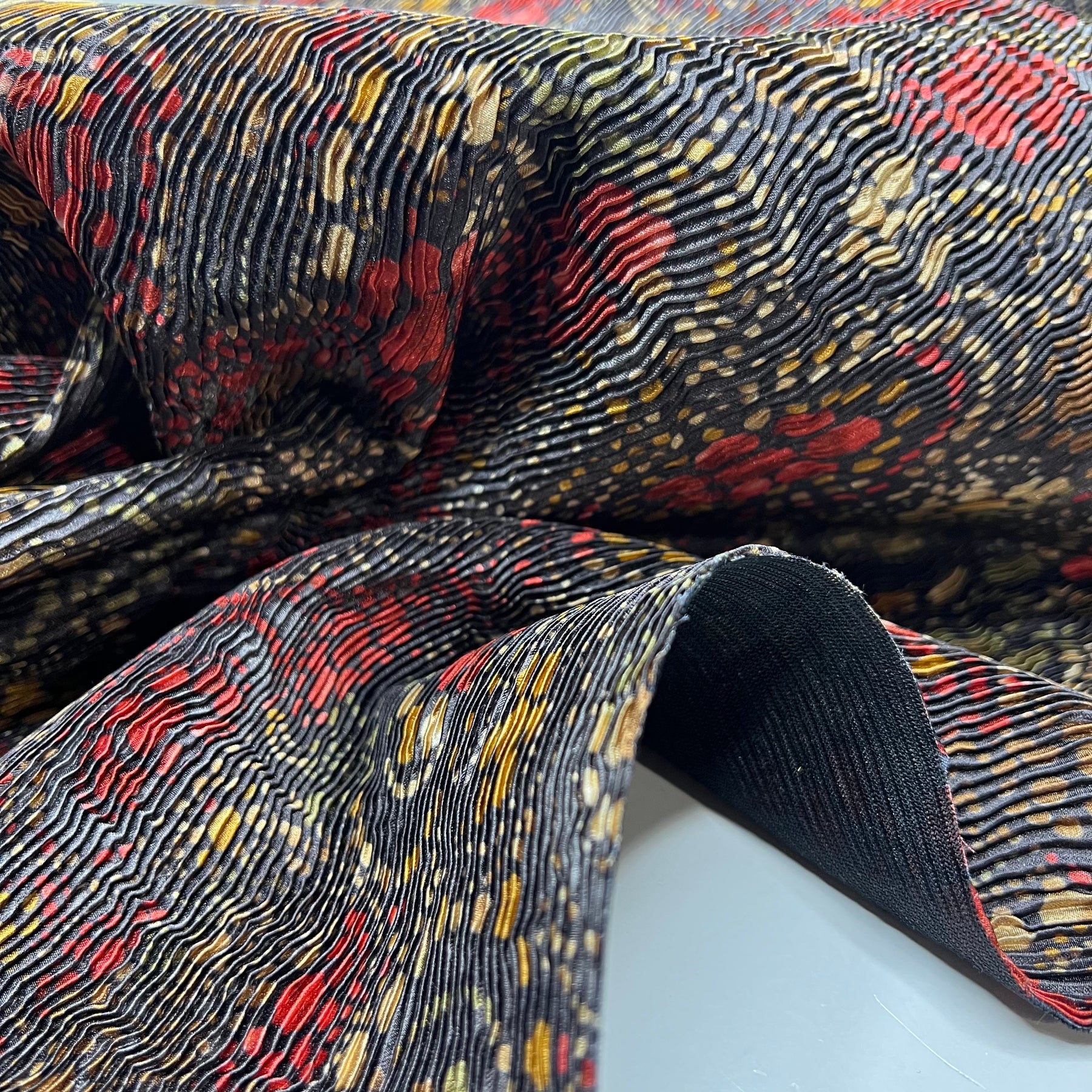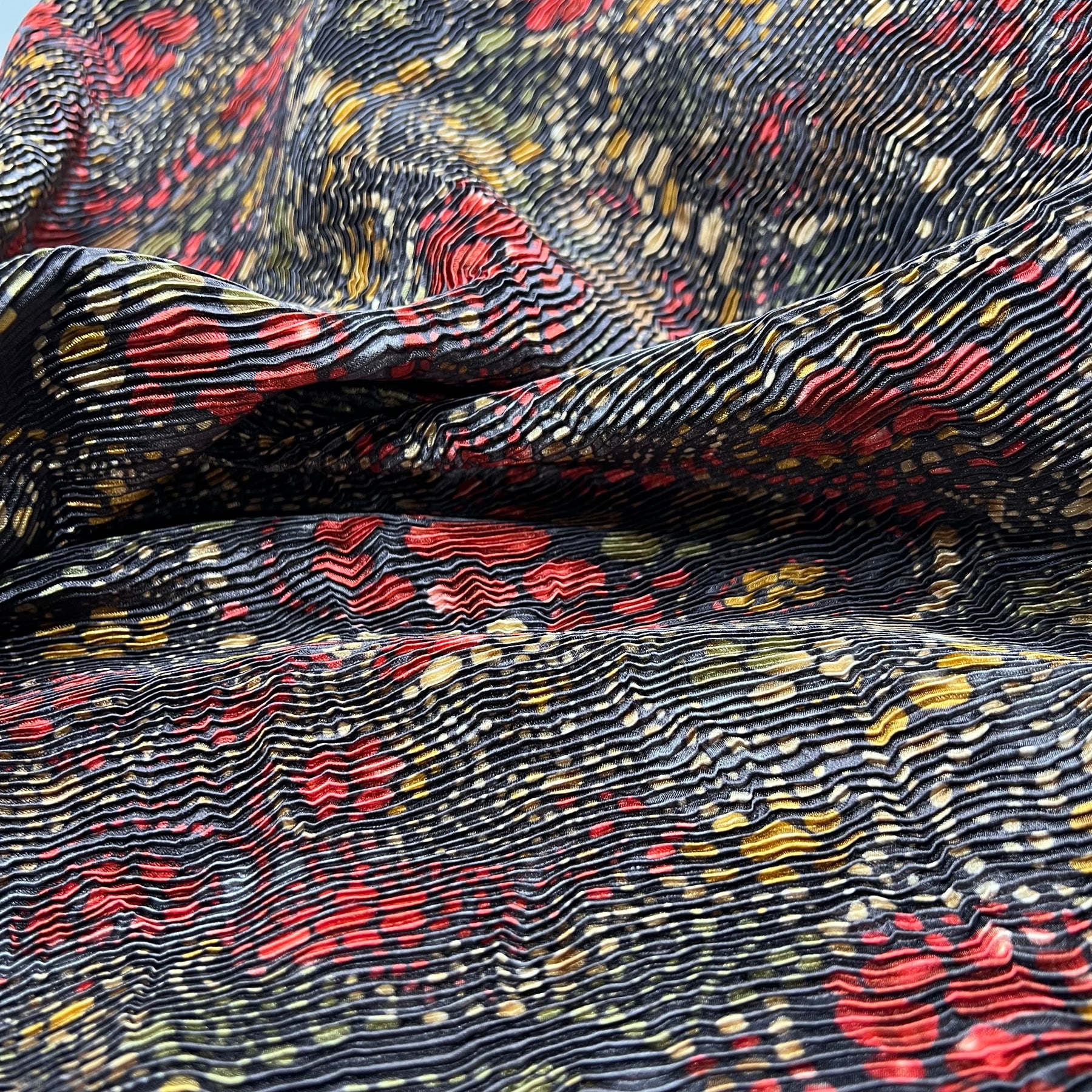 Sprinkle Crinkle - Pleated With Interfacing Poly Woven - Black/Red Floral - Bundles