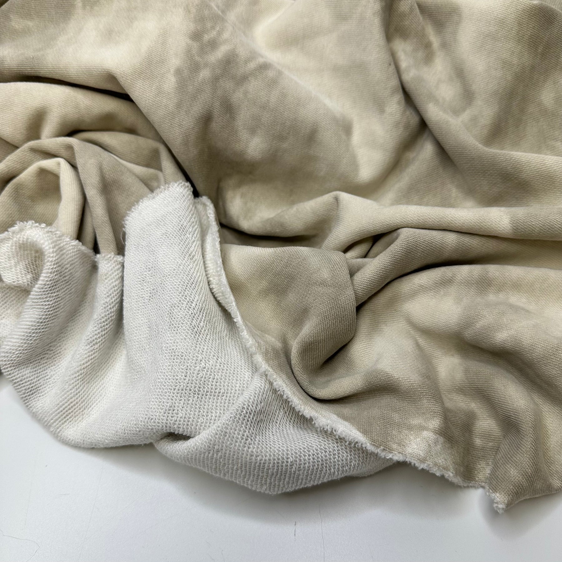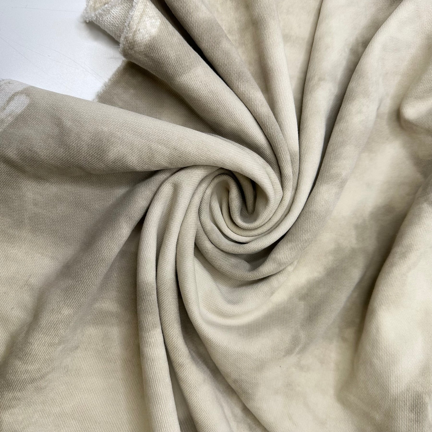 Overcast Fall Sky - French Terry Cotton Blend Knit - Light Cream/Grey Tie Dye - Bundles