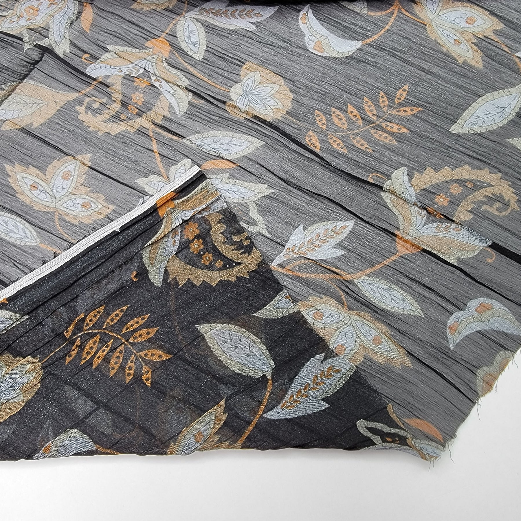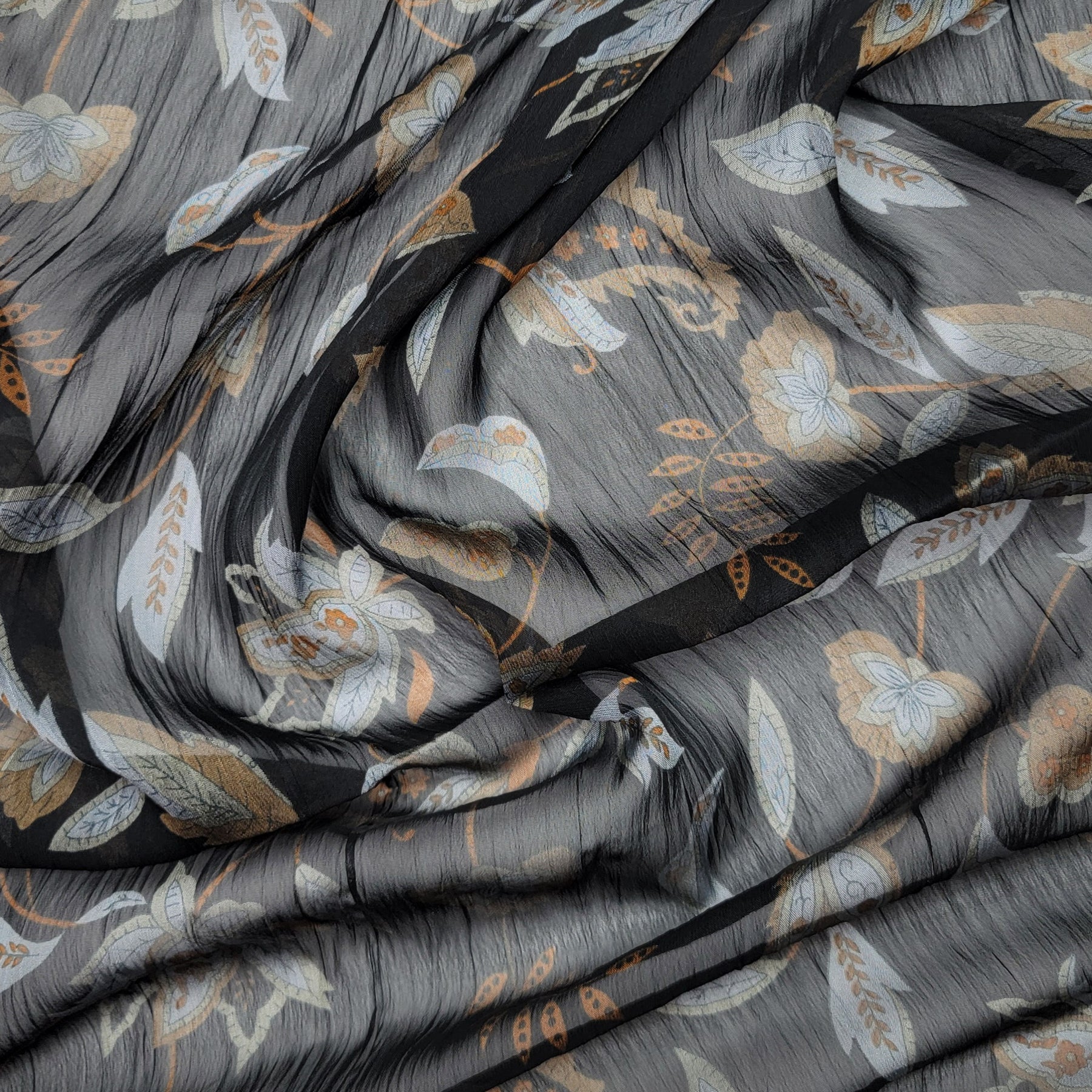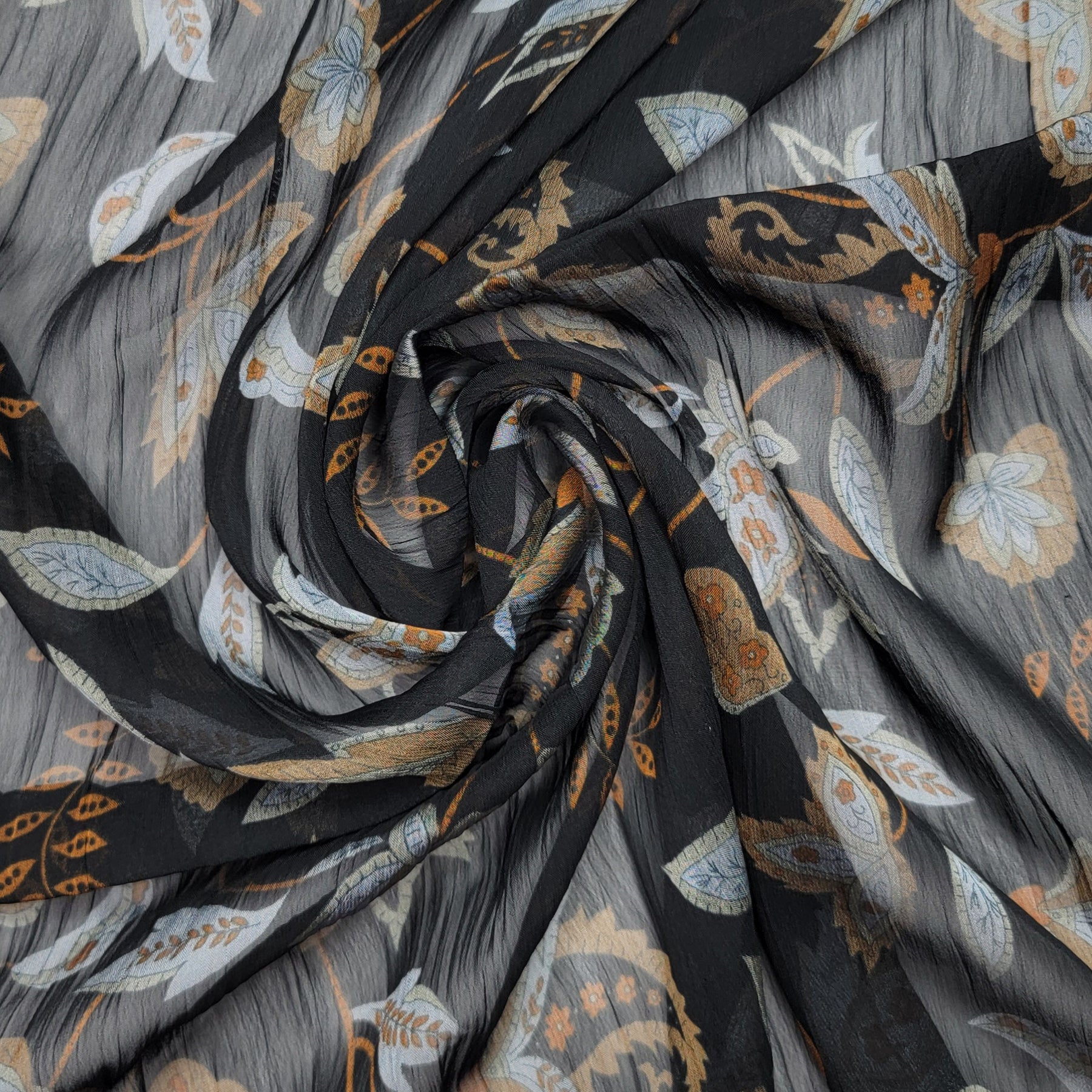 Paisley Leaves - Crinkle Chiffon Poly Woven - Black Multi Floral - 2.1M Bundle