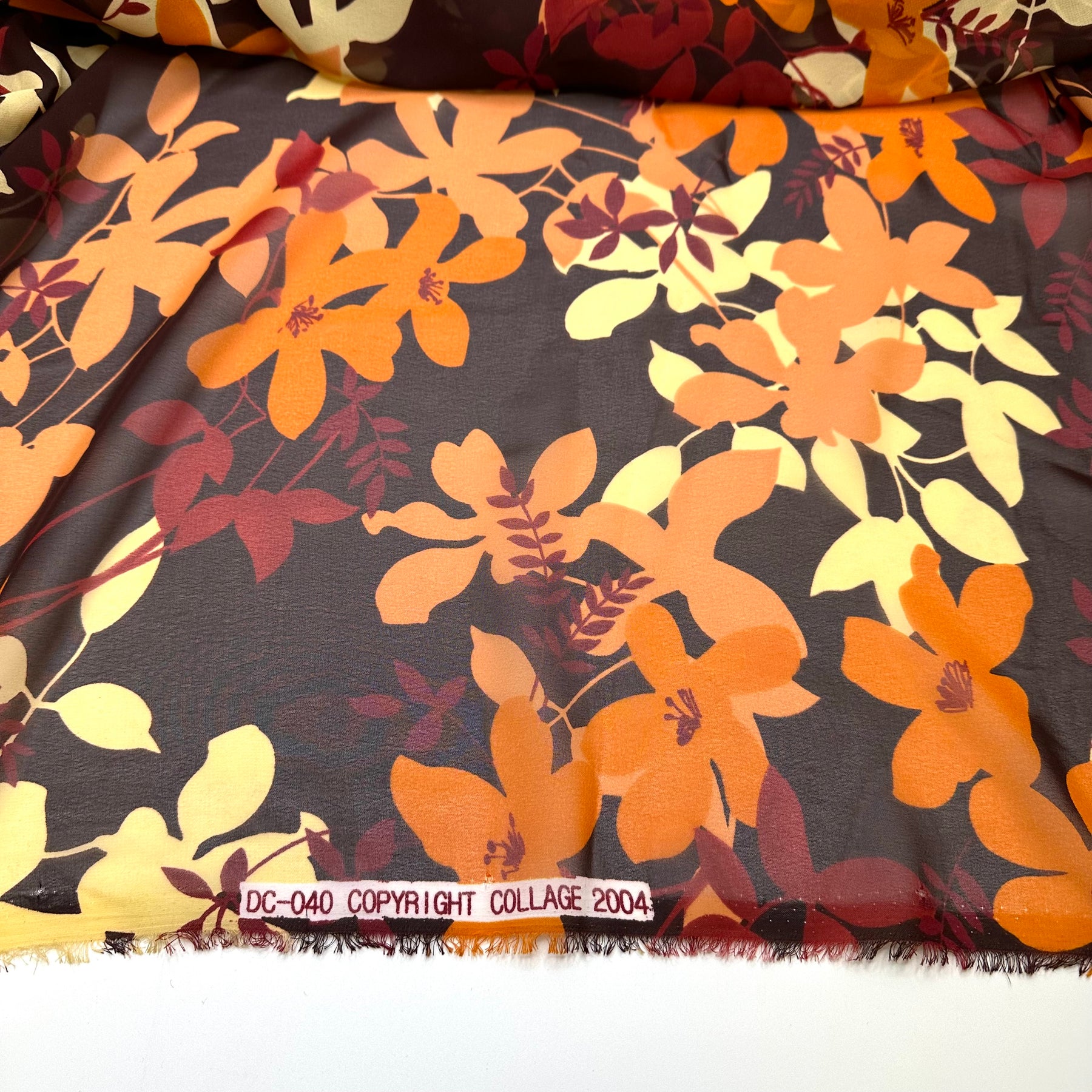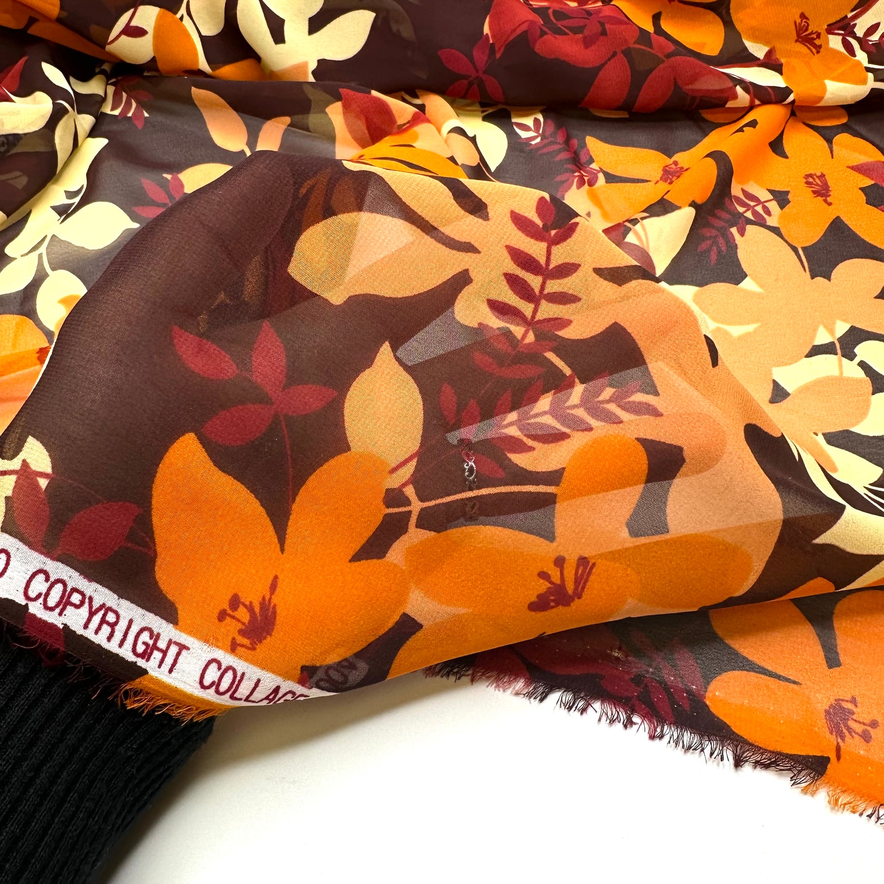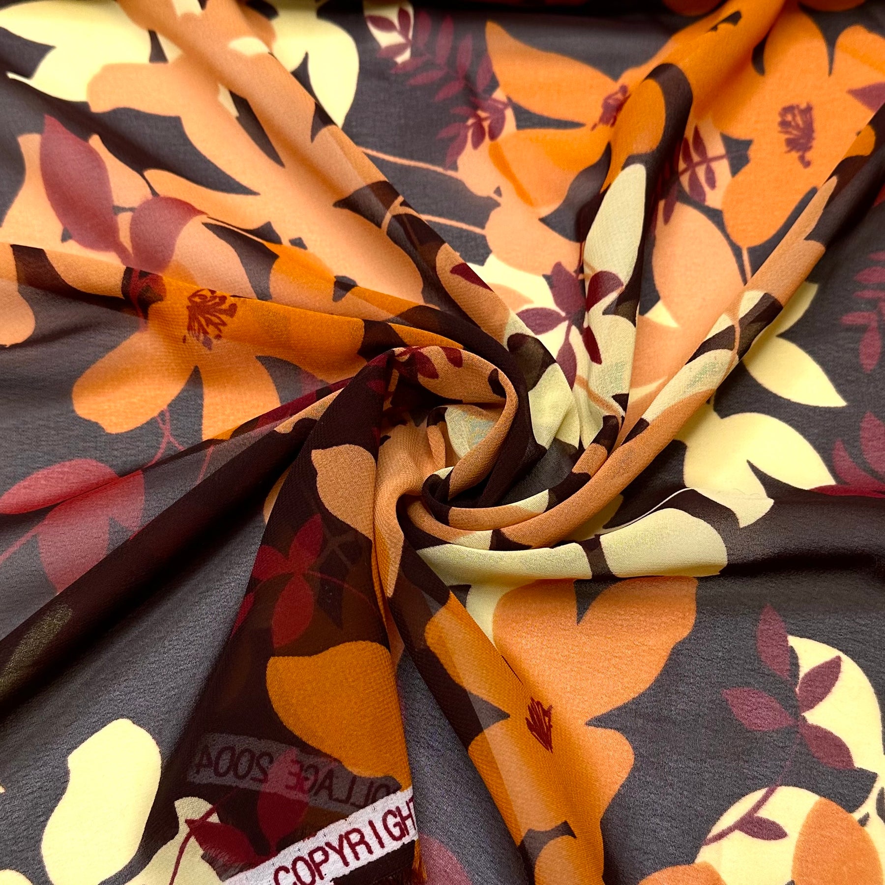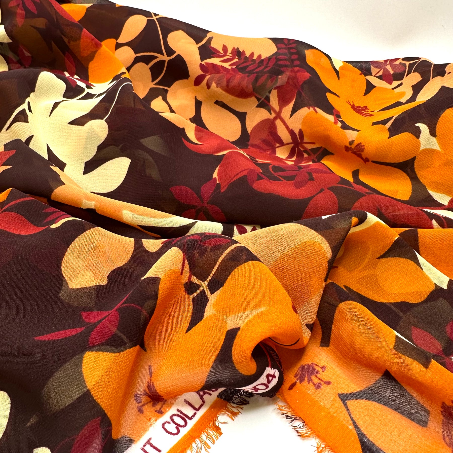 Perfect Leaf Pile Dive - Chiffon Poly Woven - Brown Multi Floral - 1.9M Bundle