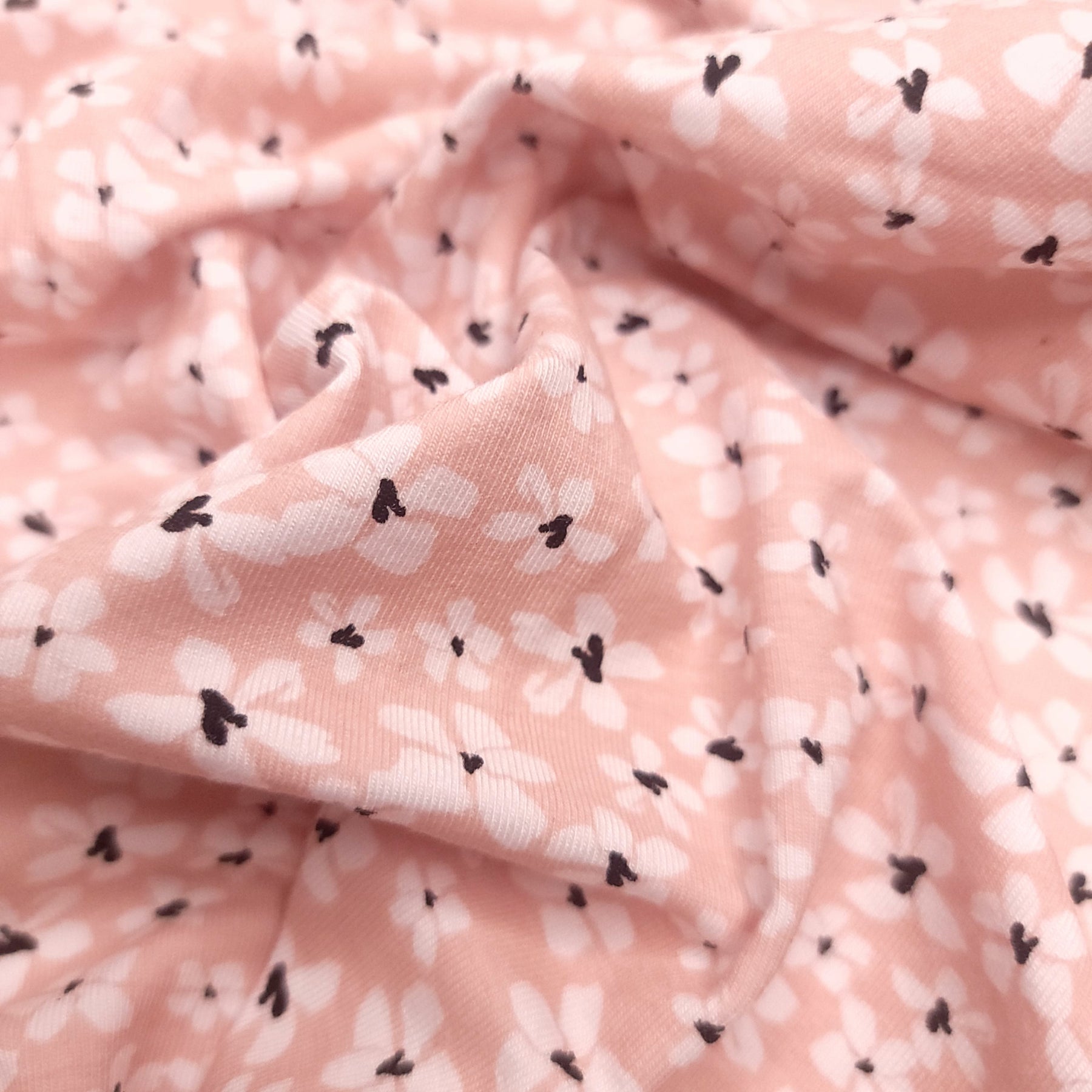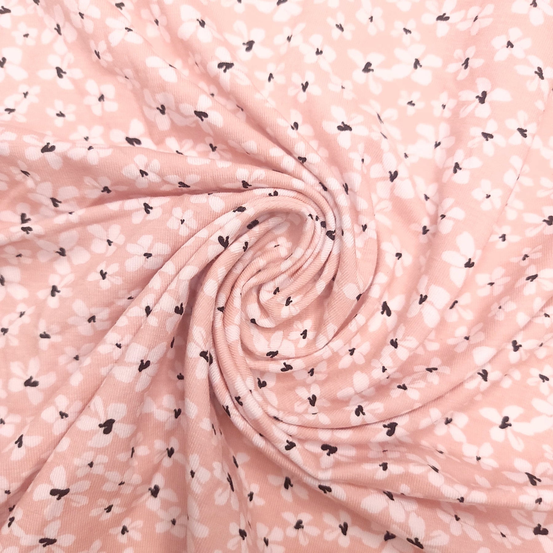 Pink Pastures Of Posy - Bamboo Knit - Pink/White Floral - 0.5M Bundle